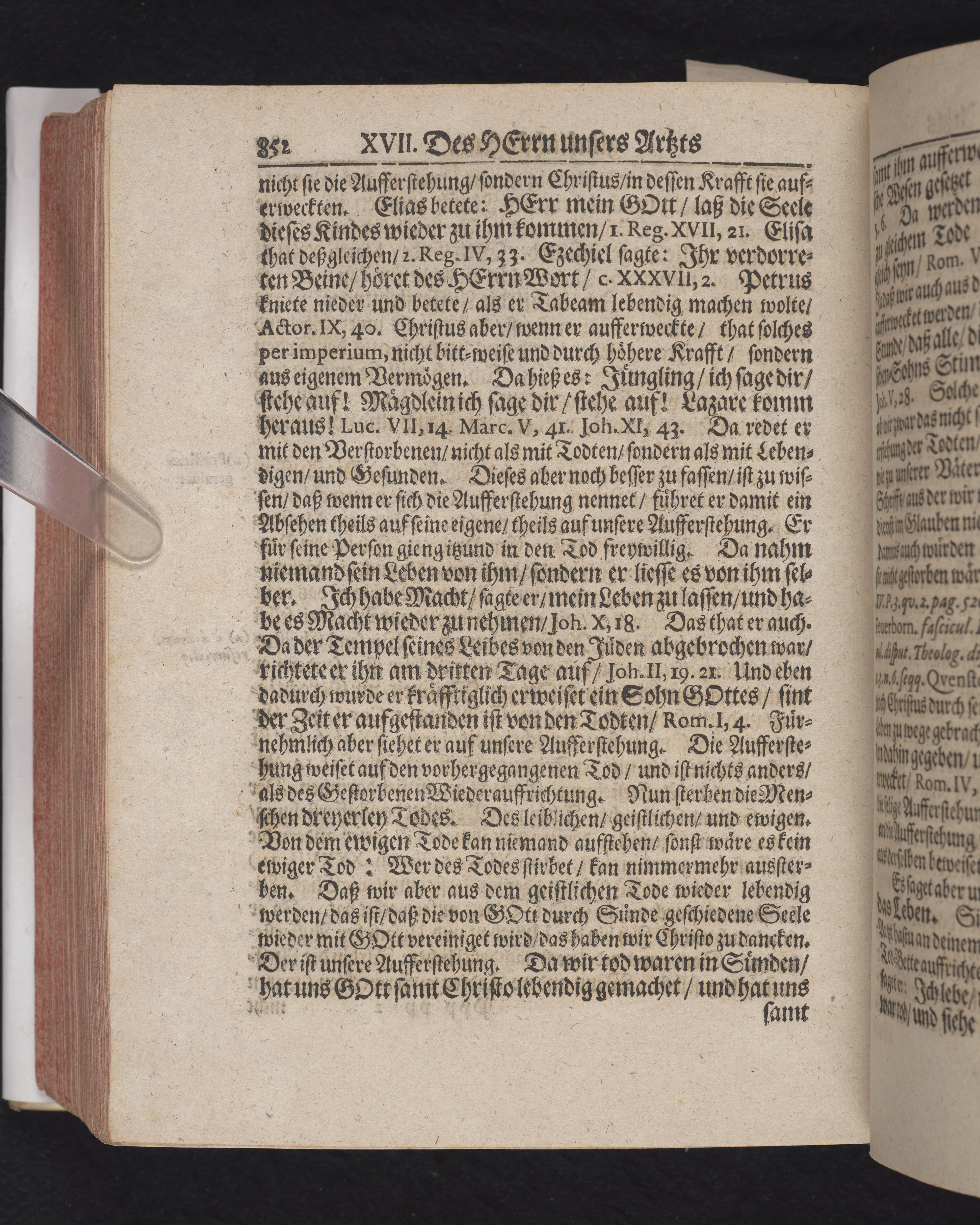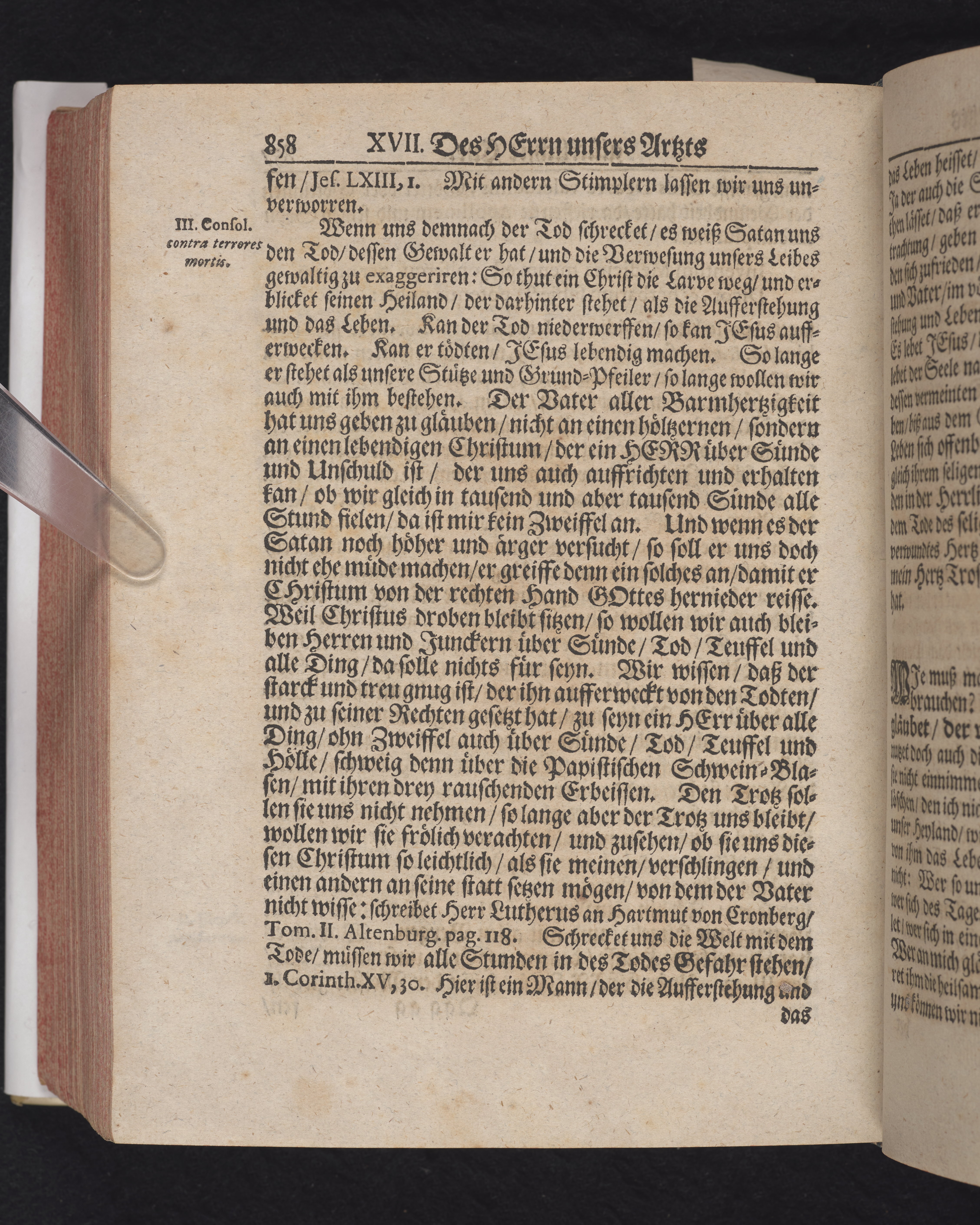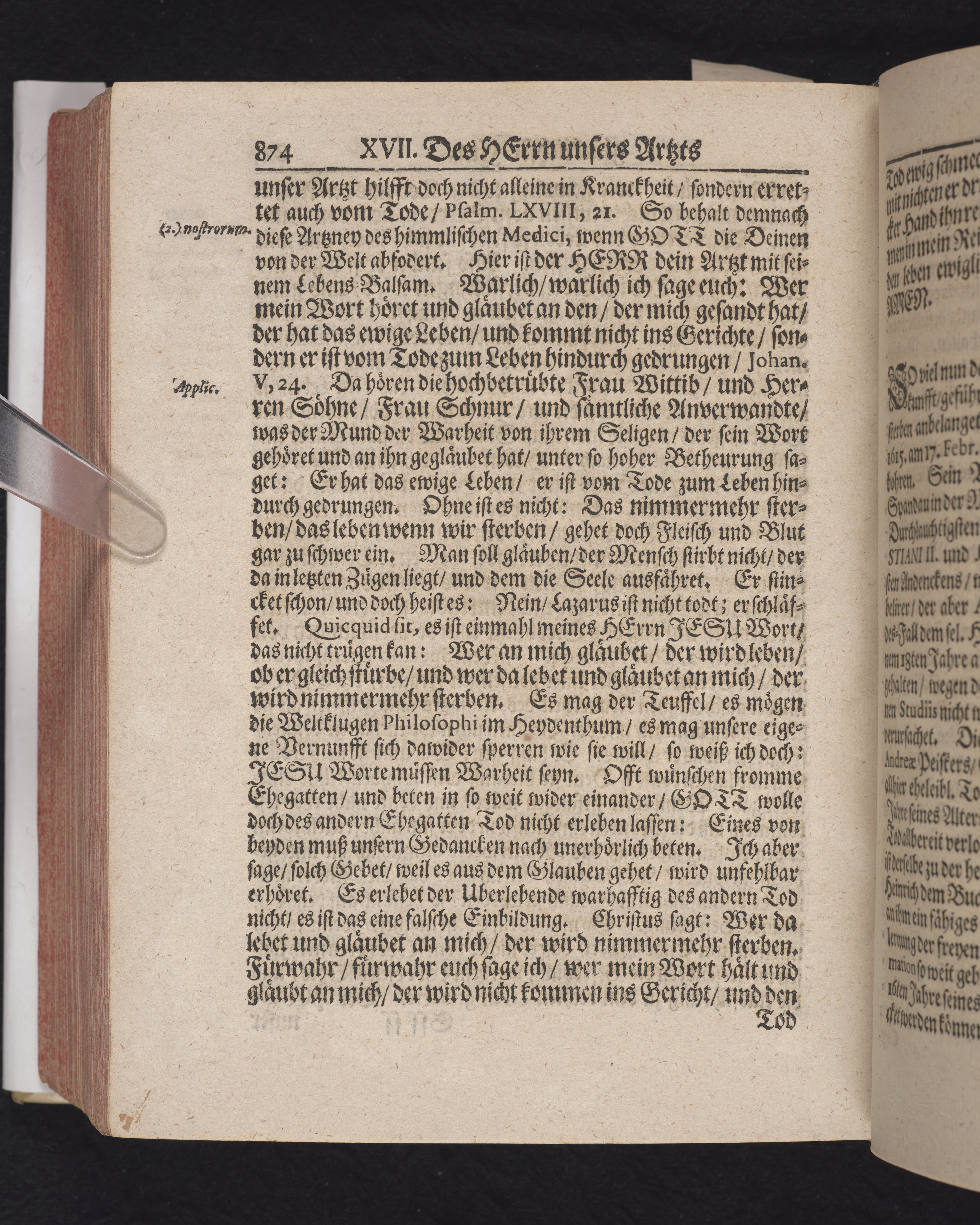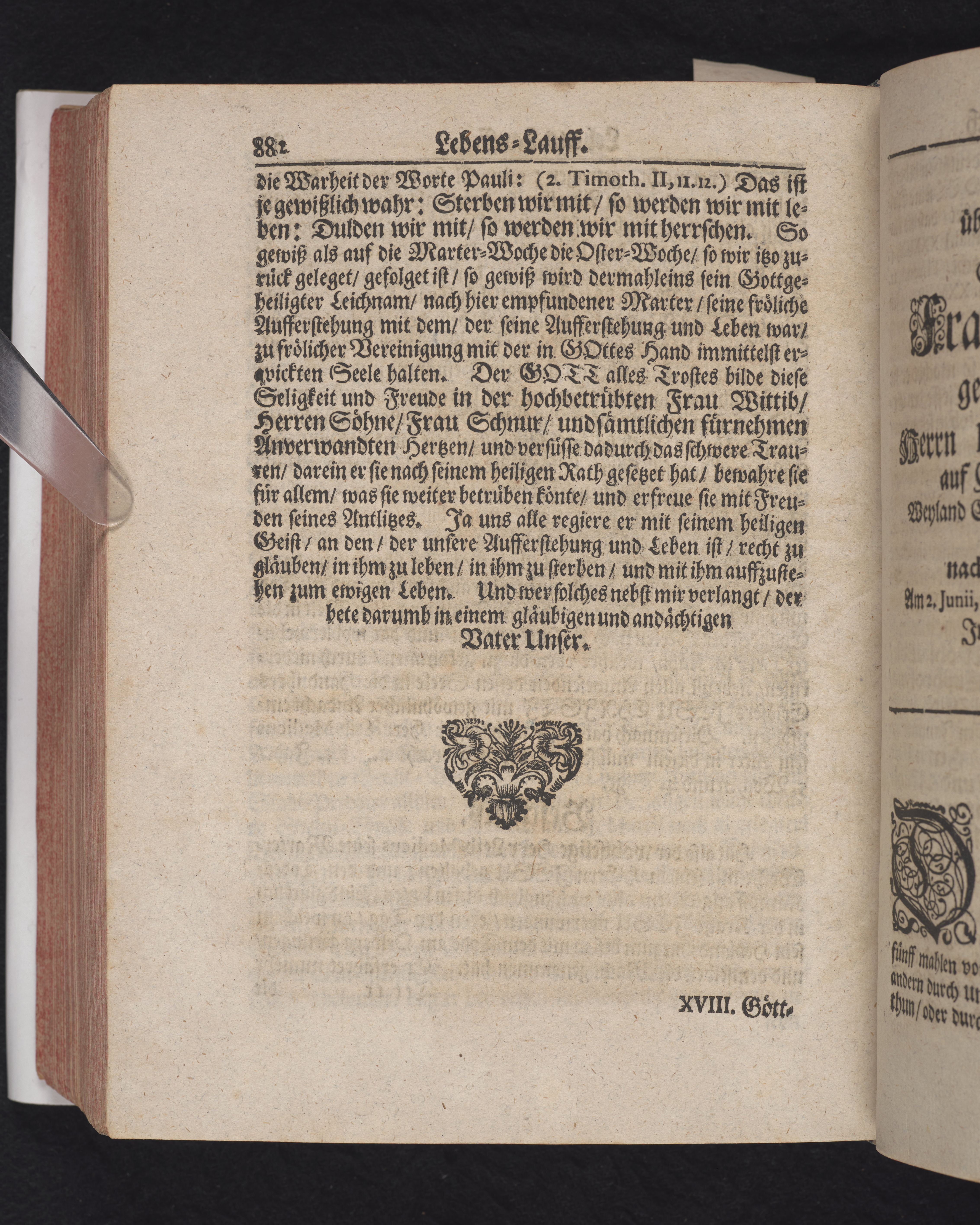 Ingår i en utgiven samling med 28 likpredikningar av Samuel Benedikt Carpzov: Grünende Gebeine, oder Leich-Predigten... Tryckt innehållsförteckning och register. Handskriven innehållsförteckning över de 28 likpredikningarna med bläck på främre försättsbladet (recto och verso).