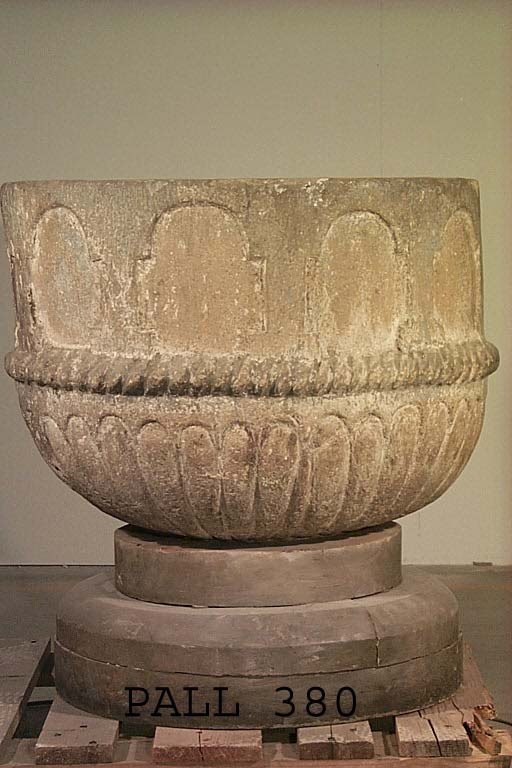 Kondition: endast cuppan bevarad, något vittrad. Färg: fragment av grå och varmvit färg - sannolikt sekundär .