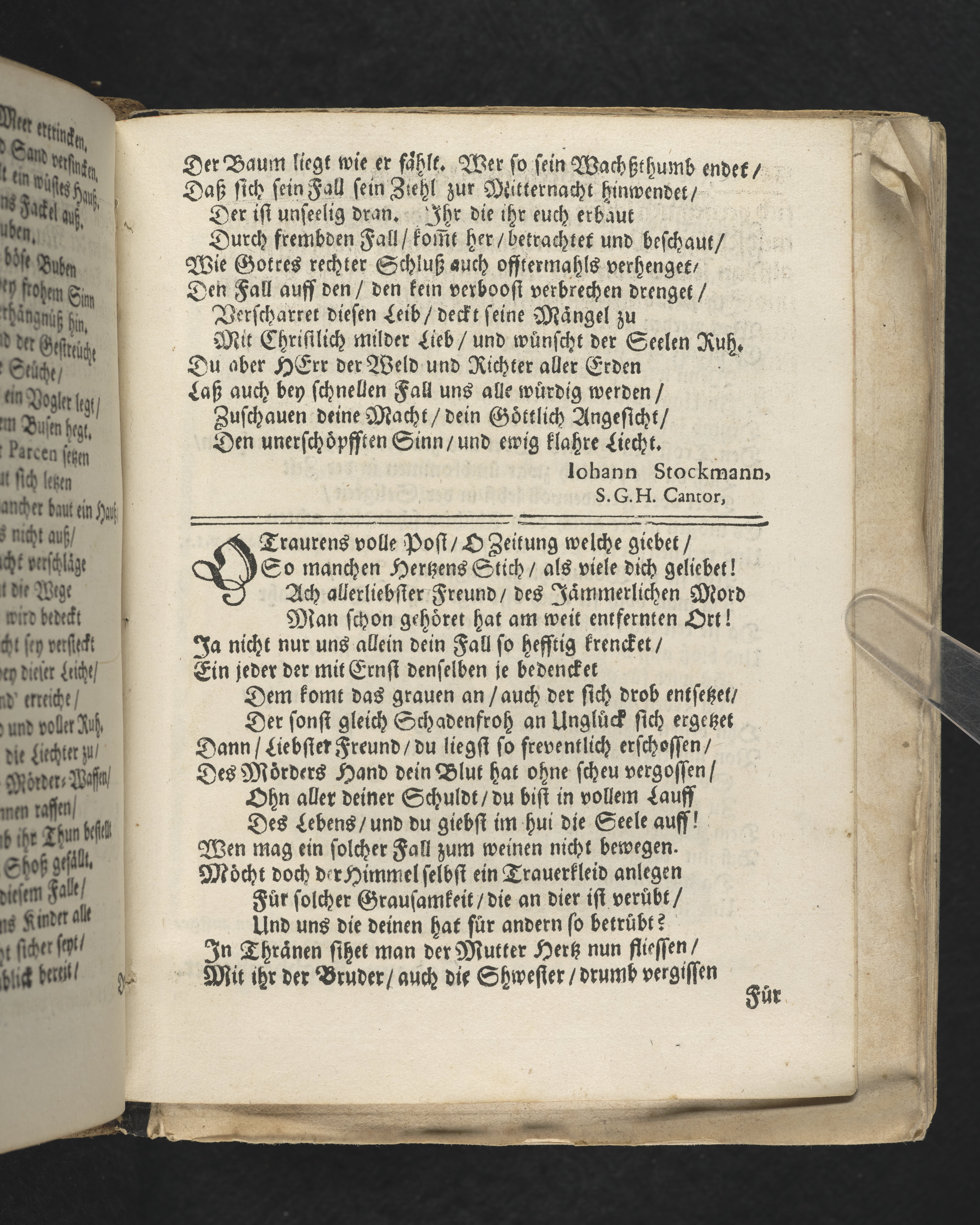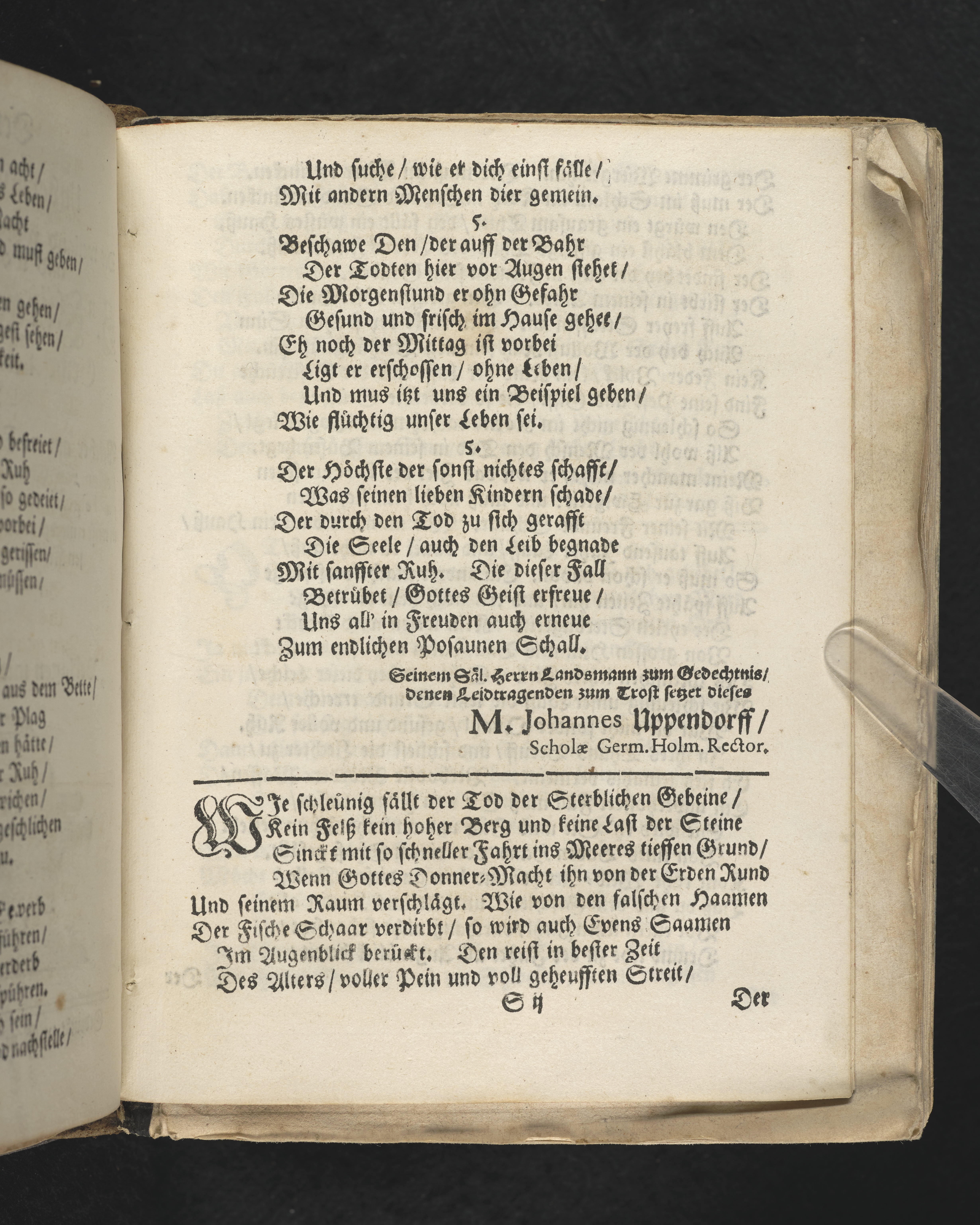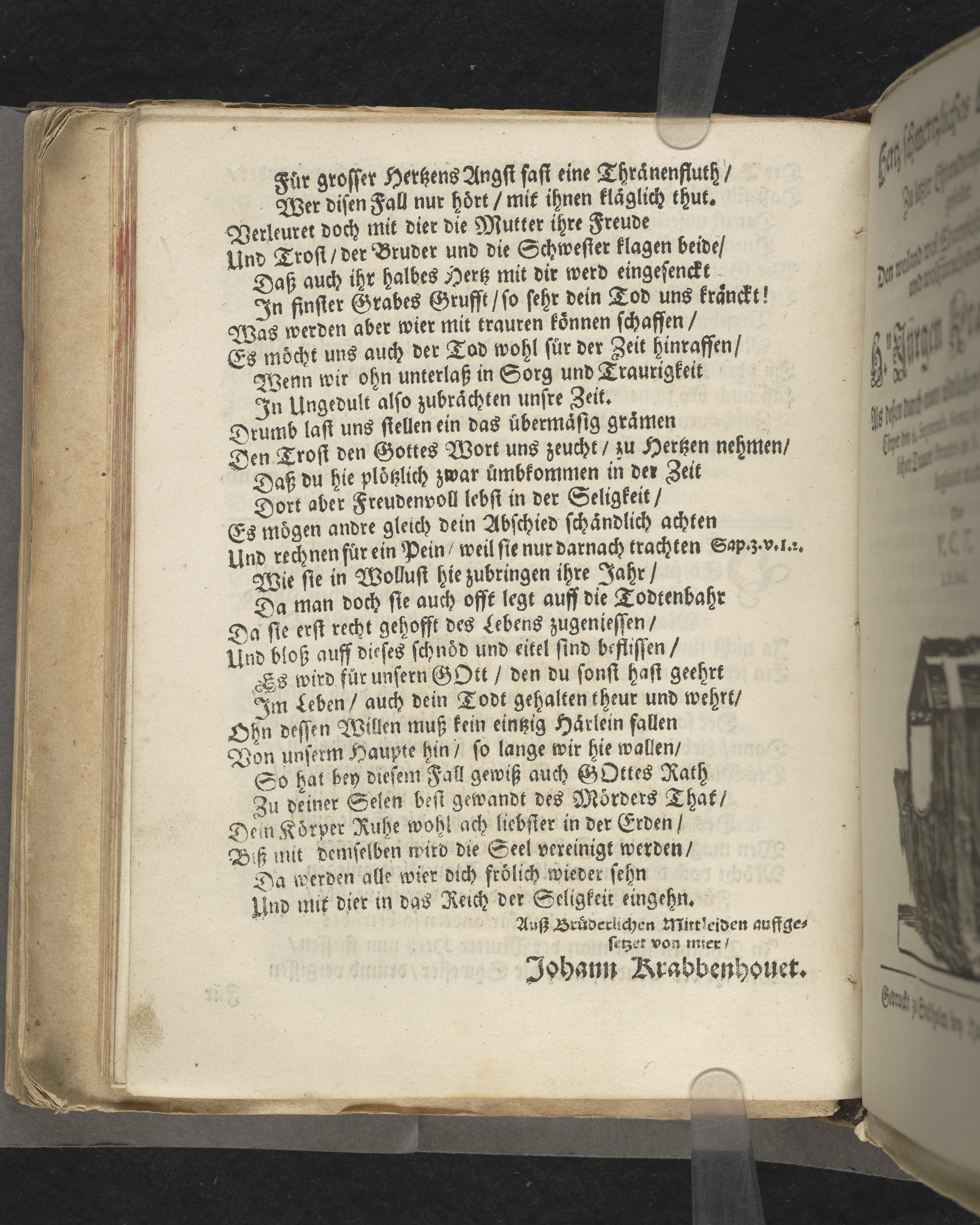 Den frühzeigen unvermuhteten Todesfall des weiland wohl ehrenvesten, vorachtbahren und wohlfürnehmen Herrn, Hn. Jürgen Krabbenhövet, gewesenen Kauff und Handels-manns allhie welcher am 13. Februarij anno 1634. zum Kiel in Holstein von christlichen und ehrlichen Eltern geboren, am 5ten Februarij des itztlauffenden 1672ten Jahrs unverschuldeter weise ermordet und den 6ten September hieselbsten in der grossen Kirchen mit bebührlichen solennitäten in sein Ruhkämmerlein beygesetzet worden: Beklagen mitleidend etliche gute Freunde. Gedruckt zu Stockholm bey Hans Georg Eberdt, 1672.