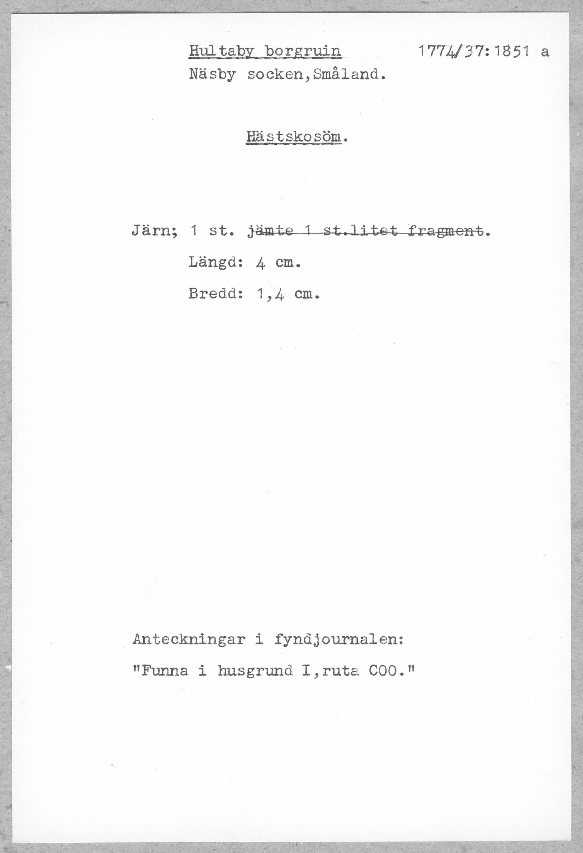 | Föremålsnummer |