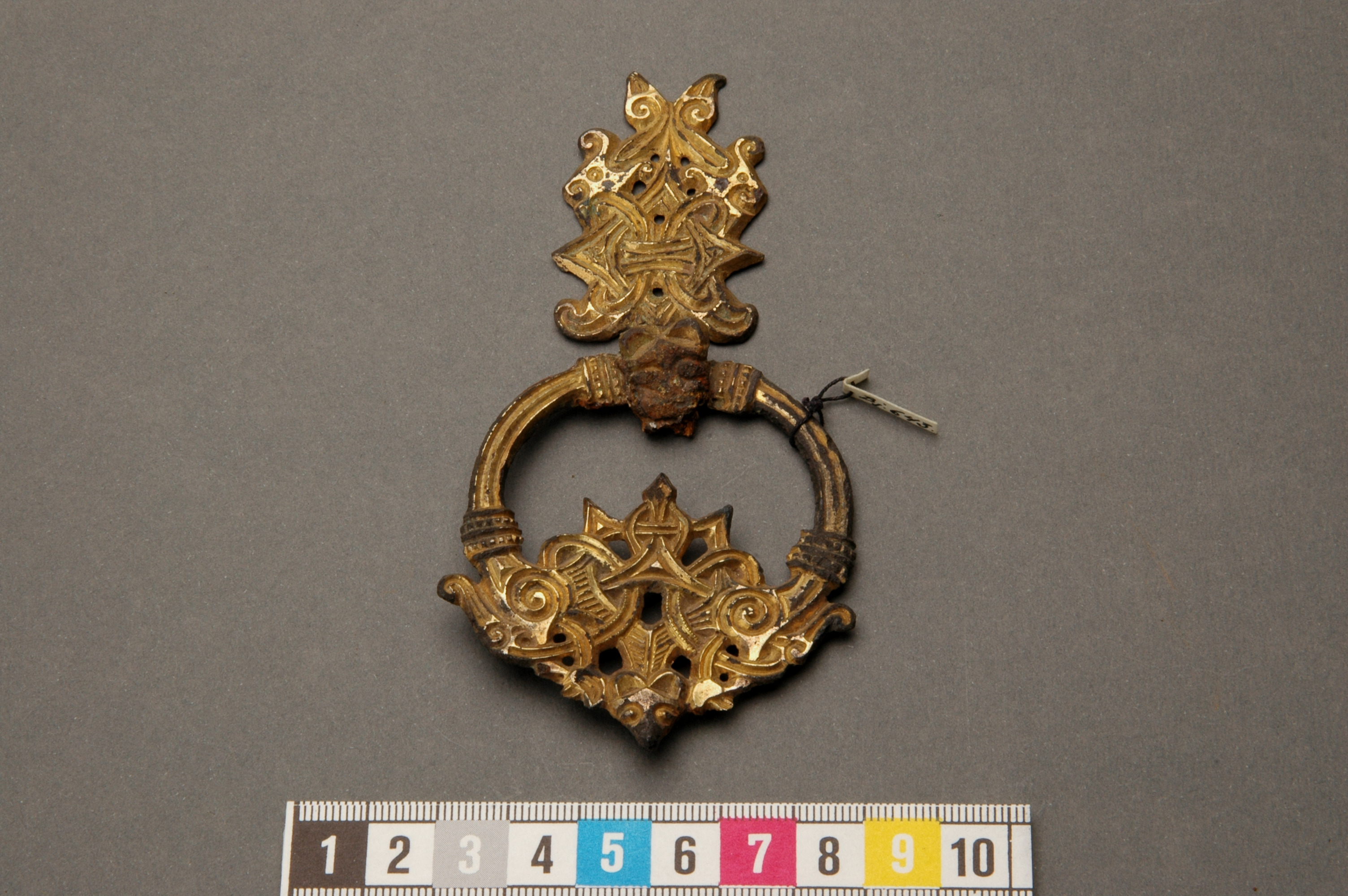 Ringnål av förgylld brons och rester av en bortkorroderad och överfångsgjuten järnnål.