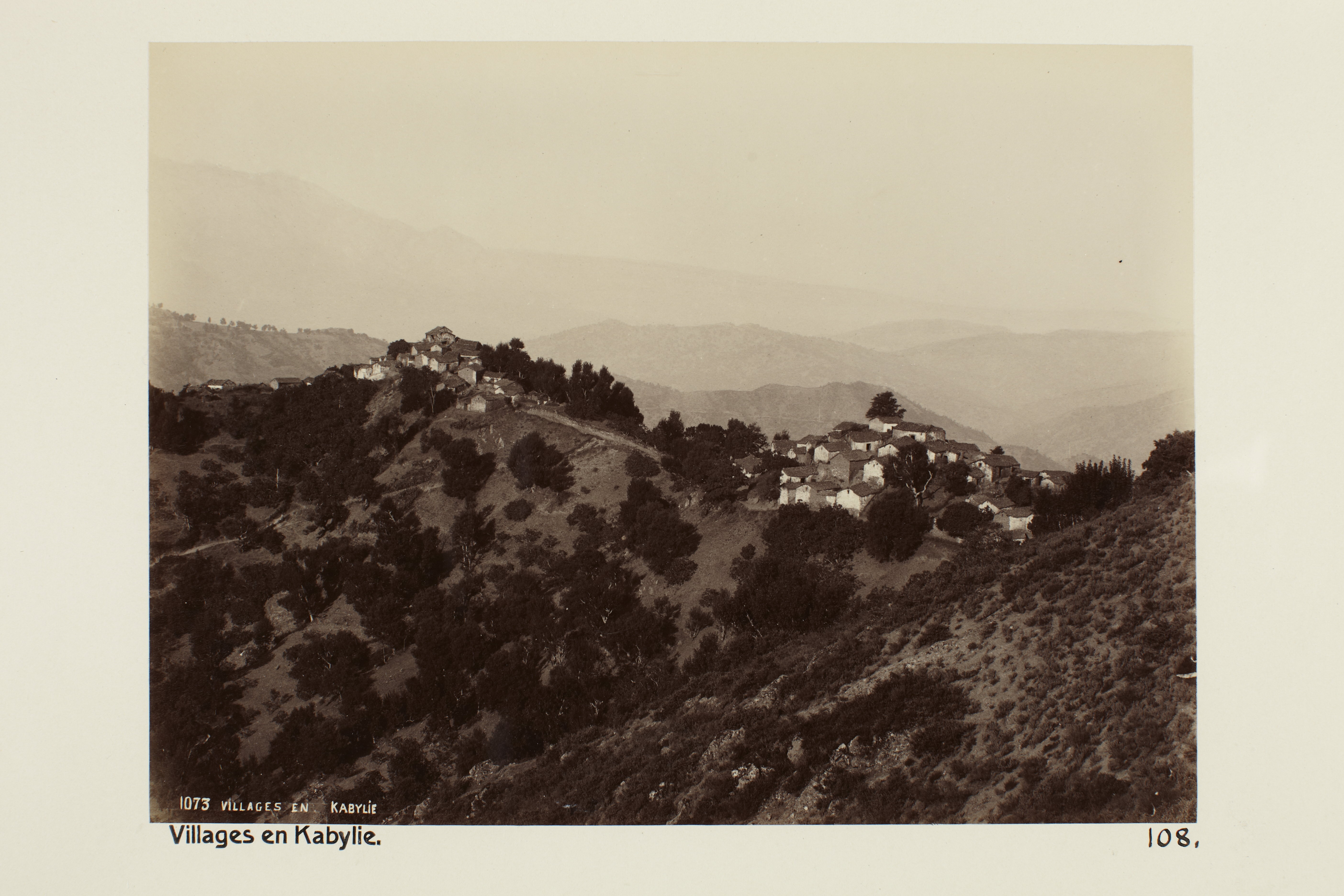 Byar i Kabylien, Algeriet. Foto från resa genom Algeriet och Tunisien samt åter över Schweiz, 11 februari - 19 maj 1889. Samtliga foton i gruppen LXVI:F. är inköpta av Wilhelmina von Hallwyl i Alger, Biskra, Tunis, Constantine, Oran och Blidah vid hennes vistelse i nämnda städer tillsammans med sin make, Walther von Hallwyl, sin mor, Johanna Kempe, f. Wallis, dottern Irma samt fröknarna Caroline Pflaum och Ida Uhse. Uppgifterna kommer från fröken Ida Uhses reseanteckningar.