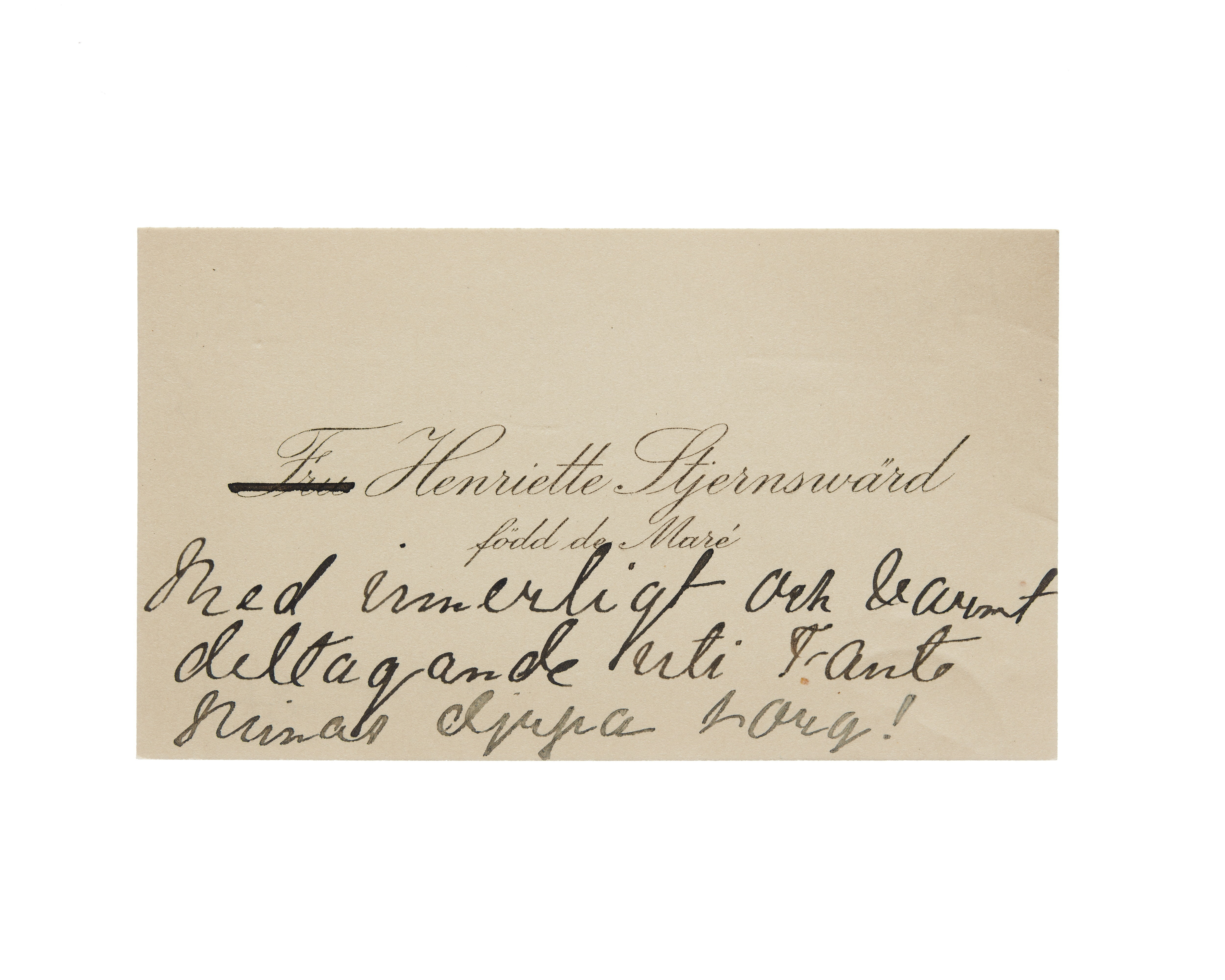 Visitkort från Fru Henriette Stjernswärd, f. de Maré