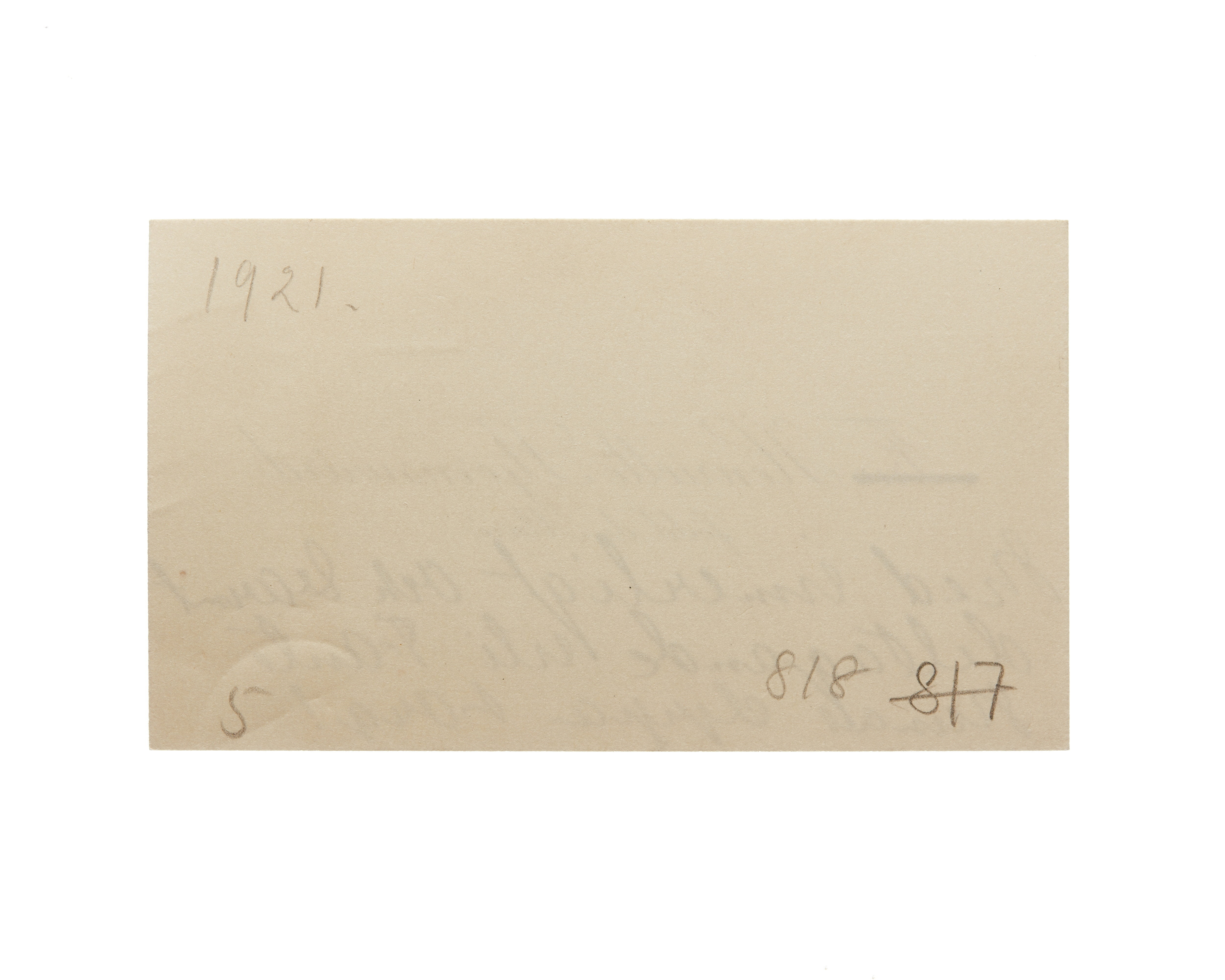 Fem visitkort från Fru Henriette Stjernswärd, f. de Maré. Första kortet är utan datum, vikt i nedre högra hörnet. Andra kortet är utan datum samt sorgkant, vikt i övre högra hörnet. Tredje kortet daterat 1916 samt sorgkant, vikt i övre högra hörnet. Fjärde kortet daterat 1916, vikt i övre högra hörnet. Femte kortet daterat 1921. Handskrift "....".