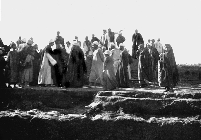 Landstigningsplats. al-Badrashayn (eng: Badrashin), Egypten. Text på fotografiet: Bedraschên. Lieu de débarquement Fotografierna LXVI:M.01.- 201. kommer från resan till Egypten och Sudan som Wilhelmina och Walther von Hallwyl gjorde vintern 1900-1901. De lämnade Sverige den 5 november 1900 och fortsatte från Egypten till Palestina den 28 mars 1901. Med på resan var döttrarna Ellen med maken Henric de Maré och Irma med maken Wilhelm von Geijer. Wilhelminas sällskapsdam, fröken Ida Uhse reste också med. Under en del av resan anslöt sig ledamoten av Internationella domstolen i Kairo, assessorn Otto Conrad Waldemar Cedercrantz med makan Anna Elisabeth. Vid resan uppför Nilen hade Walther von Hallwyl hyrt ångfartyget Columbia med besättning. Båtresan startade i Kairo 27 december 1900, gick ända till Wadi Halfa varifrån man reste vidare med tåg till Khartum och tillbaka till Wadi Halfa. Båten vände åter i riktning mot Kairo, men det verkar som att sällskapet tog tåg sista biten, från Luxor. Henric och Ellen de Maré samt fru Cedercrantz lämnade båten redan då de passerade Luxor första gången. Resten av sällskapet återvände till Kairo den 1 mars. Fotografierna LXVI:M.01.-120. togs av resenärerna själva, de största av Ellen de Maré, de mellersta av Wilhelmina von Hallwyl och de minsta av Wilhelm von Geijer. Resten köptes av professionella fotografer i Kairo, de flesta från Studio Photogr. Artistique G. Lekegian & Cie. Alla uppgifter kommer från Ida Uhses reseanteckningar.