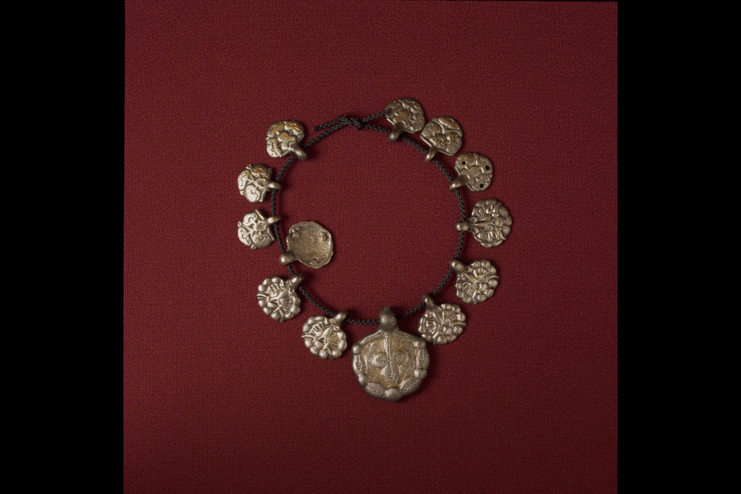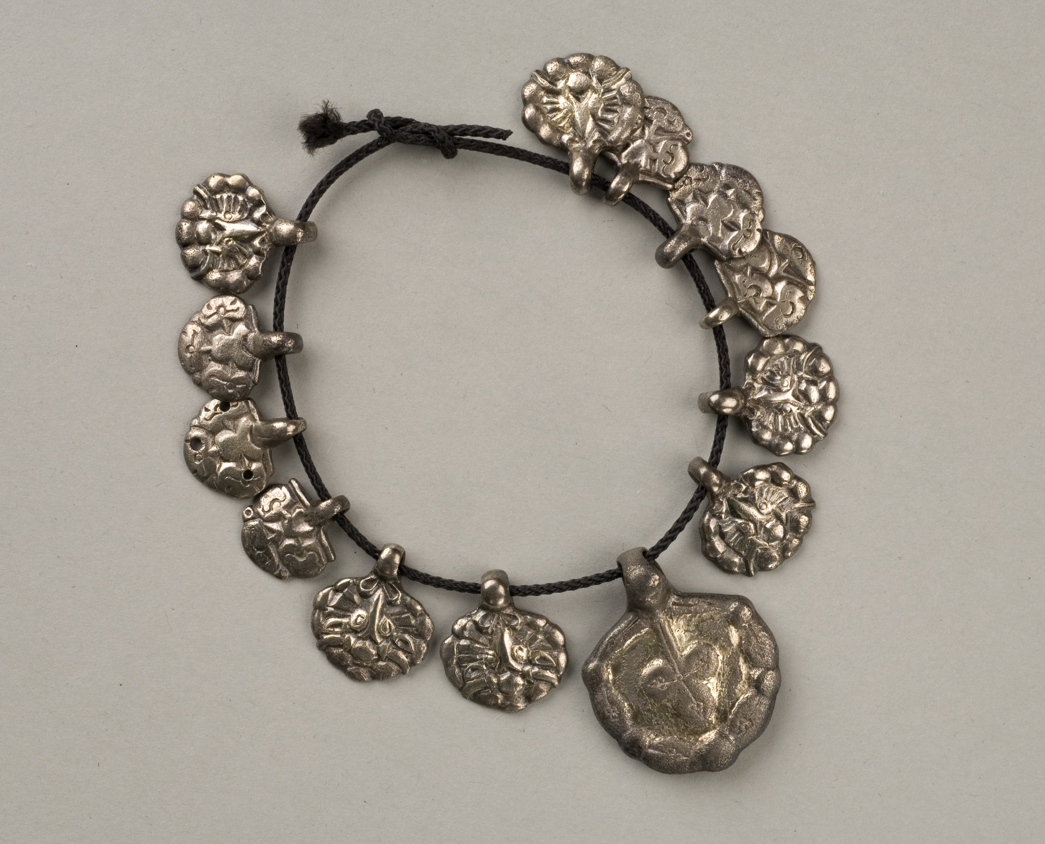 12 mindre och 1 större hänge i silver med orientalisk växtornamentik.
