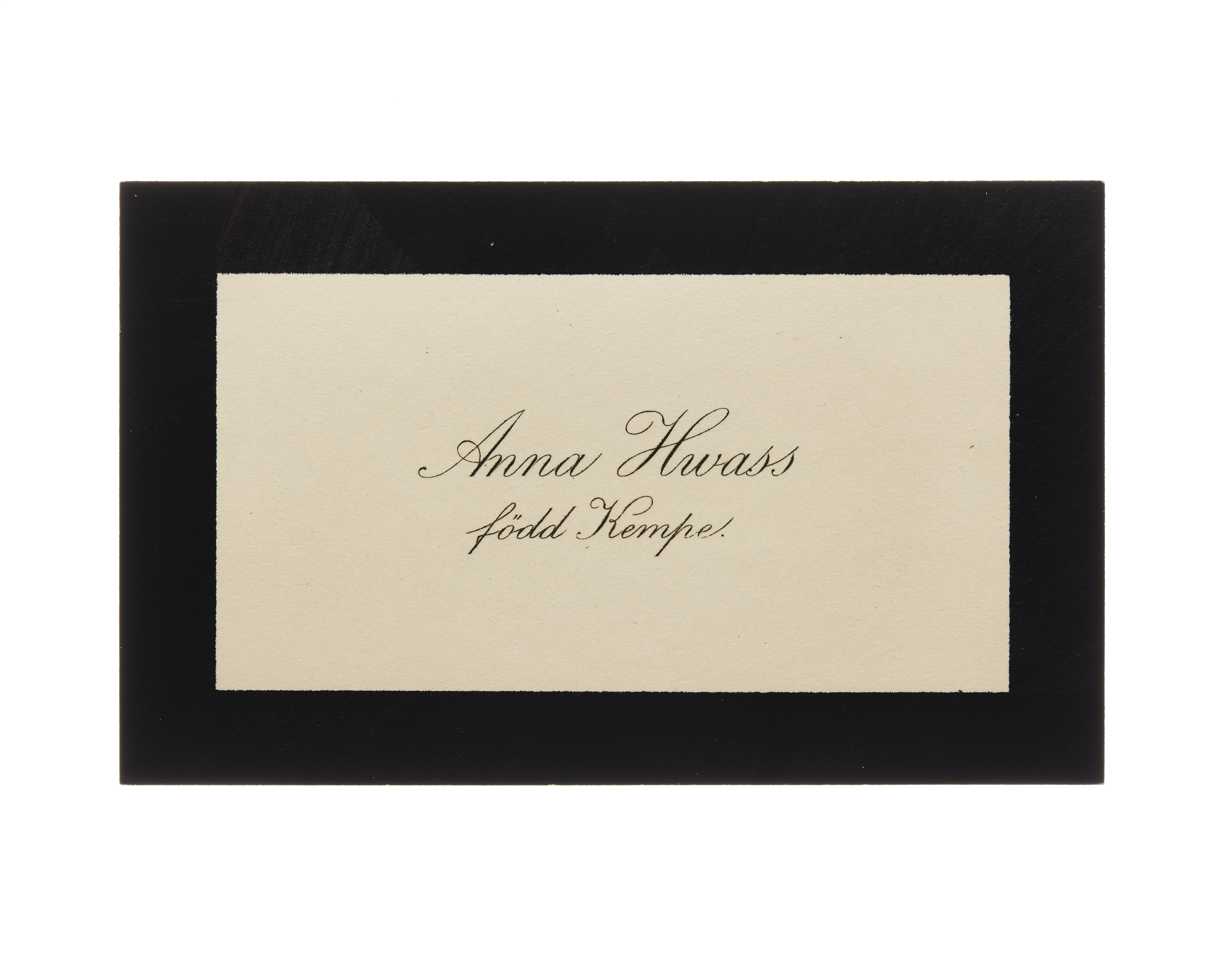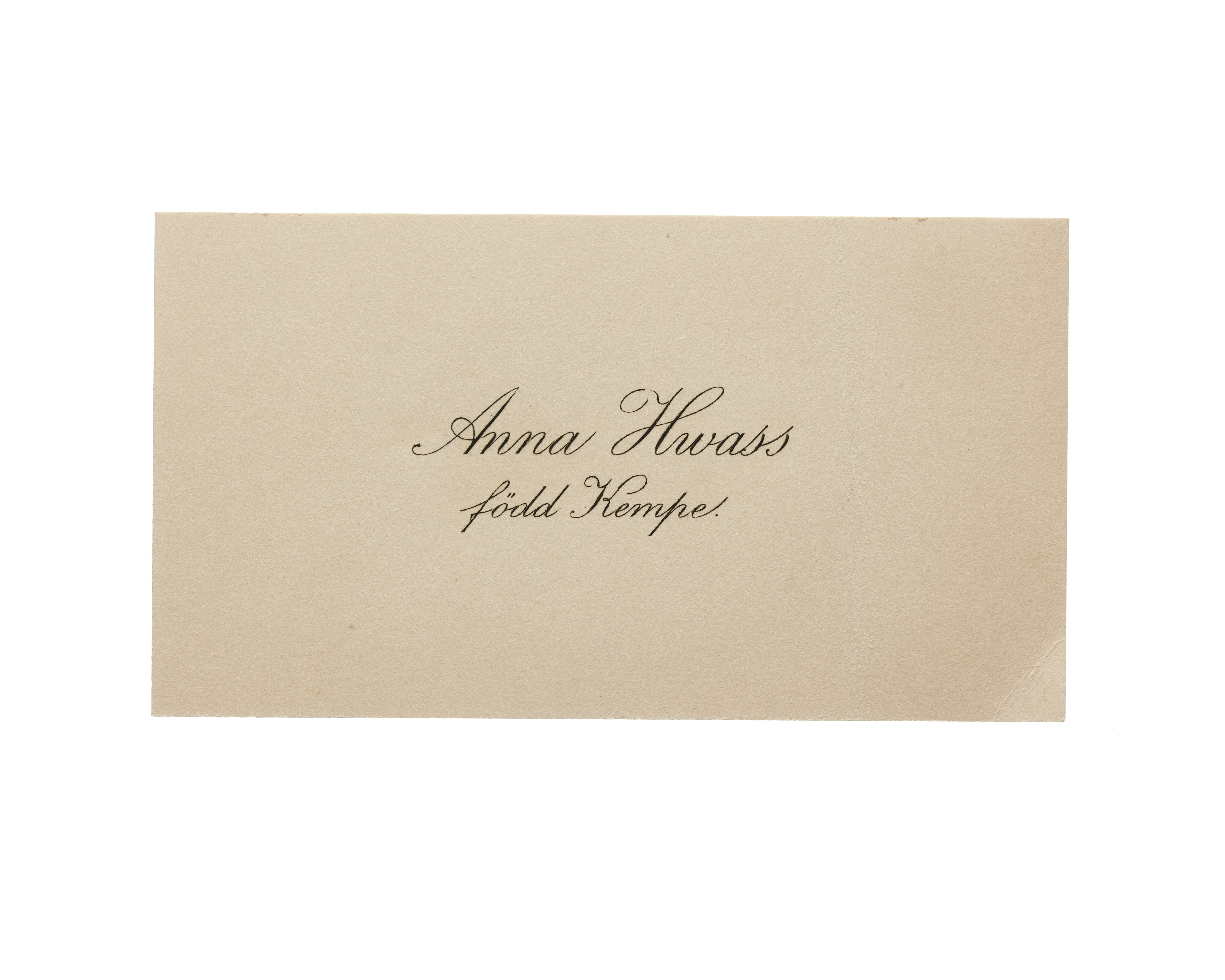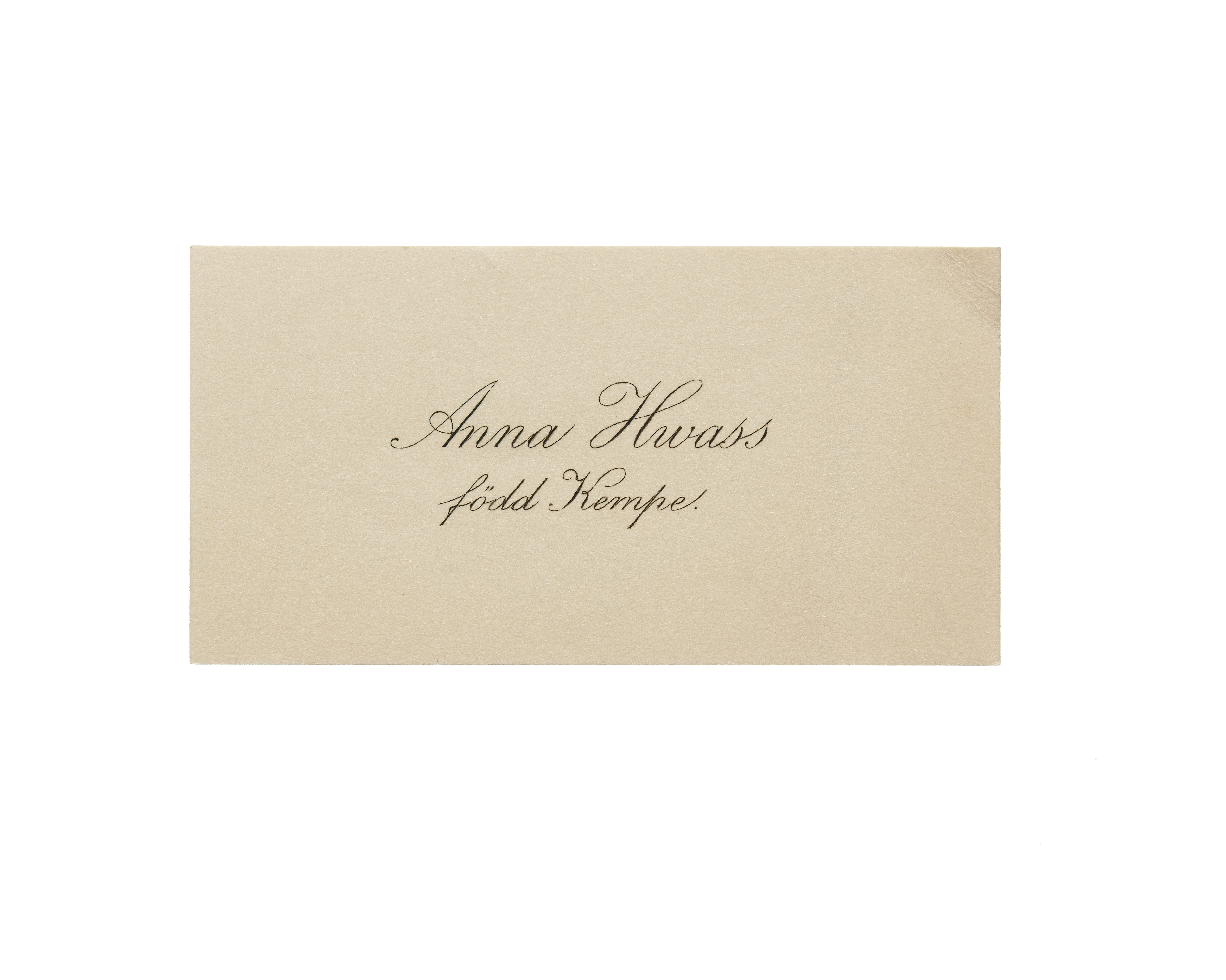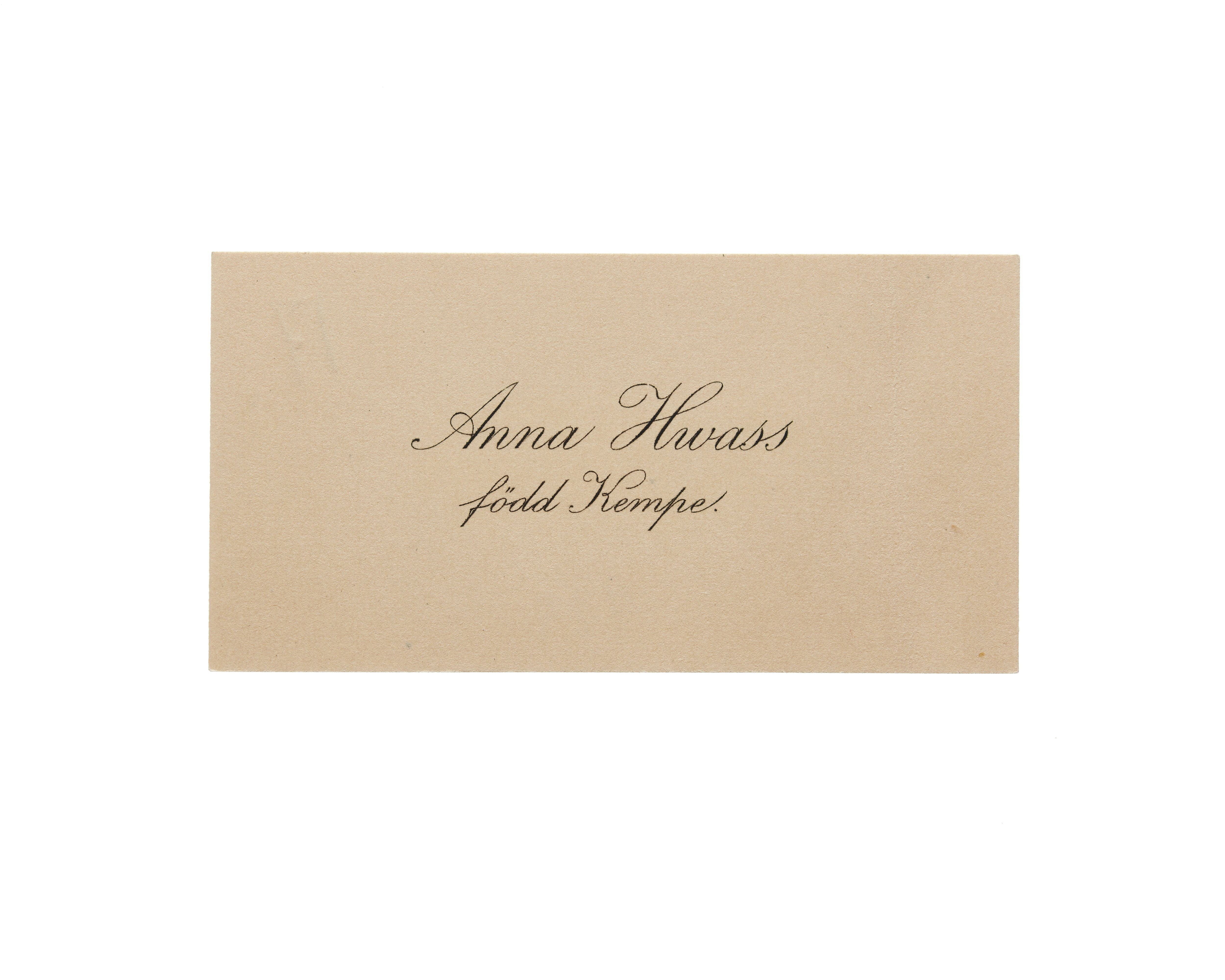 Visitkort från Anna Hwass, f. Kempe.