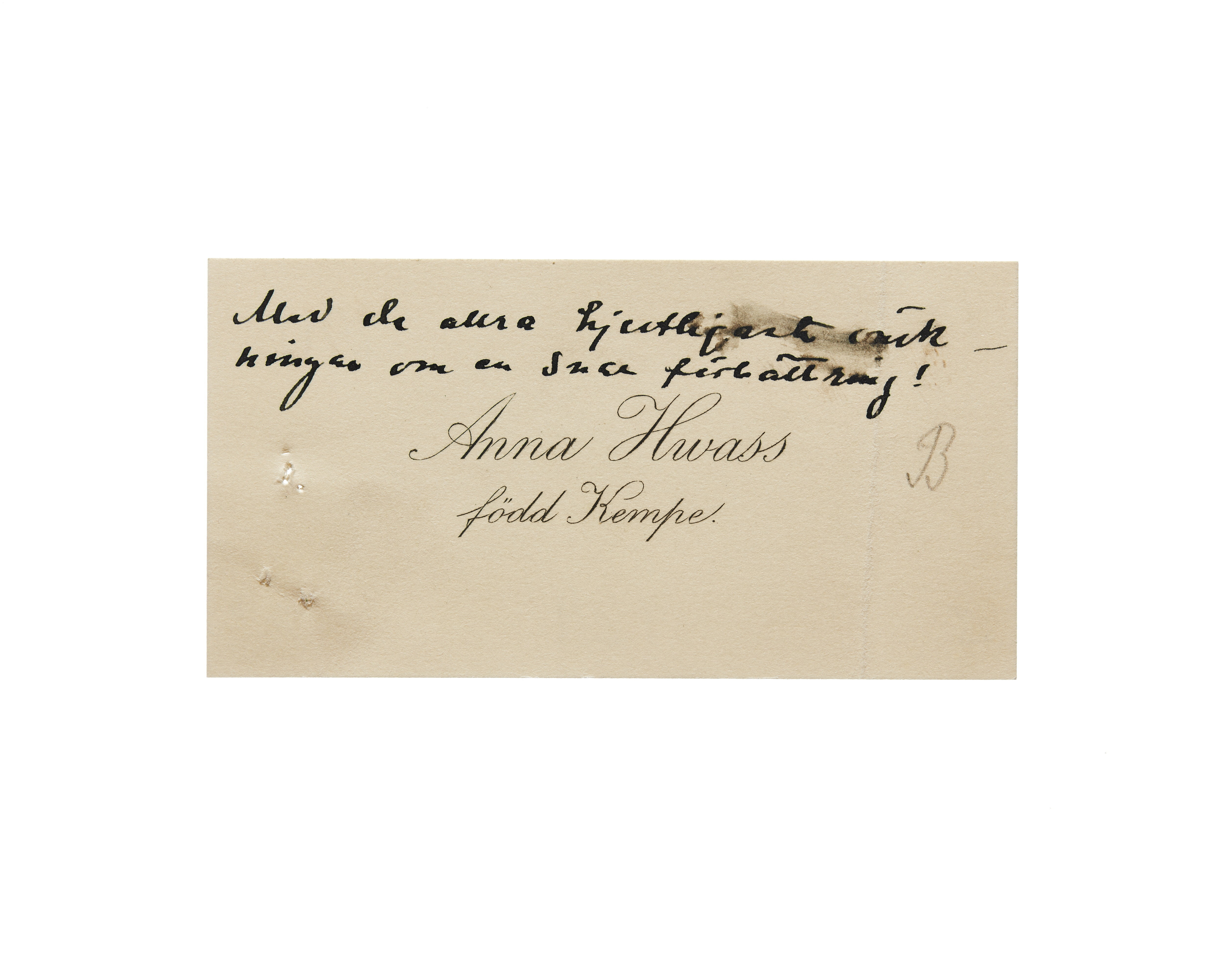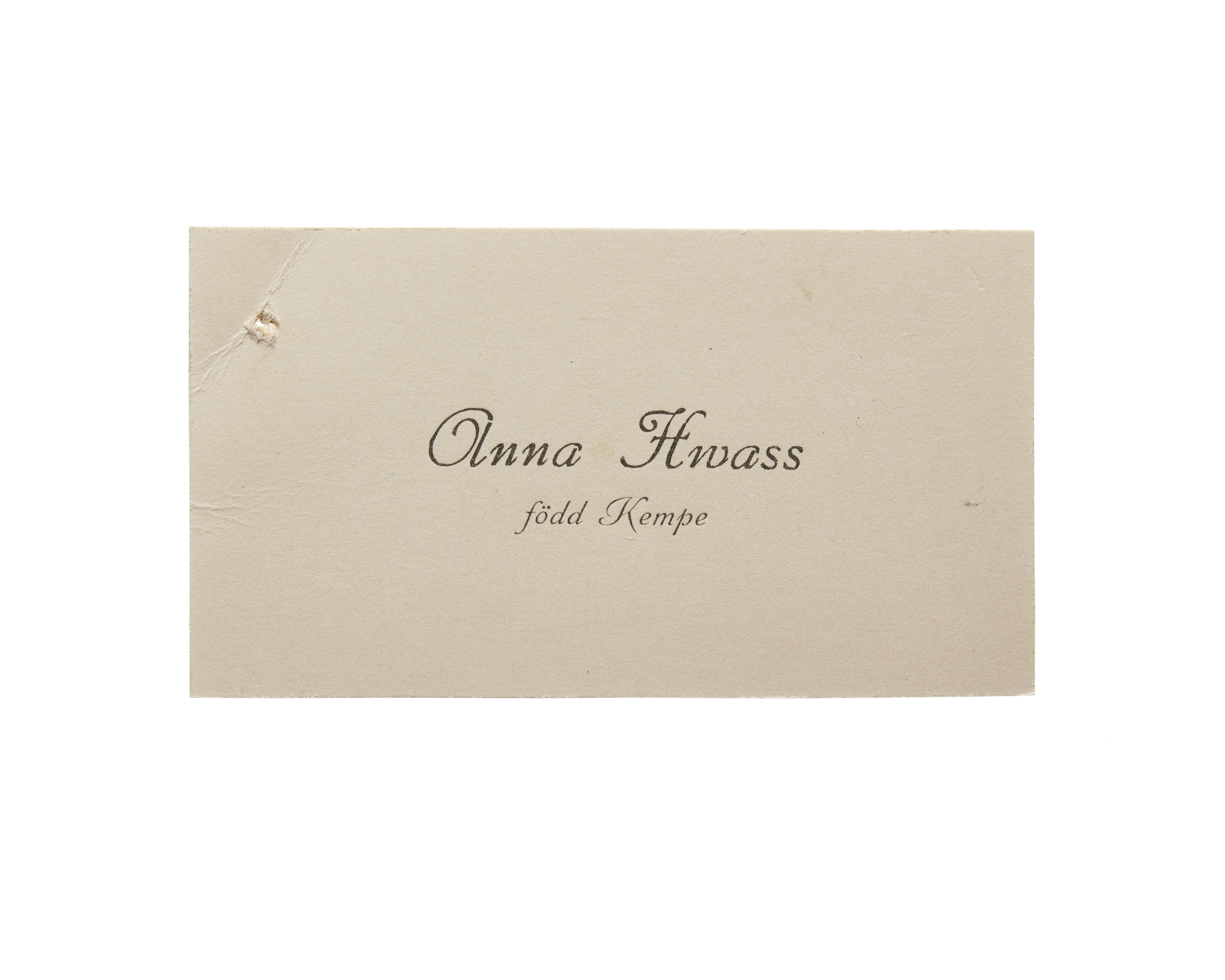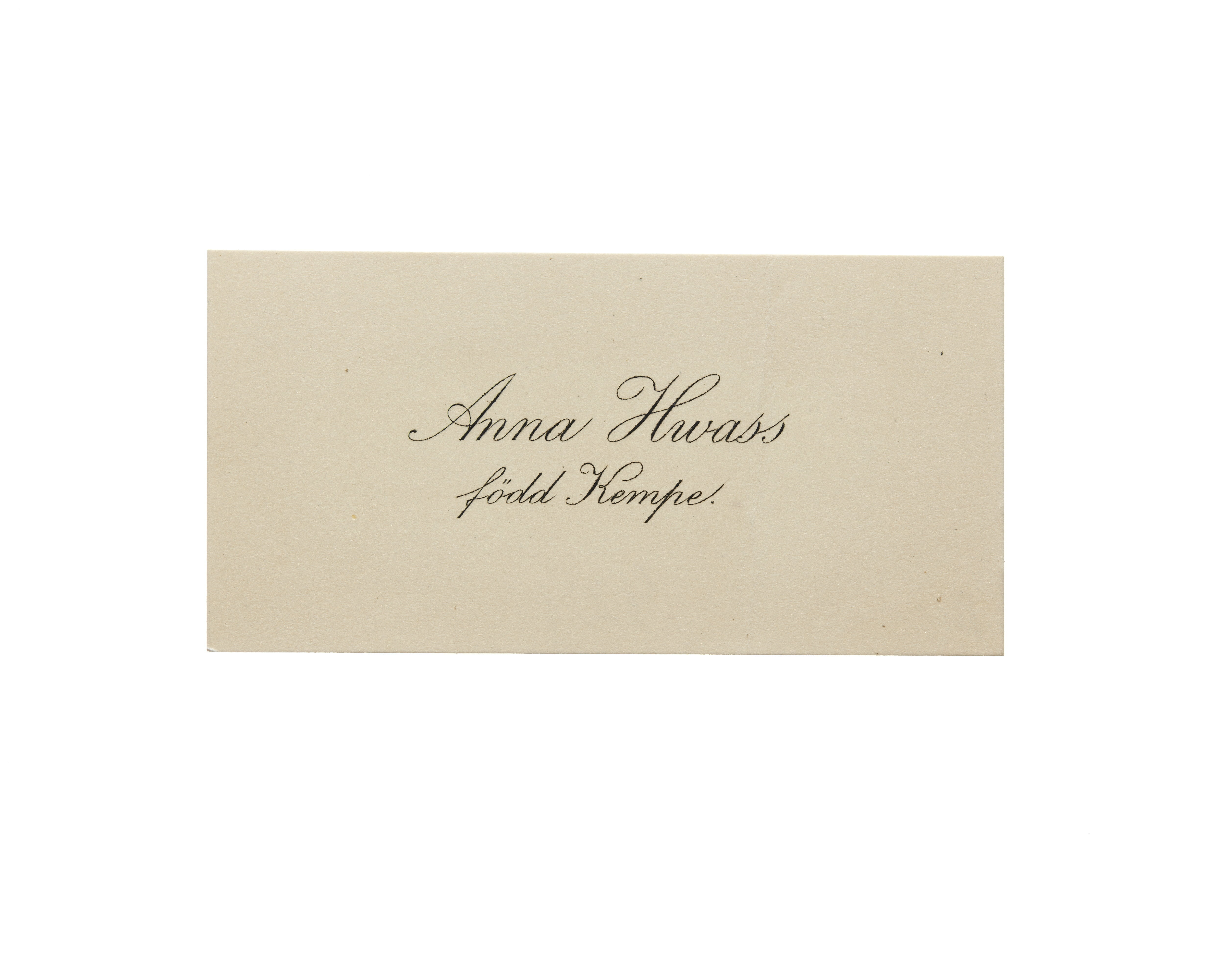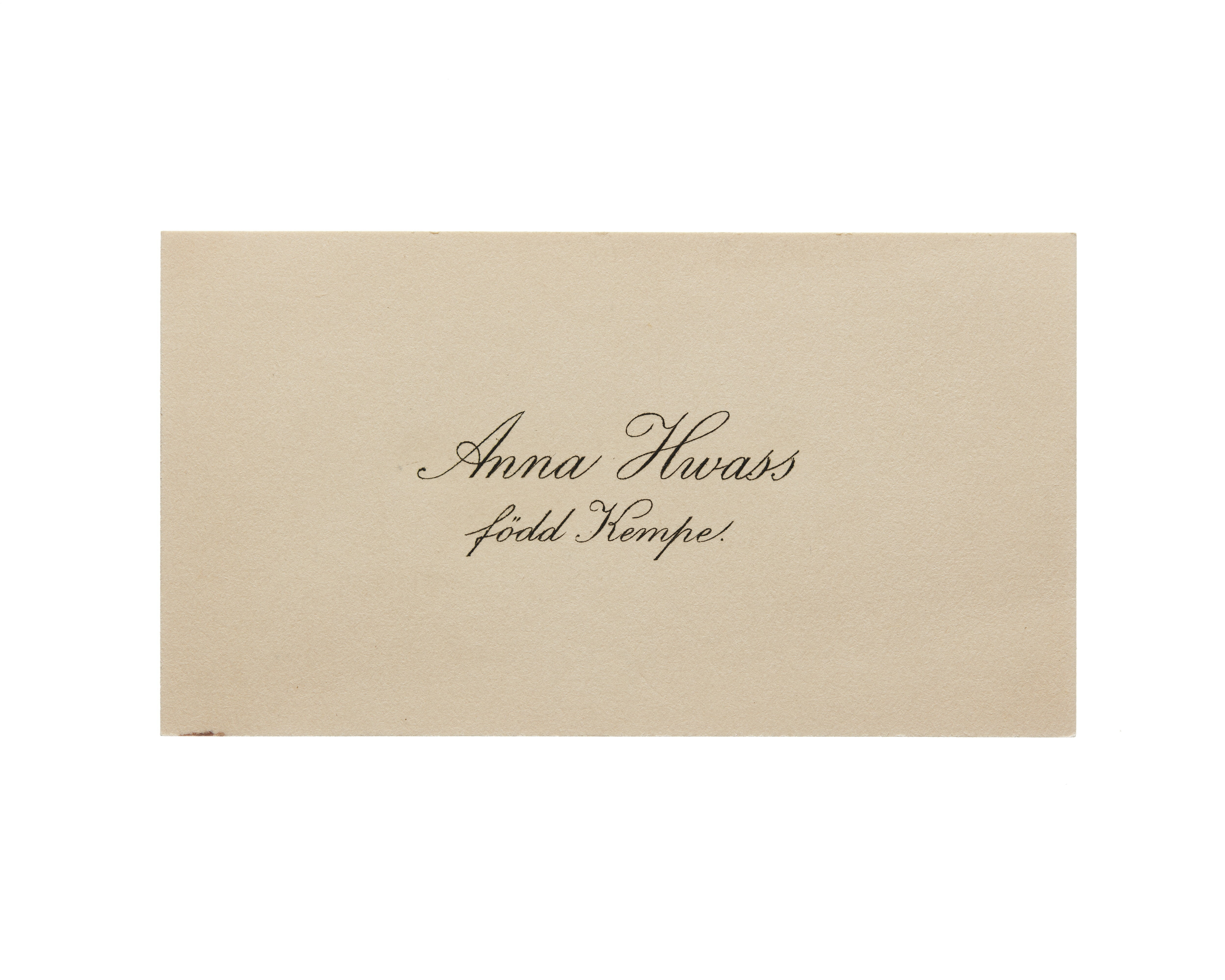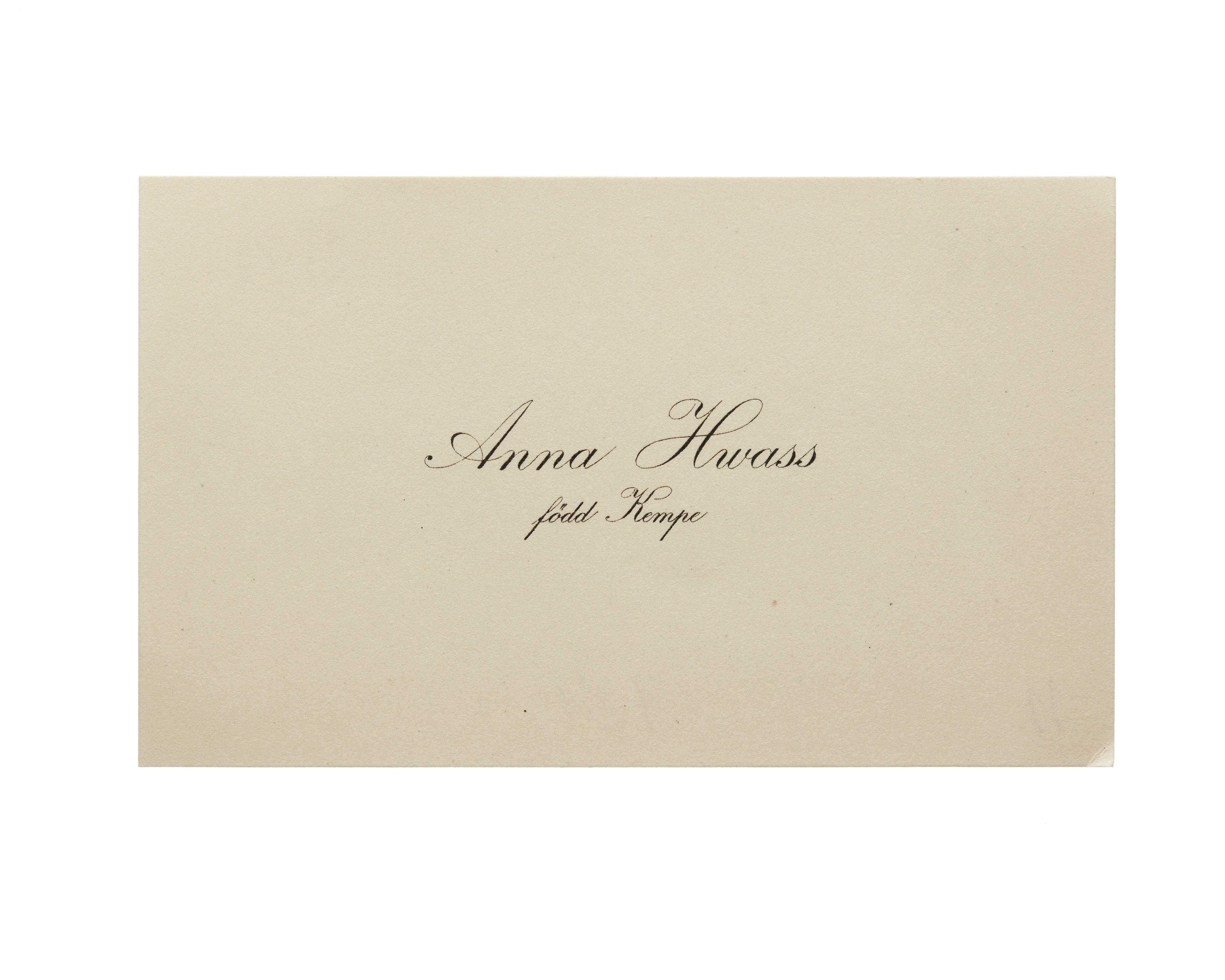 Visitkort från Anna Hwass, f. Kempe.
