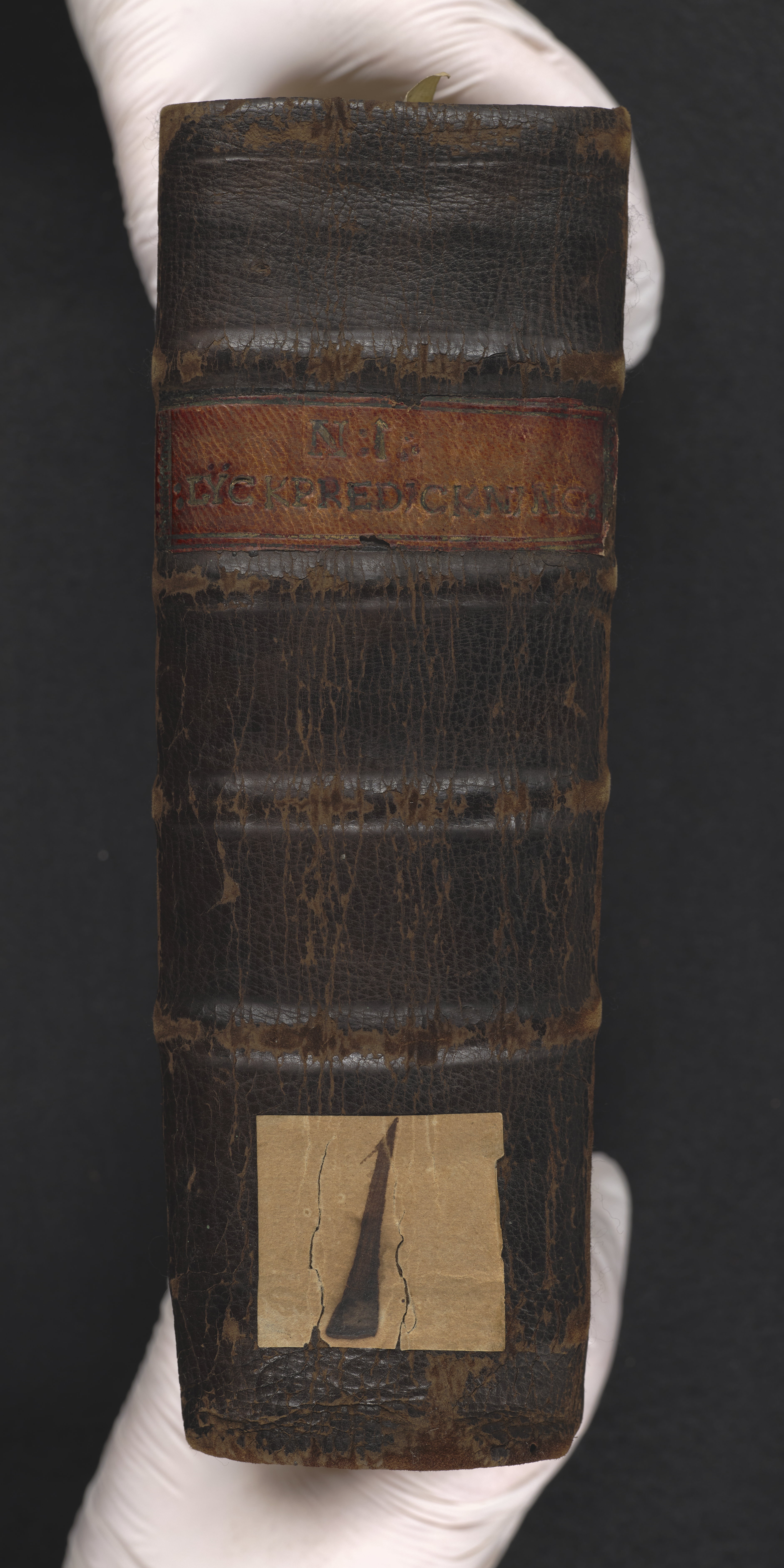 Band av svart kalvskinn dekorerat med blindtryck. Fast rygg. Inlagan består av enskilda skrifter som tillsammans häftats på tre bind, fast rygg. Variationer i papperskvalitet och storlek.11 skrifter samlade i en volym