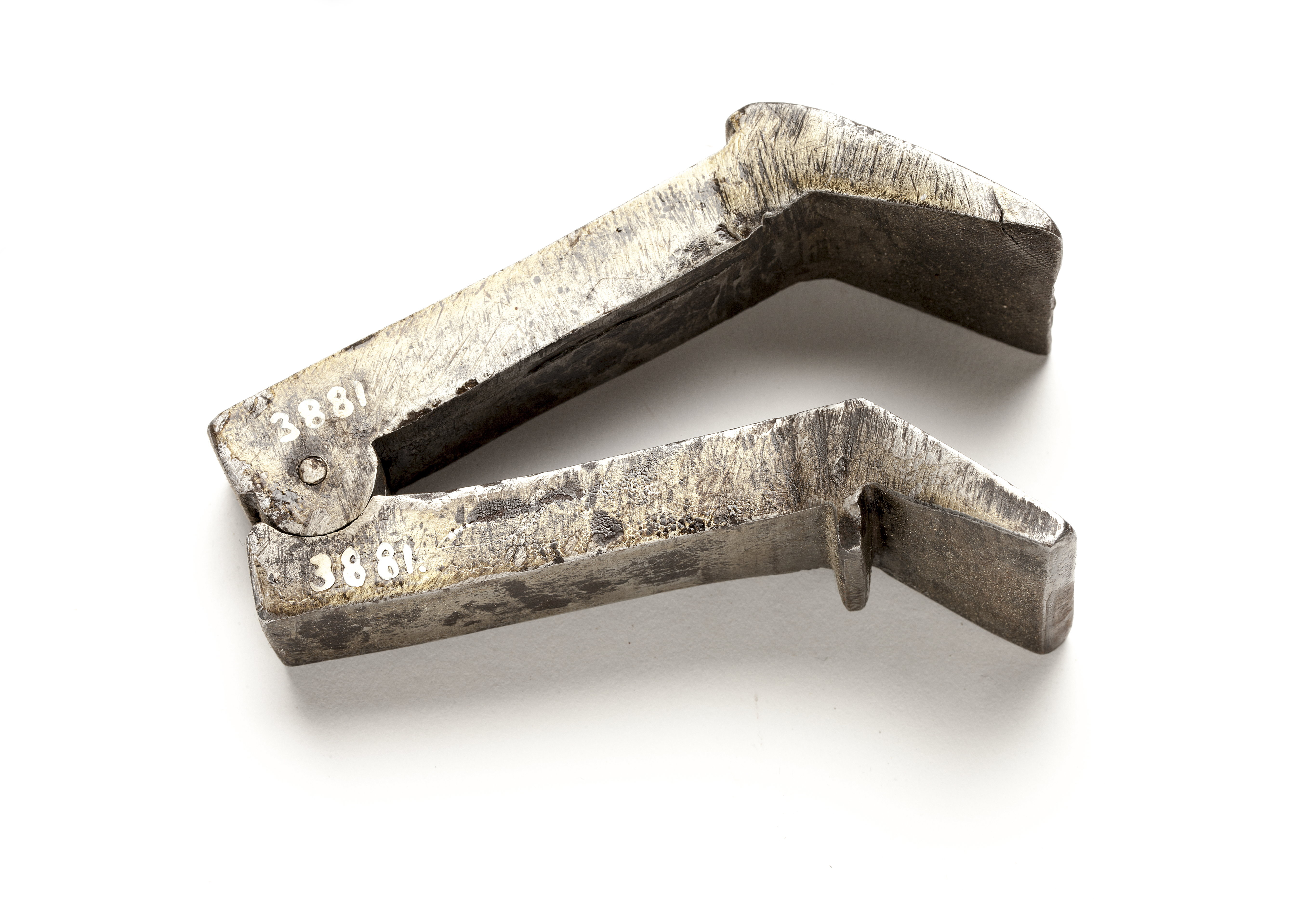 Två backar. På backarnas insidor delvis bortfilad räffling. 1823 års inv.: "2 st. Fas Klofwar, af järn, att sätta i Skruvstäd".