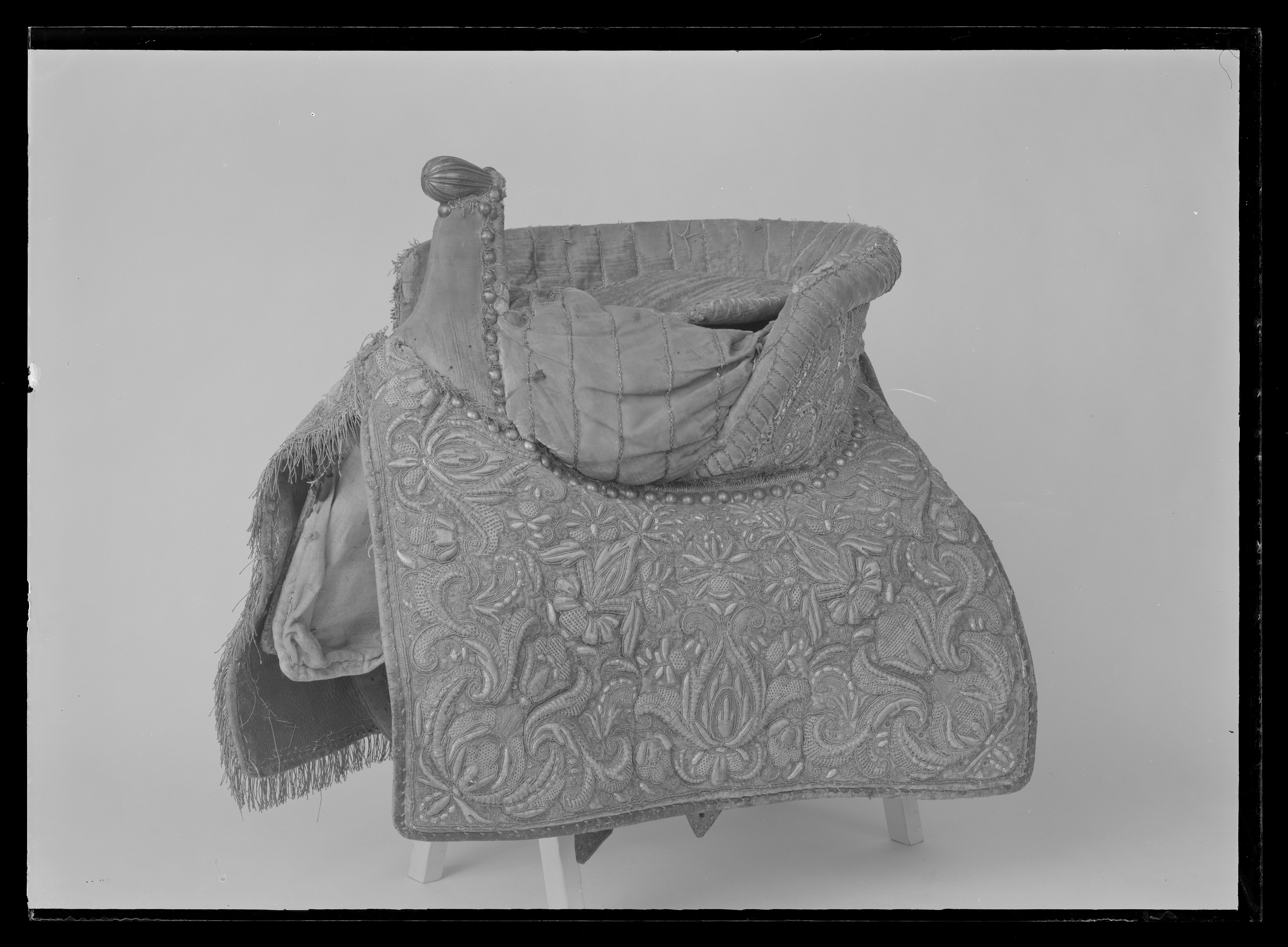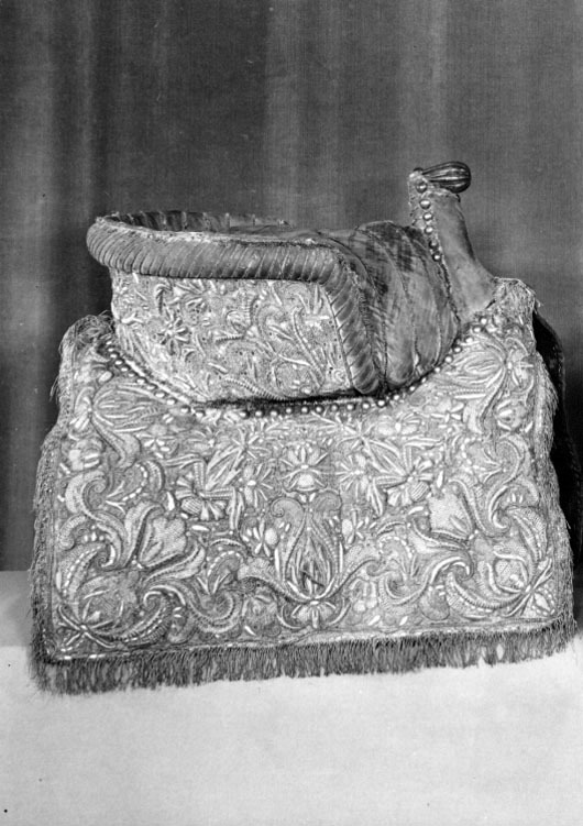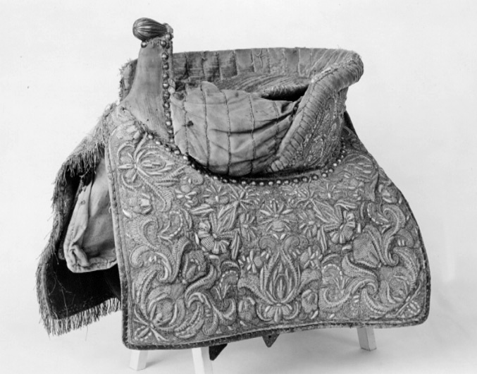 Damsadel, 1650-talet, som tillhört drottning Kristina, tillverkad i Frankrike, monterad i Sverige.