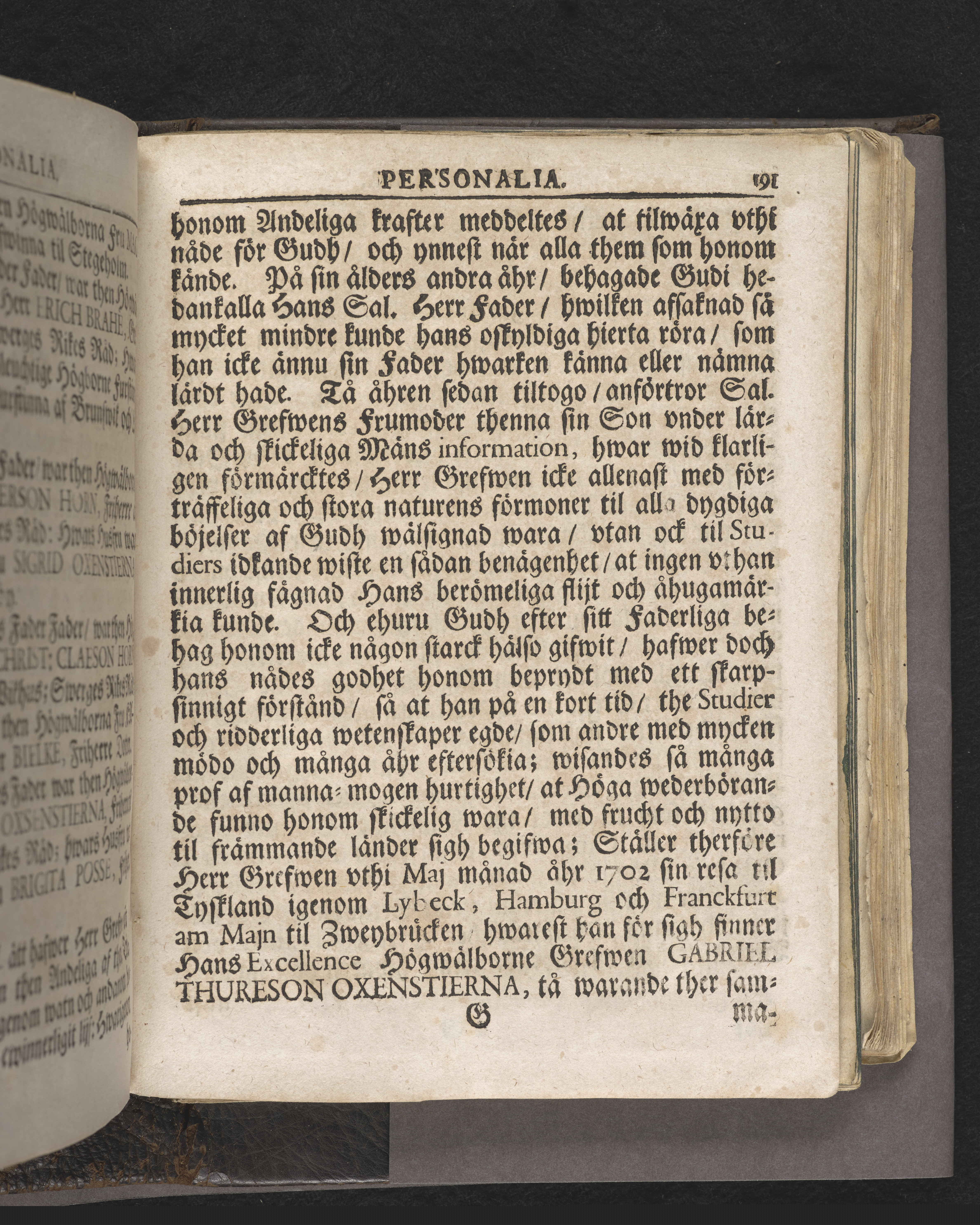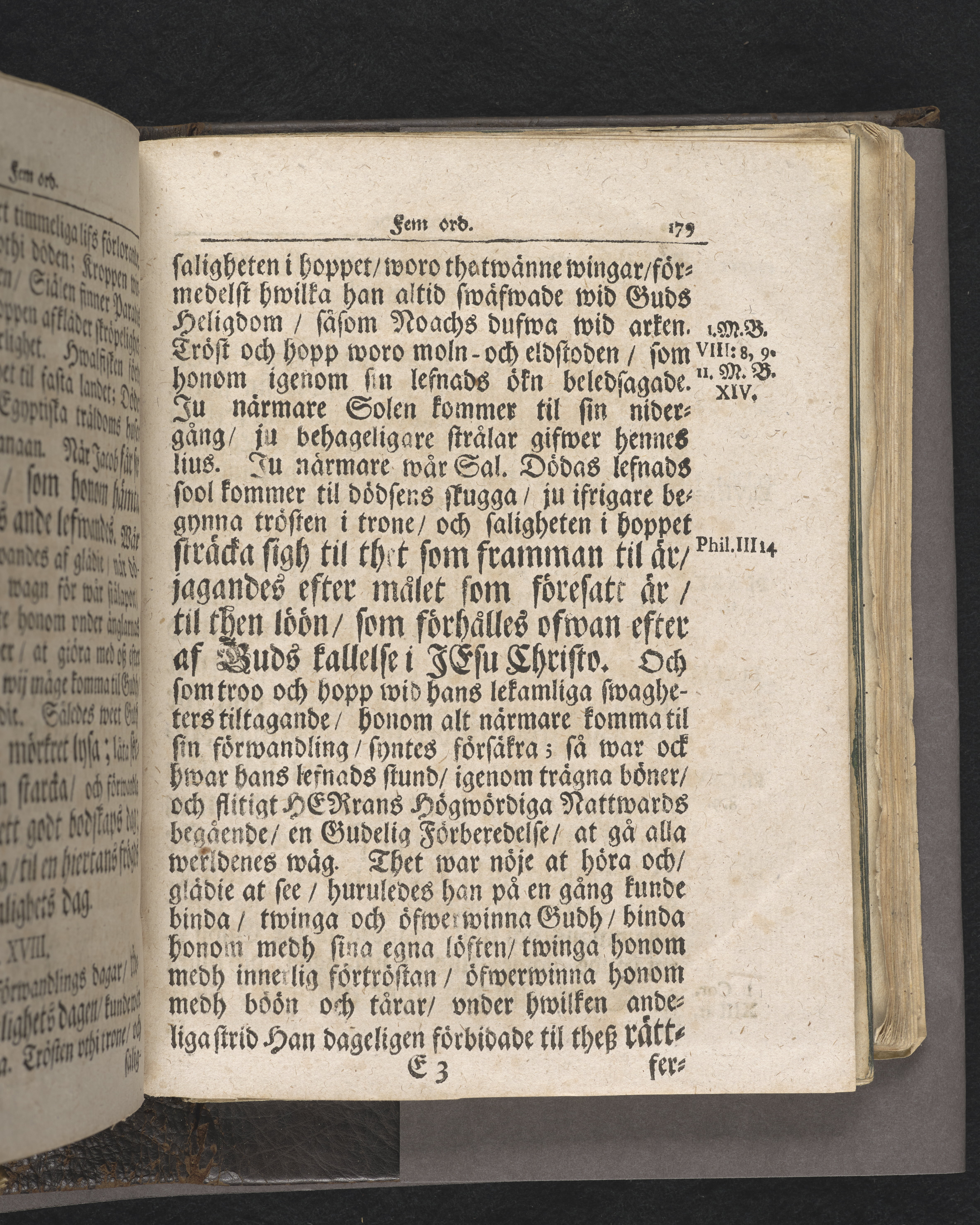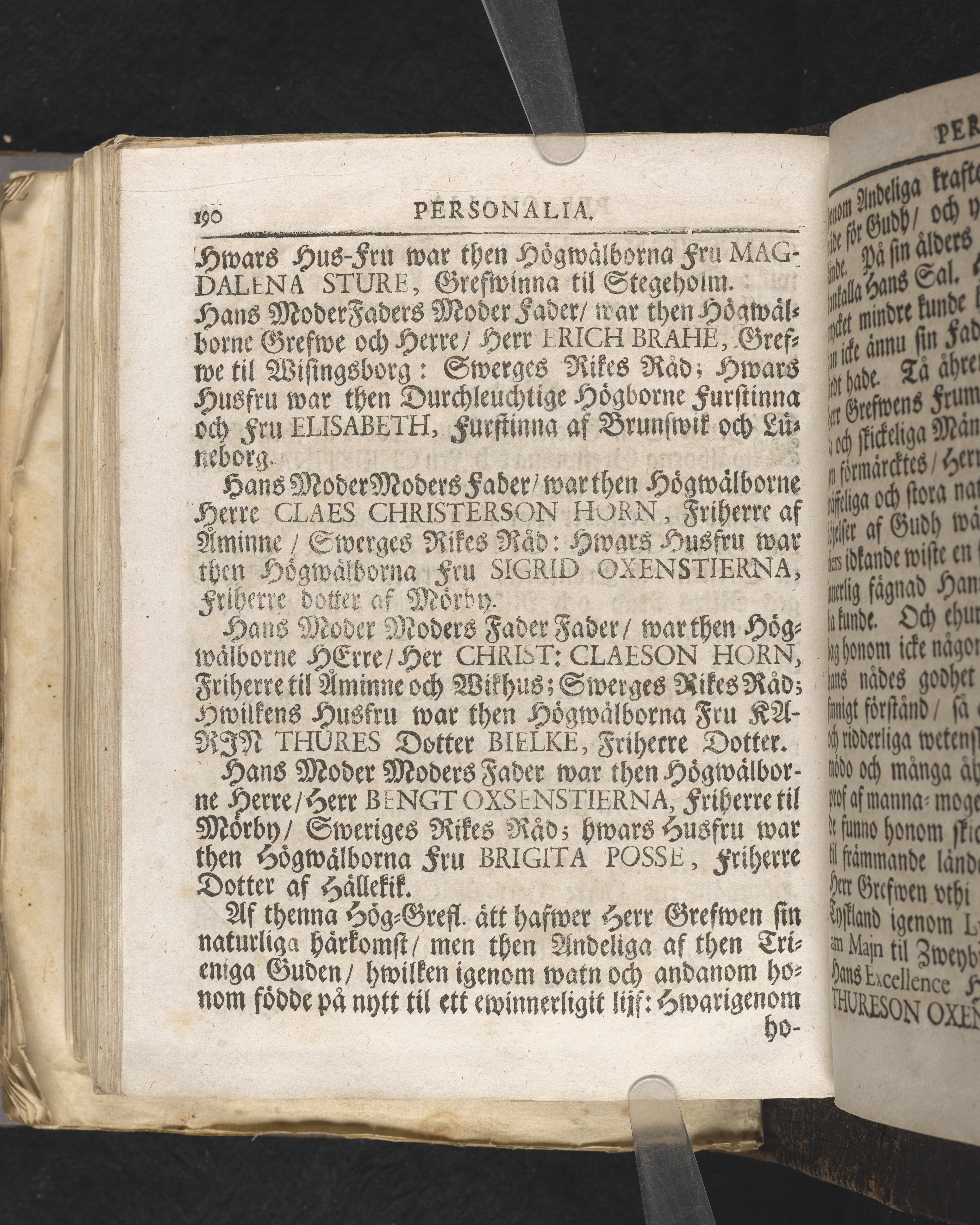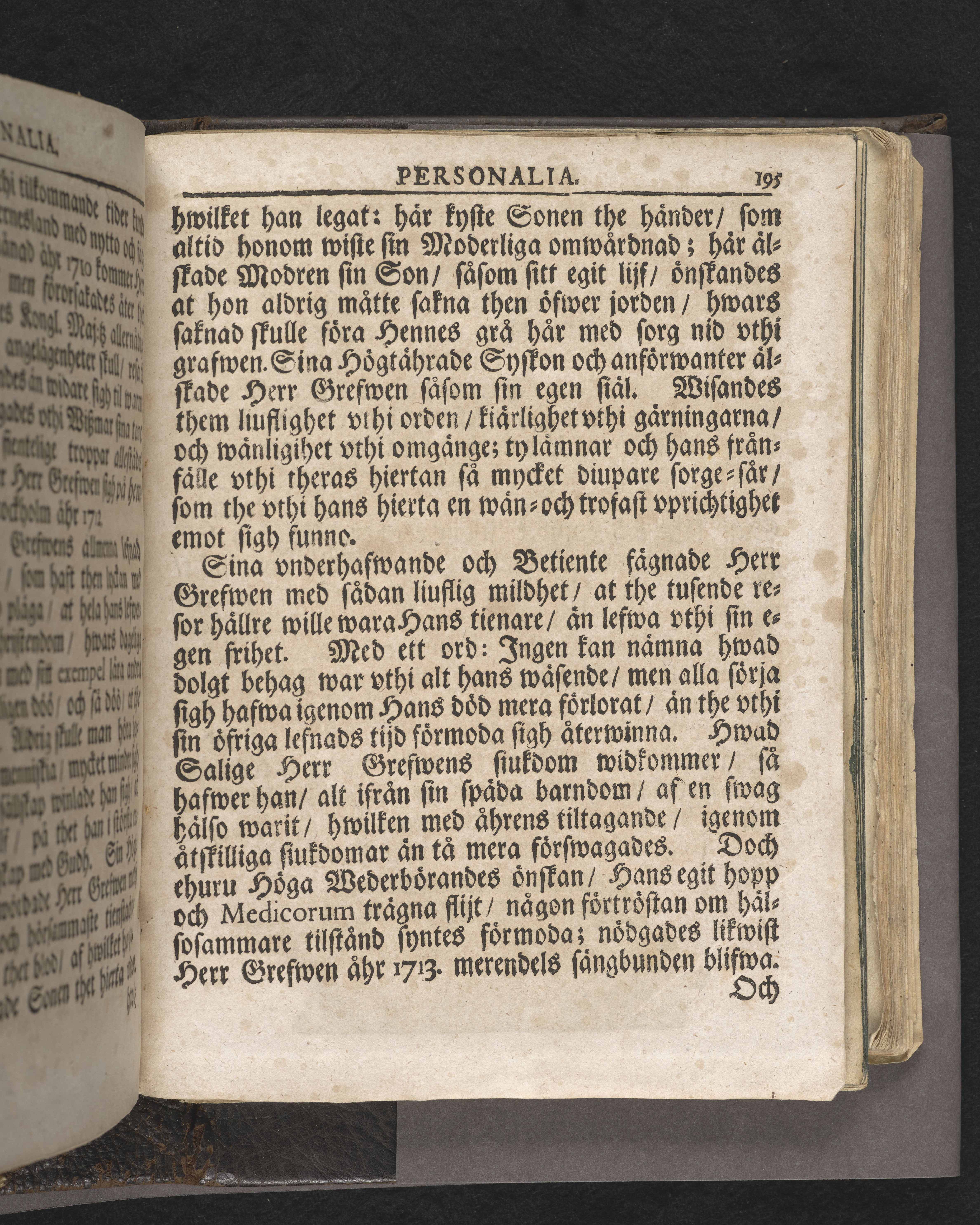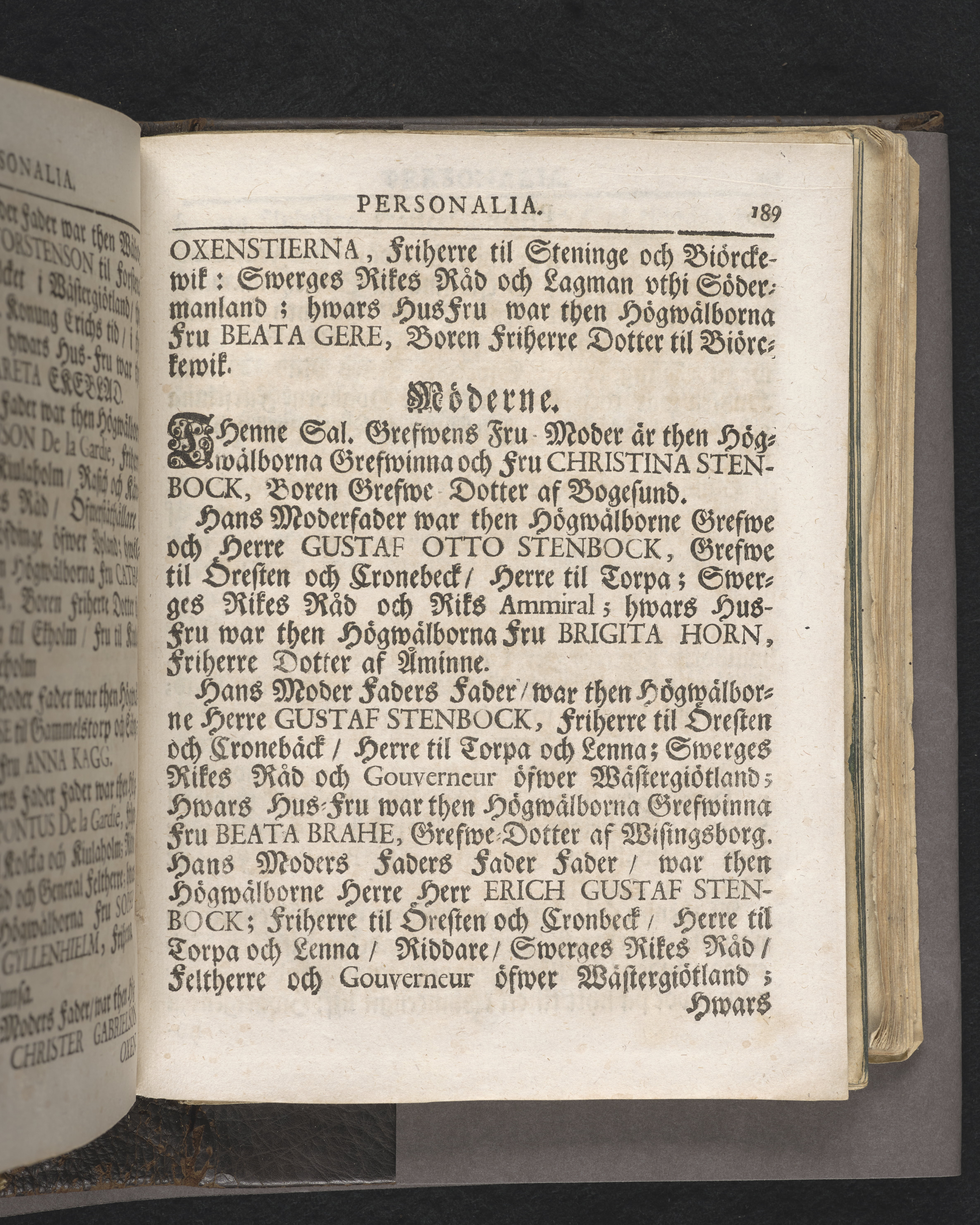 Fem ord, tå fordom ... Hedewig Eleonoræ, tro-man och kamar-herre, högwälborne grefwen, herr Erich Torstenson, til sina fäders graf, vthi kongl, Riddarholms körckian, sorgprydeligen beledsagades then 29. octob. åhr 1718. talte ... Johan Possieth. Stockholm, uti kongl. boktryckeriet hos Joh. H. Werner, kongl. maj:ts så ock Ups. acad. boktr. åhr 1719.
