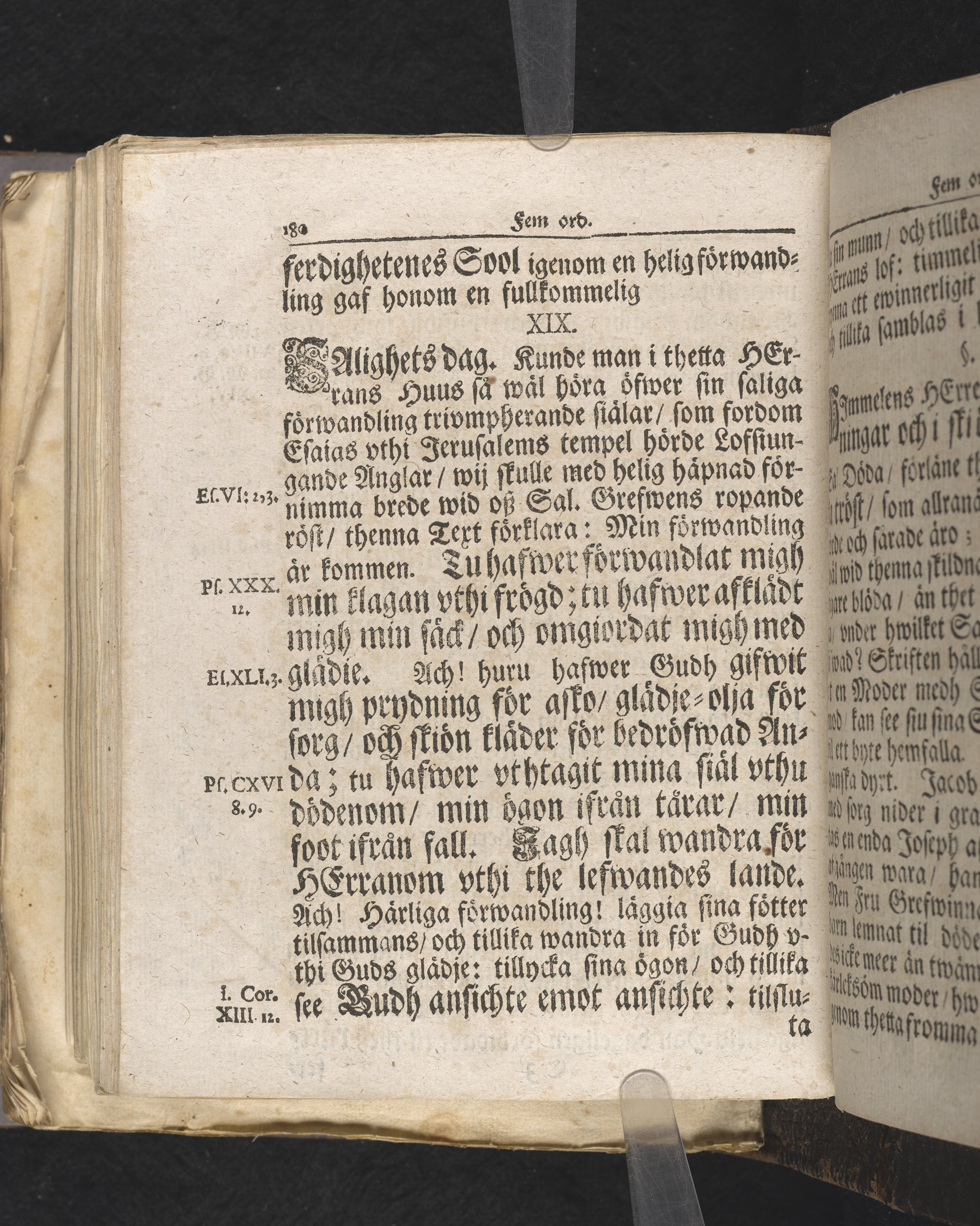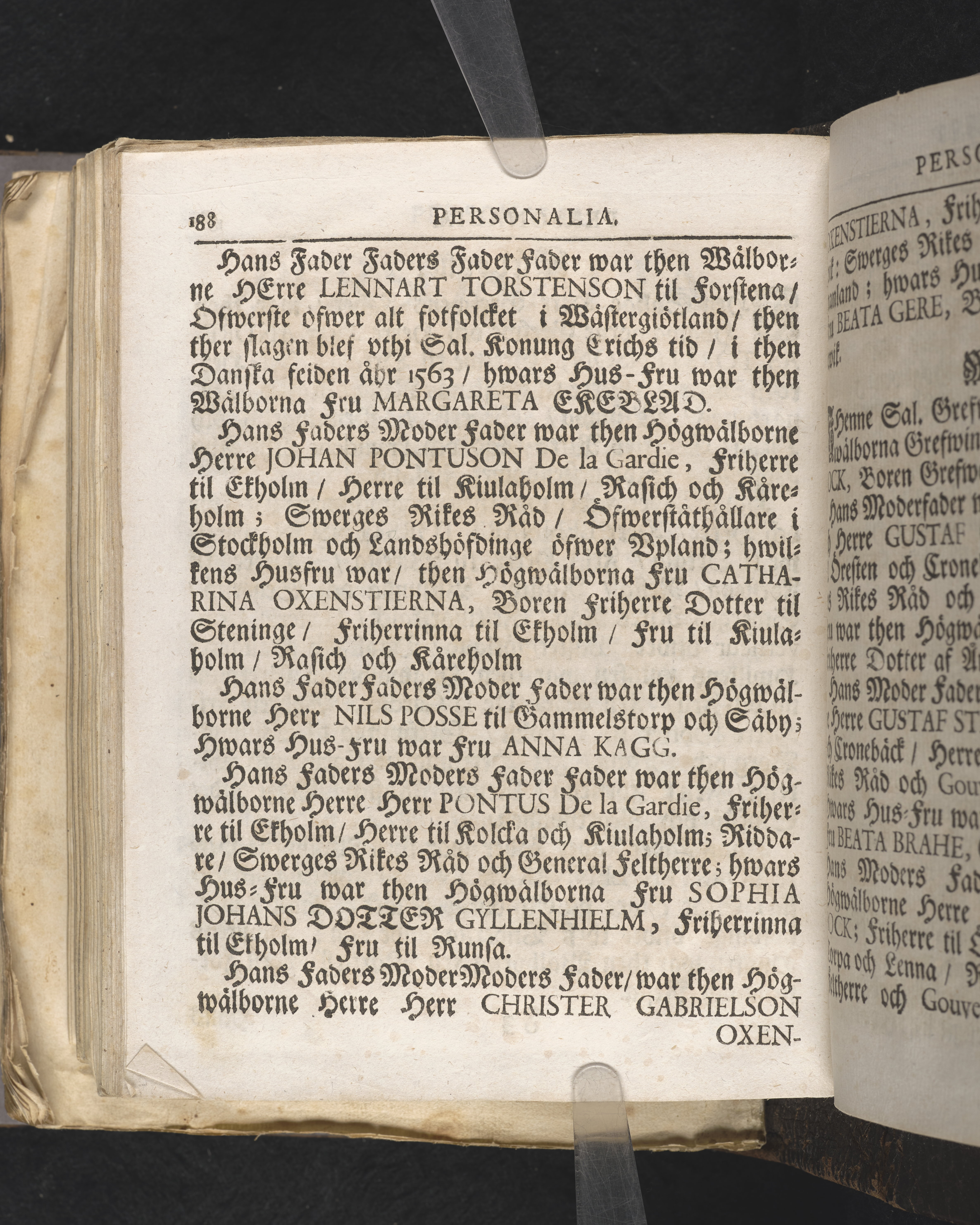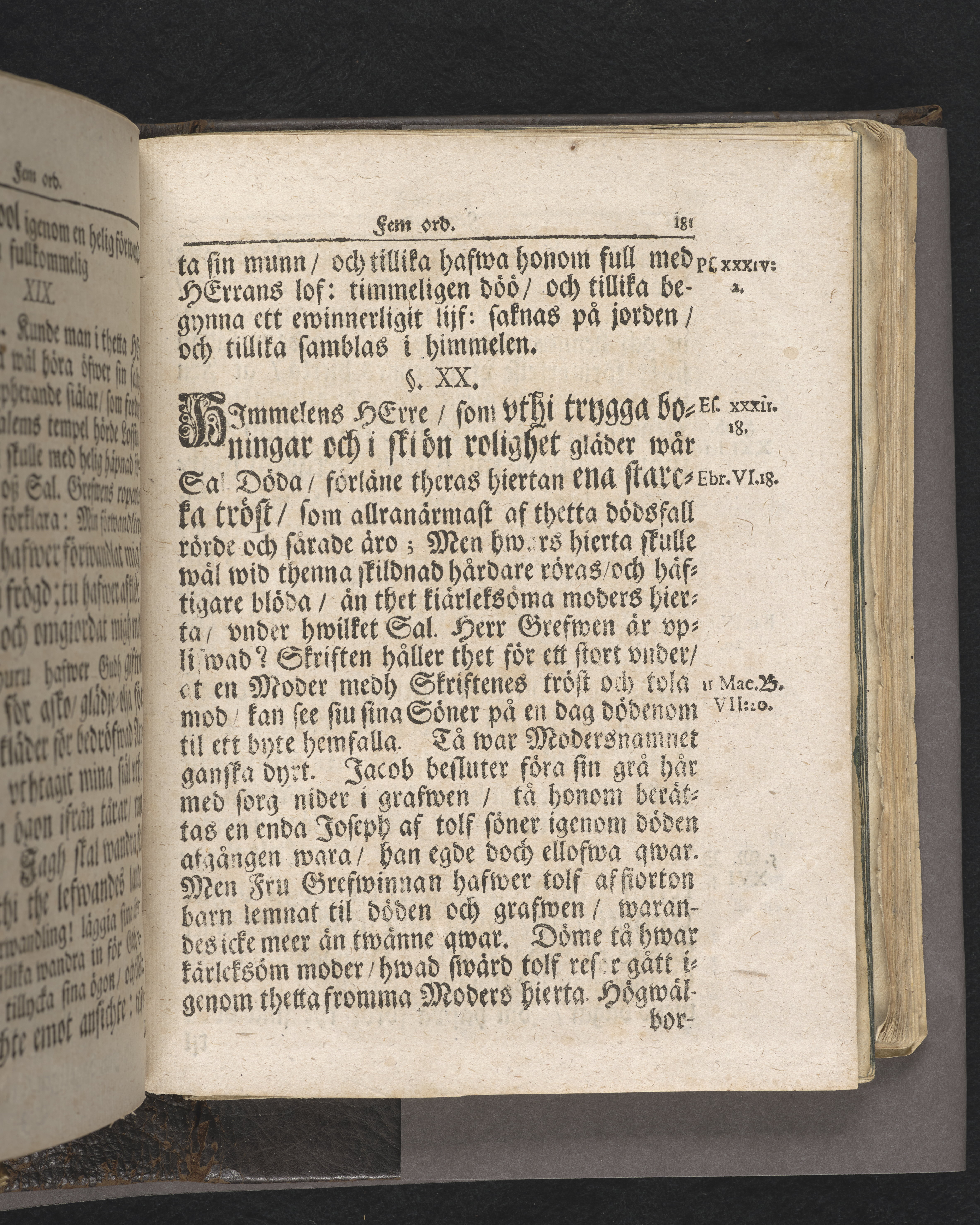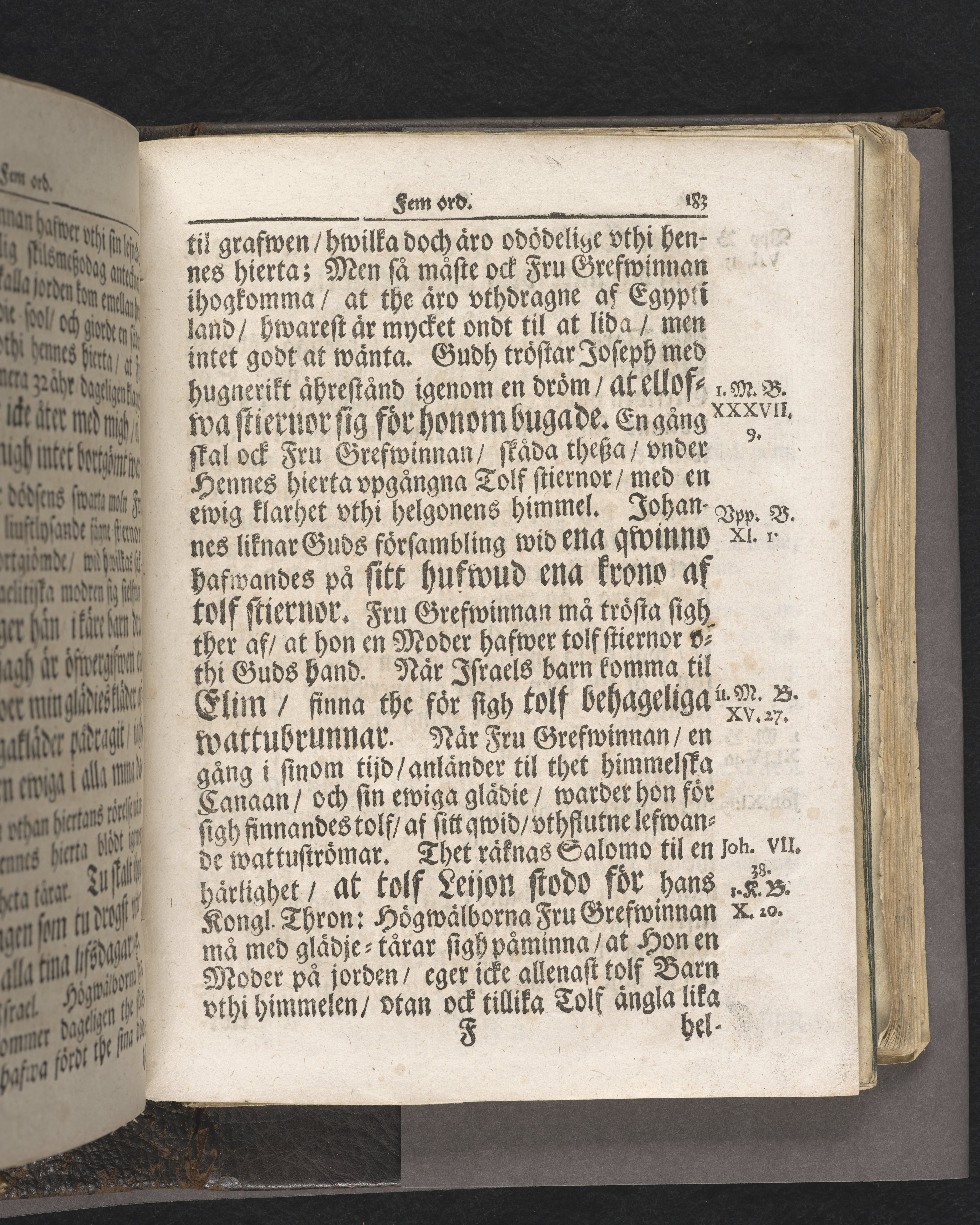 Fem ord, tå fordom ... Hedewig Eleonoræ, tro-man och kamar-herre, högwälborne grefwen, herr Erich Torstenson, til sina fäders graf, vthi kongl, Riddarholms körckian, sorgprydeligen beledsagades then 29. octob. åhr 1718. talte ... Johan Possieth. Stockholm, uti kongl. boktryckeriet hos Joh. H. Werner, kongl. maj:ts så ock Ups. acad. boktr. åhr 1719.