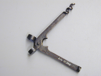 Pipan är stämplad E P S, möjligen Erik Persson Bingsta, låset stämplat S P S, möjligen Salomon Persson, Bingsta. I kolvlådan patronhylsa nr 13736 och kulor 13737. Kultång med cylindriskt gjuthuvud, urtagning för rundkula, d: ca 7,9 mm. Skänklarna förenade med skruv, därbakom sax för kultappen. Skänklarnas ändar verktyg, den ena stampplatta, d: ca 8 mm, den andra en spiralvriden krats.
