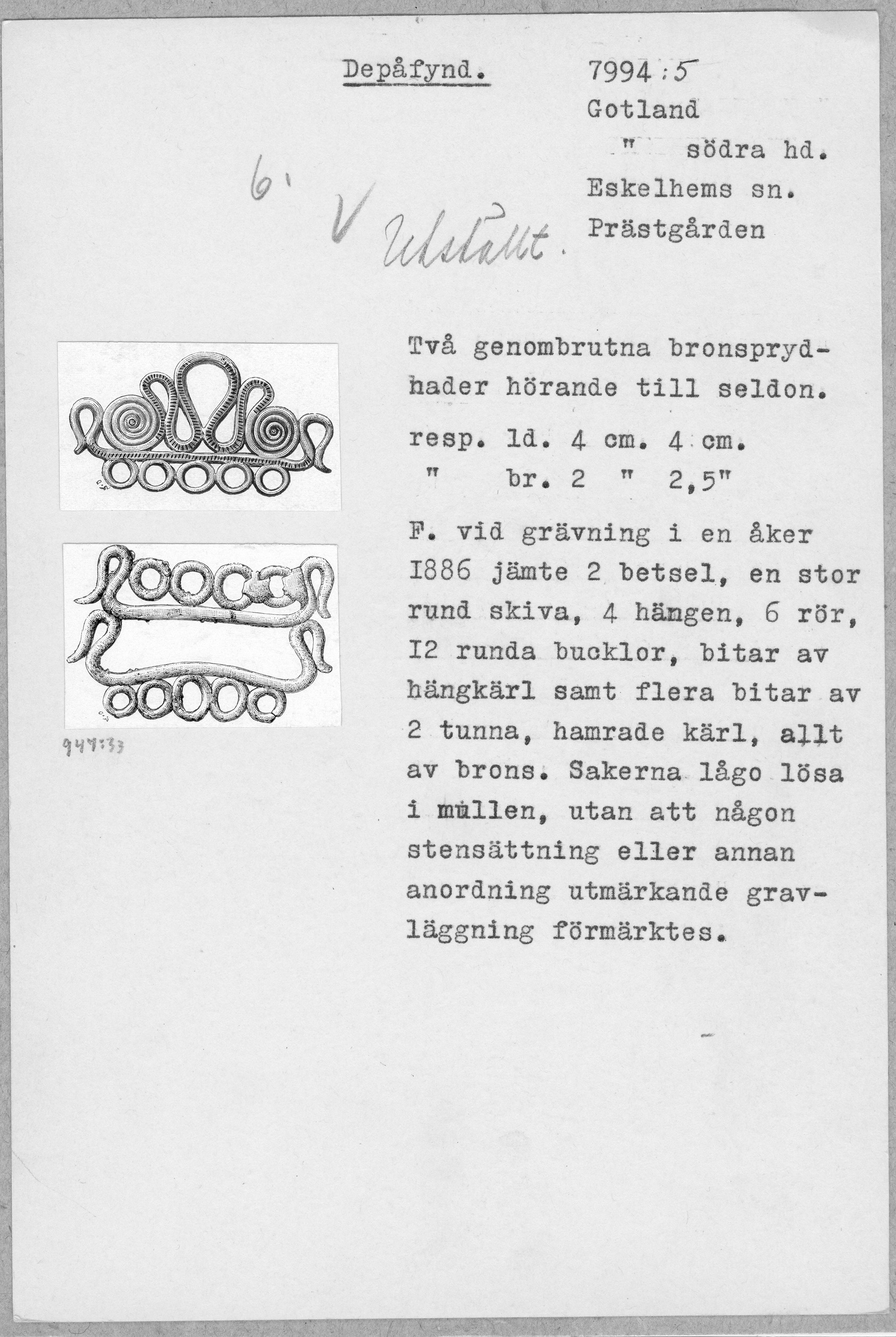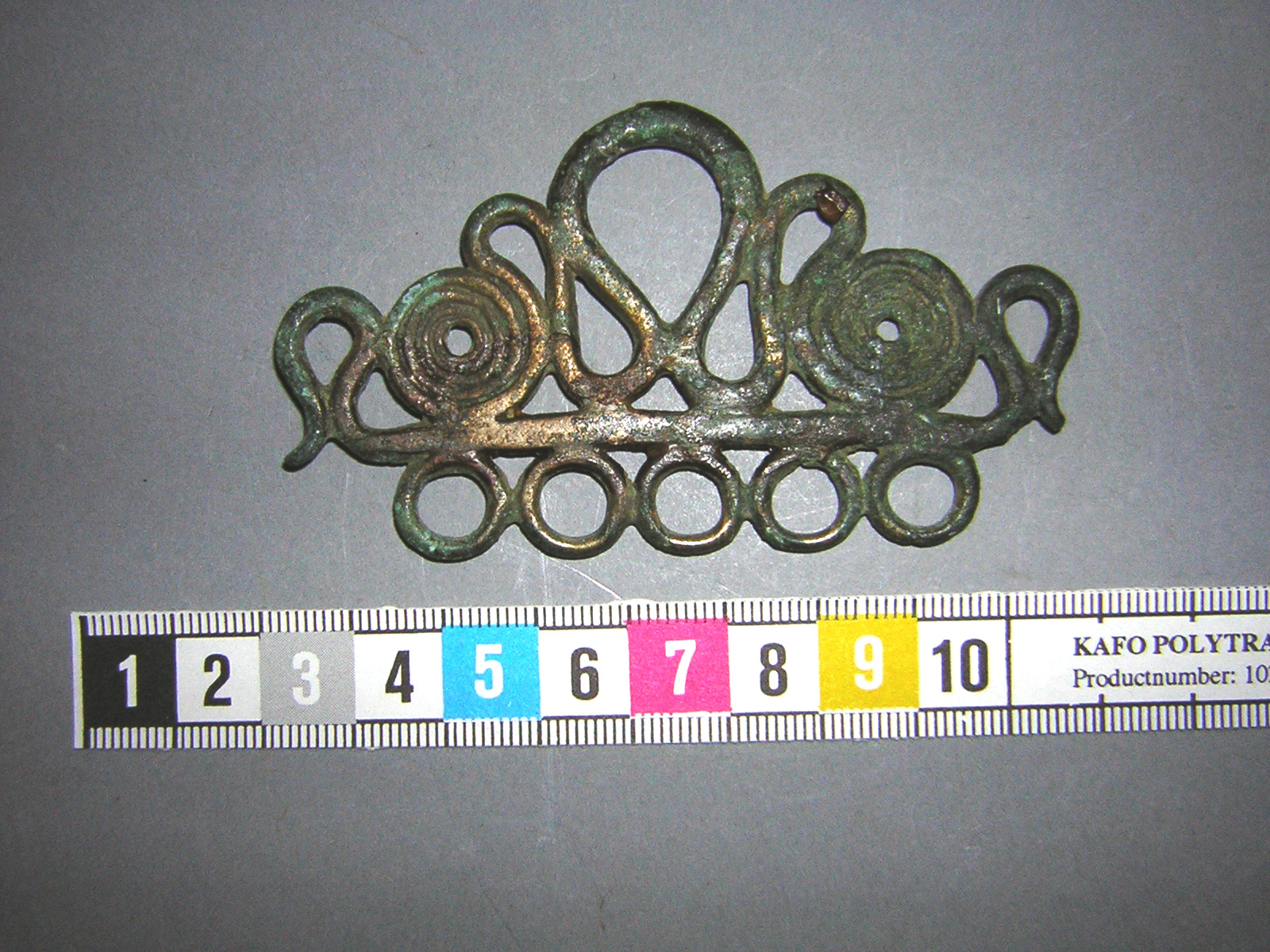 Genombruten bronsprydnad hörande till seldon.