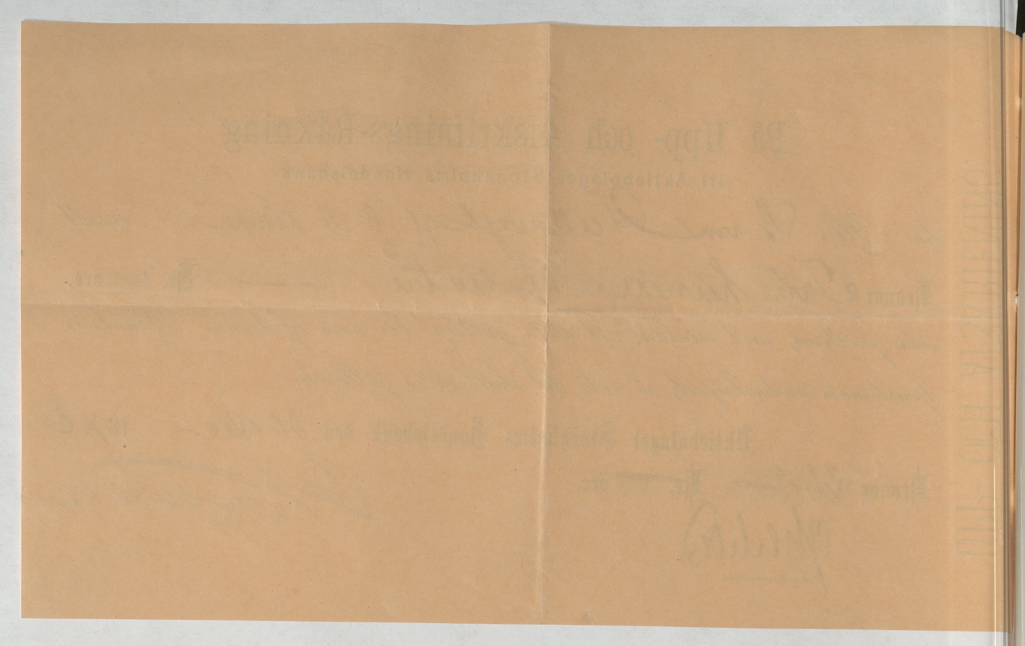 Kvitto från Aktiebolaget Stockholms Handelsbank rörande Upp- och Afskrifnings-Räkning
