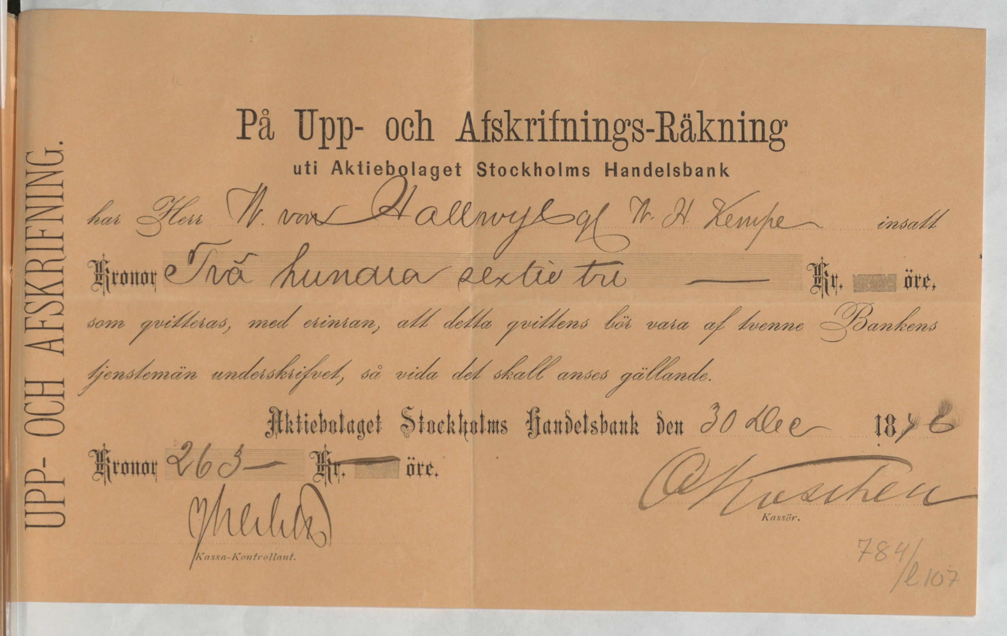 Upphov: Stockholms Handelsbank AB. Media: Statens historiska museer. Hallwylska museet/SHM, (PDM) Upphovsrätten till detta verk har gått ut och är därmed fritt att använda på alla sätt. Ange gärna upphovsperson om denne är känd.