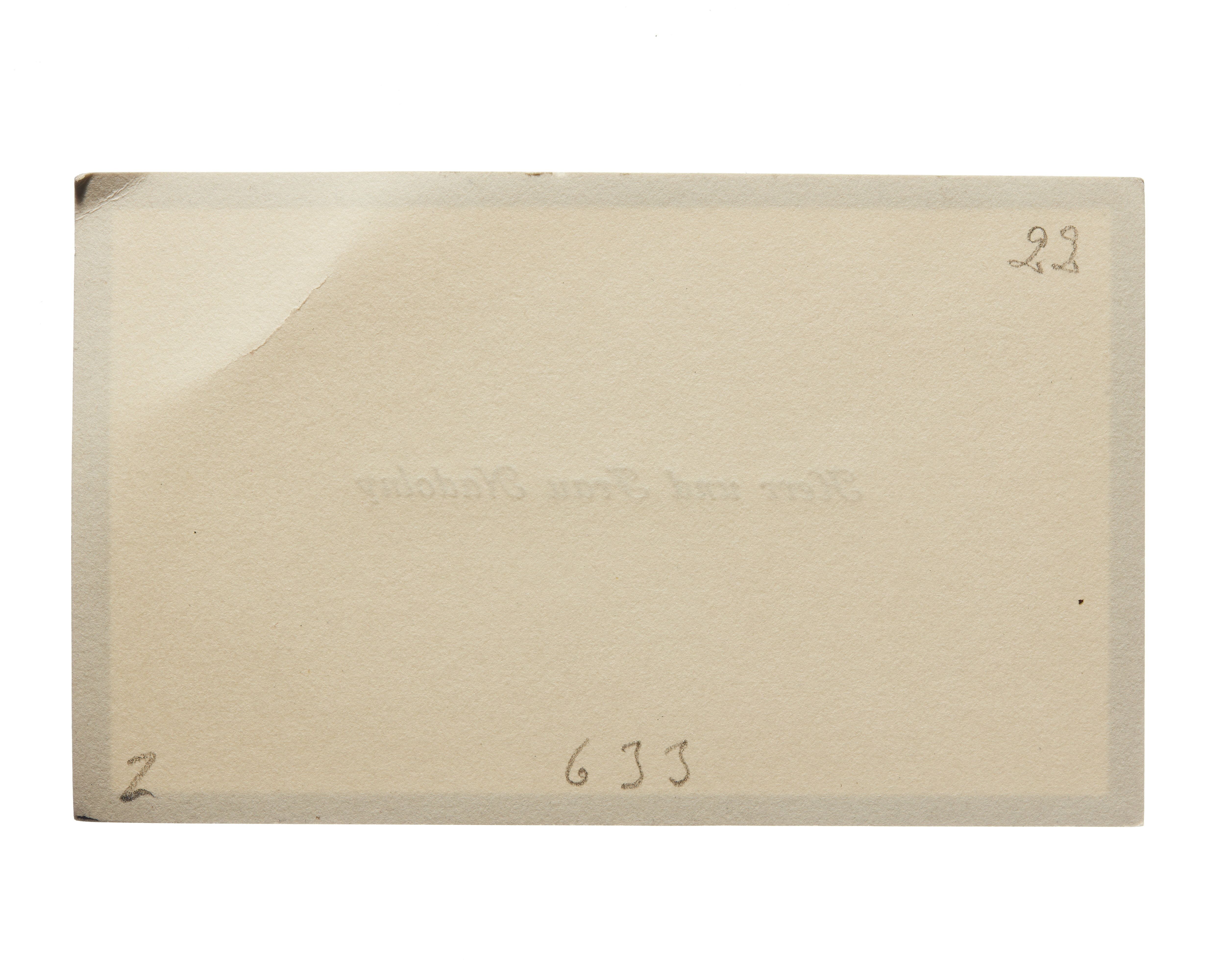 Två visitkort från Herr Rudolf Nadolny och Fru Nadolny. Första kortet daterat 1923, vikt i övre högra hörnet. Handskrift "p. p. c.". Andra kortet daterat 1923 samt sorgkant, vikt i övre högra hörnet.