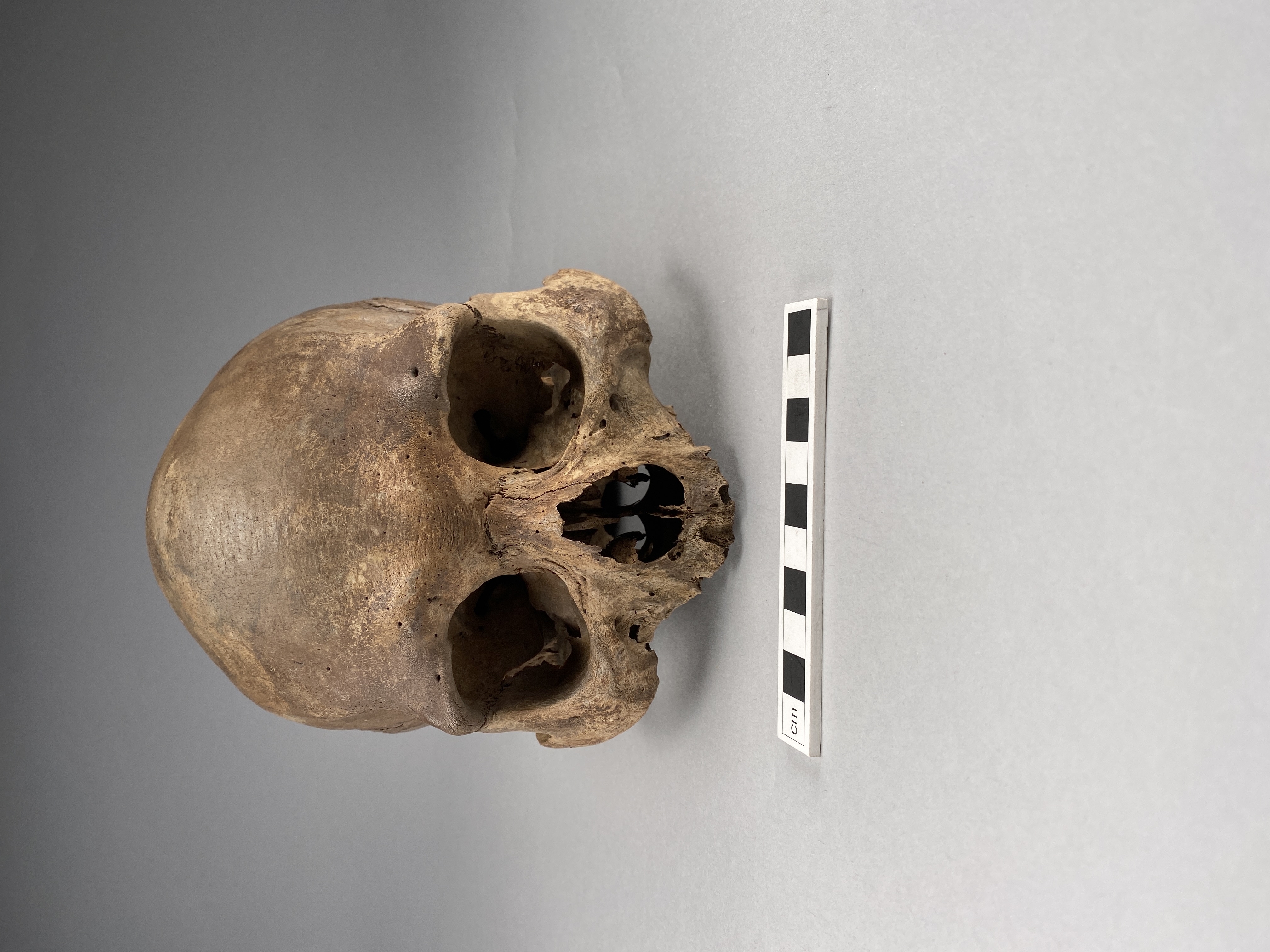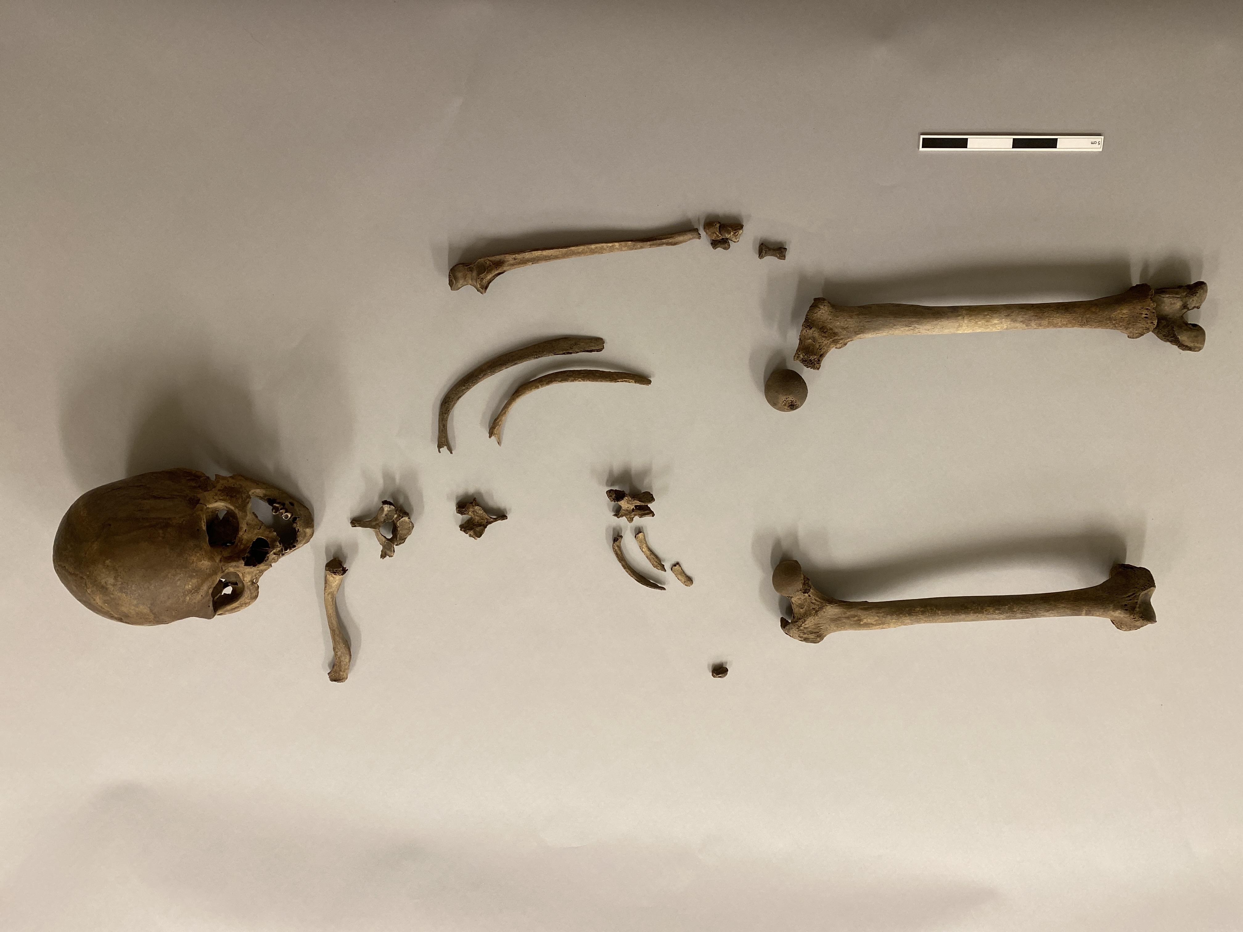Datering 7 873-7 539 f Kr. Man, ca 45-60 år , ca 168 cm lång