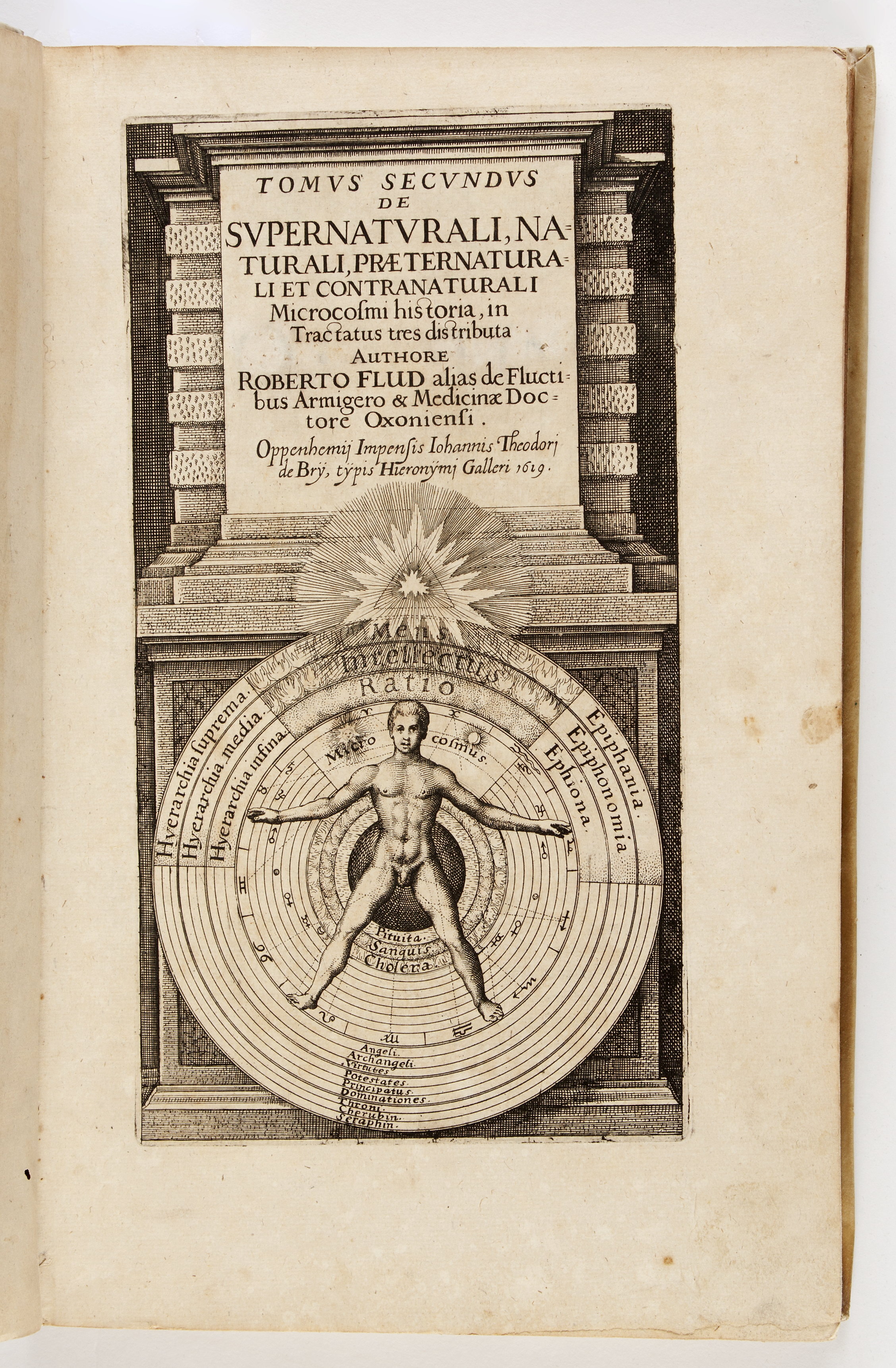 Tomvs secvndvs de svpernatvrali, natvrali, præternaturali et contranaturali microcosmi historia, in tractatus tres distributa... Oppenheimij impensis Johannis Theodorij de Brÿ, tÿpis Hieronymj Galleri 1619.