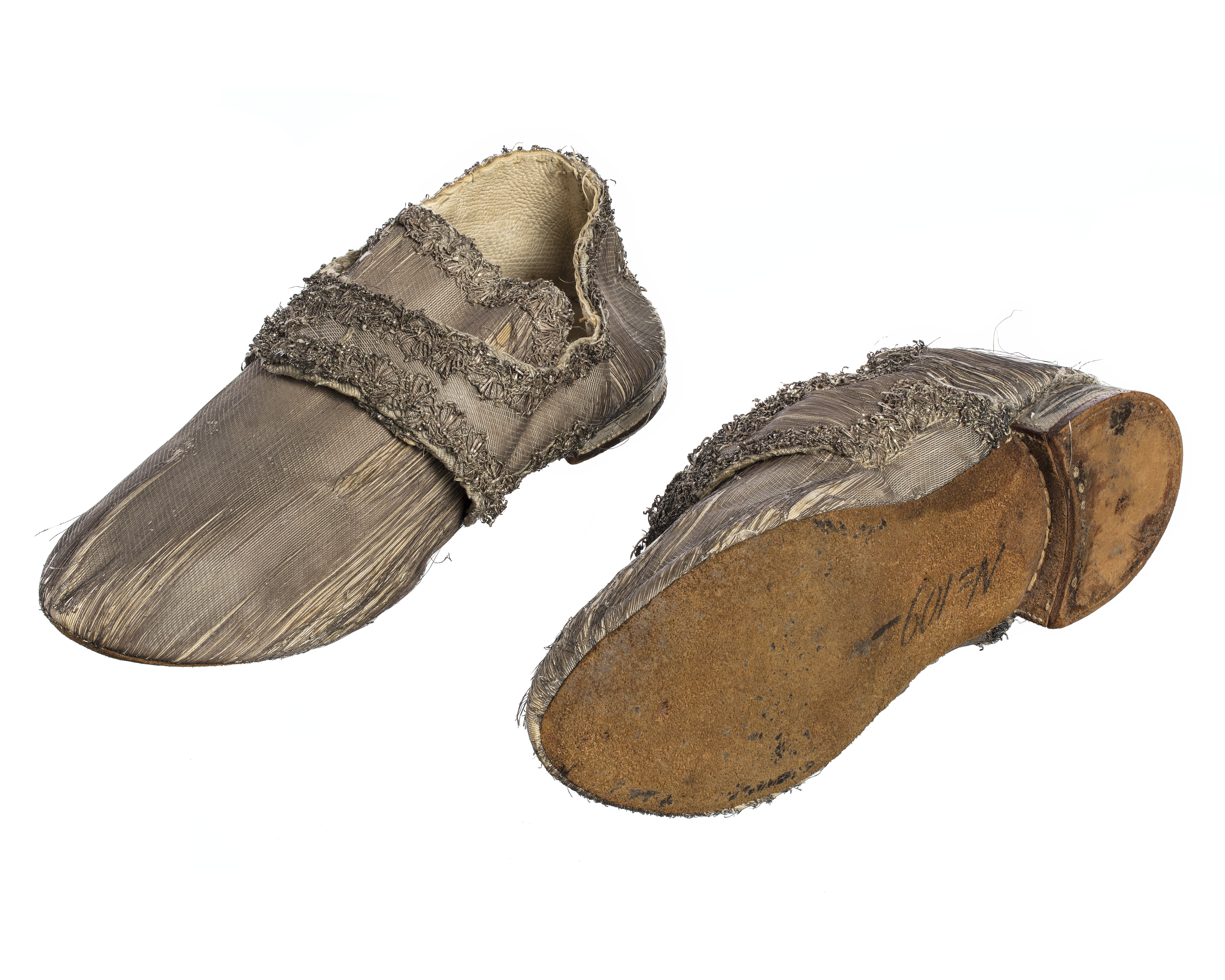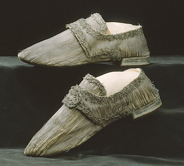 Sko i silvertyg till Gustav III:s bilägersdräkt. Använda vid bröllopet med Sofia Magdalena 4/11 1766.