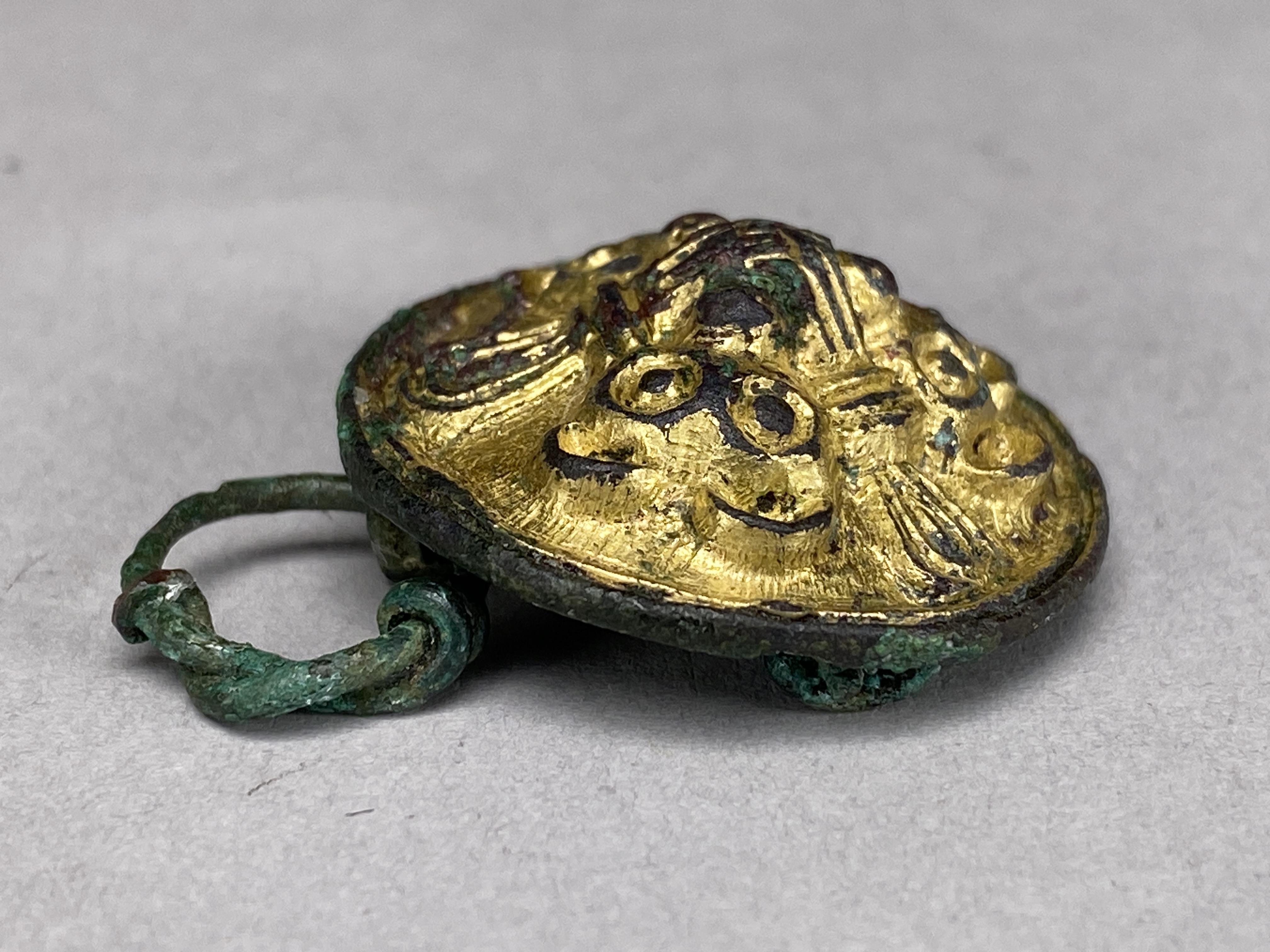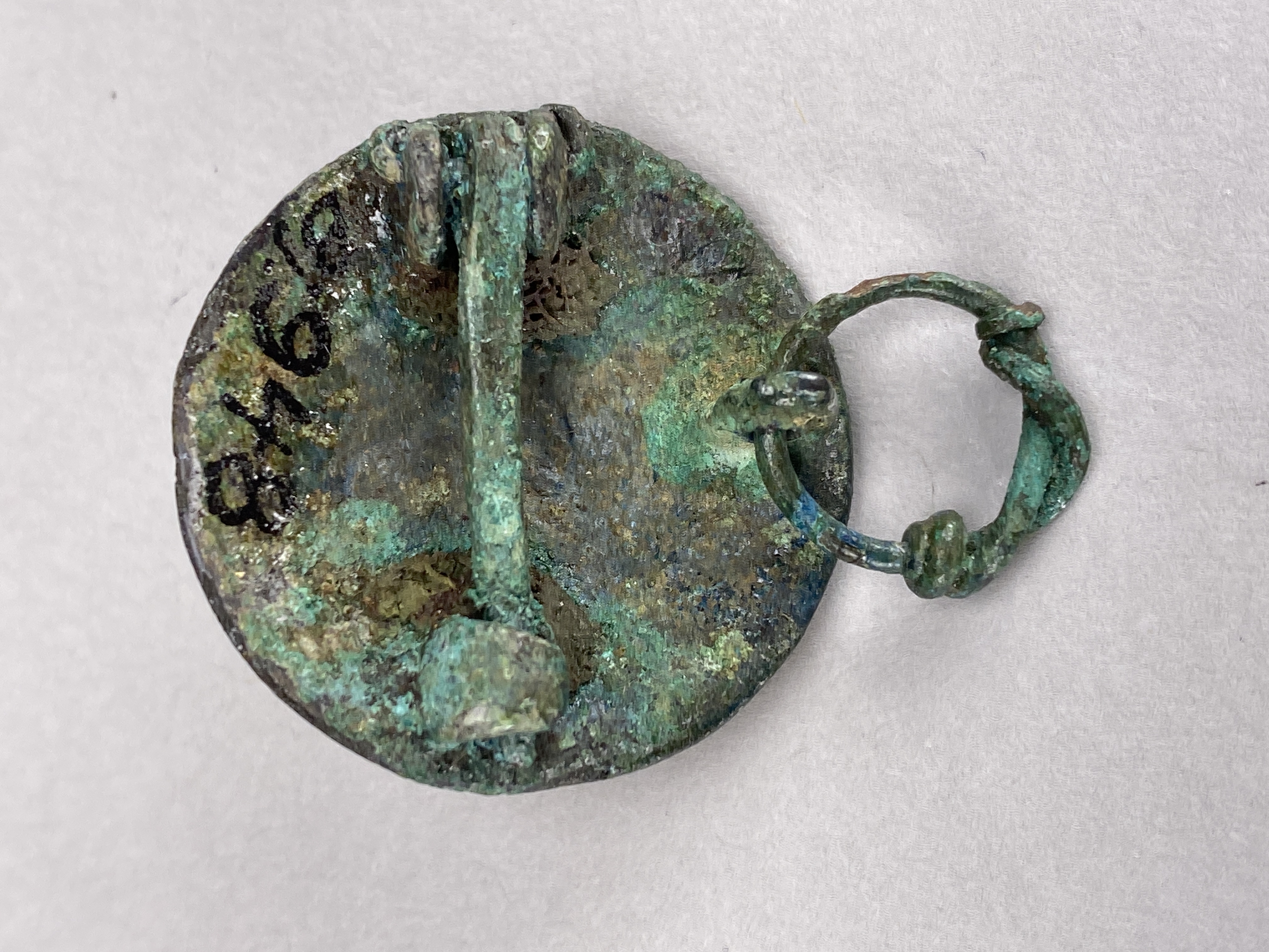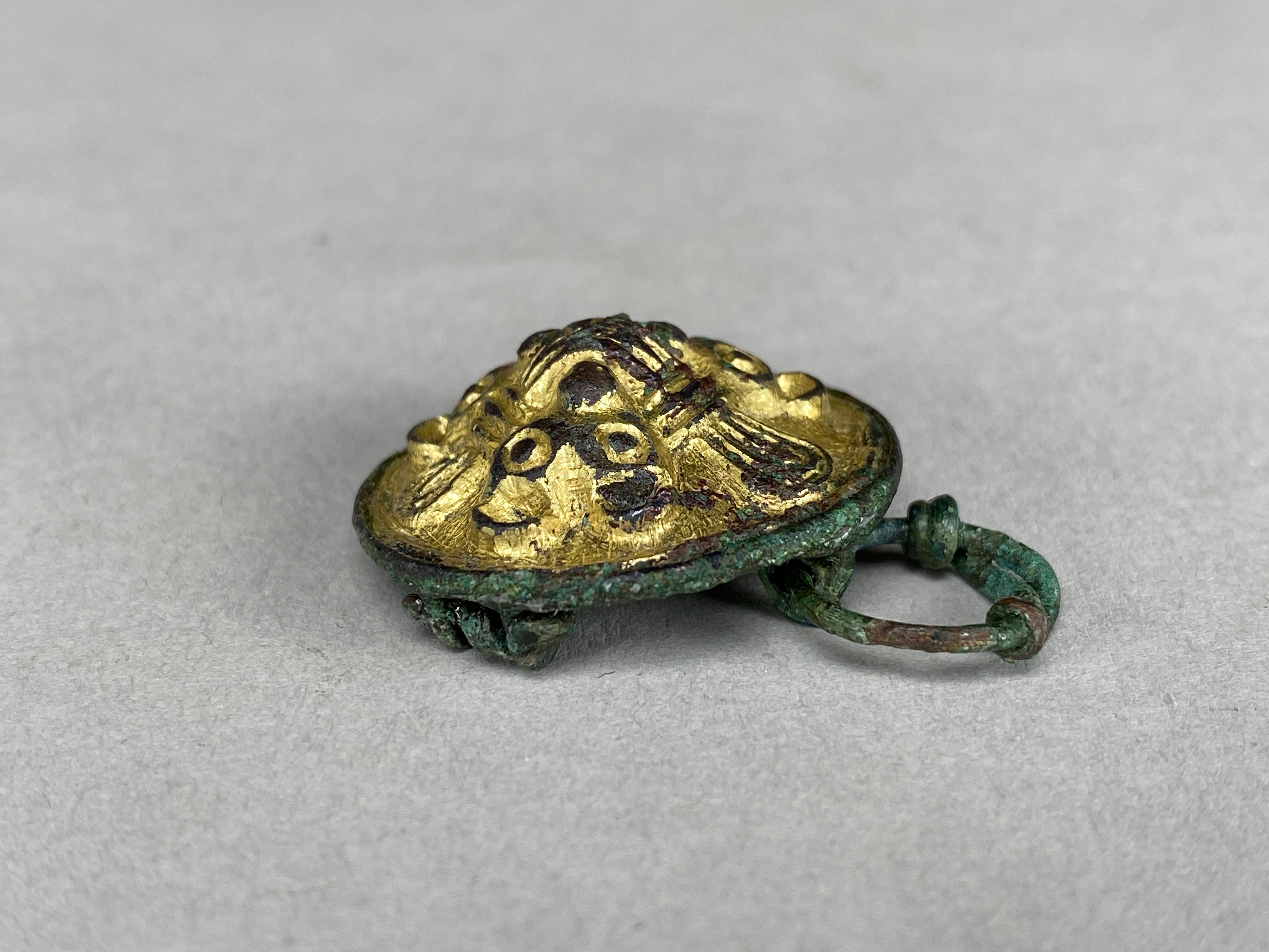 litet rundspänne i Borre-stil med vidsittande textilrester.