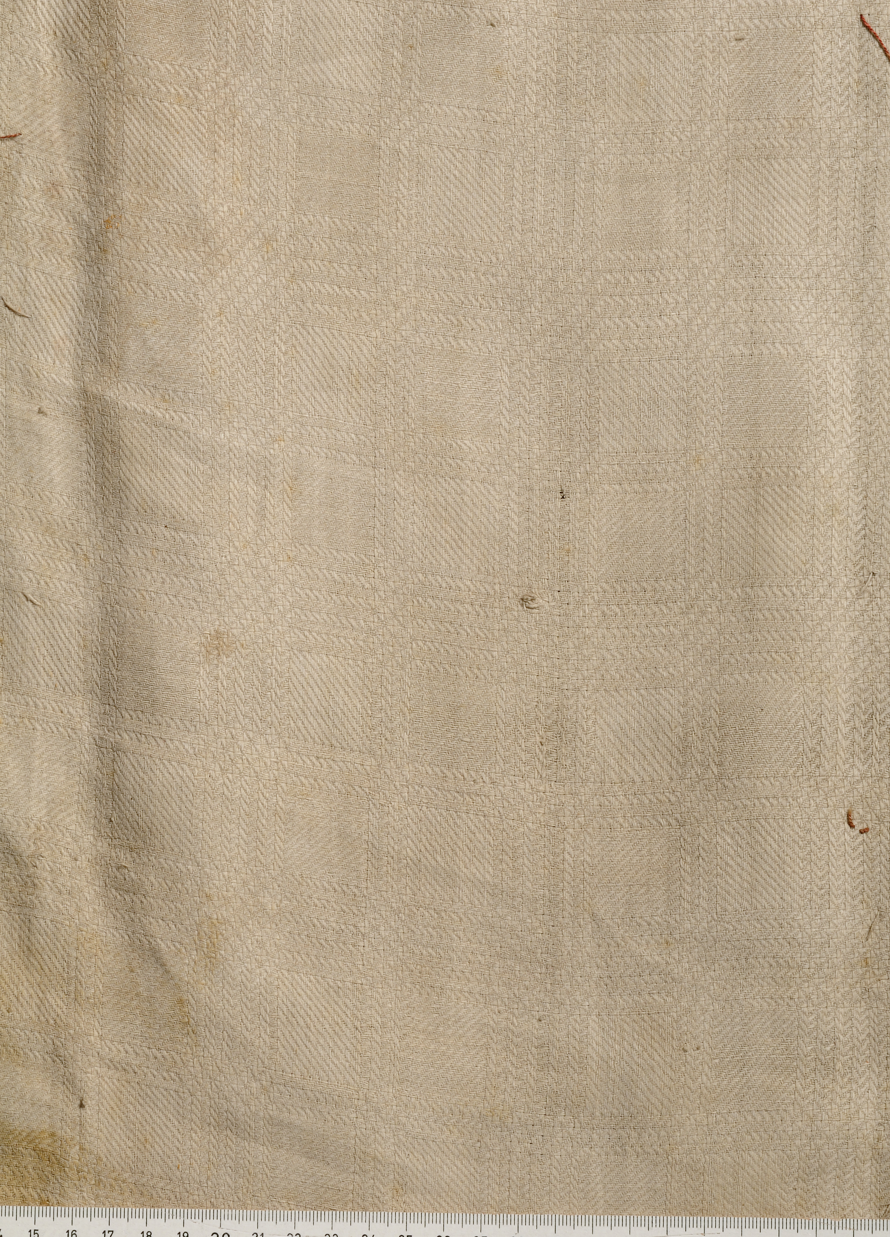 Turkisk brokad, spansk sammetsbrokad, benvit sidendamast, linnedräll. Deponerad i SHM 1986.