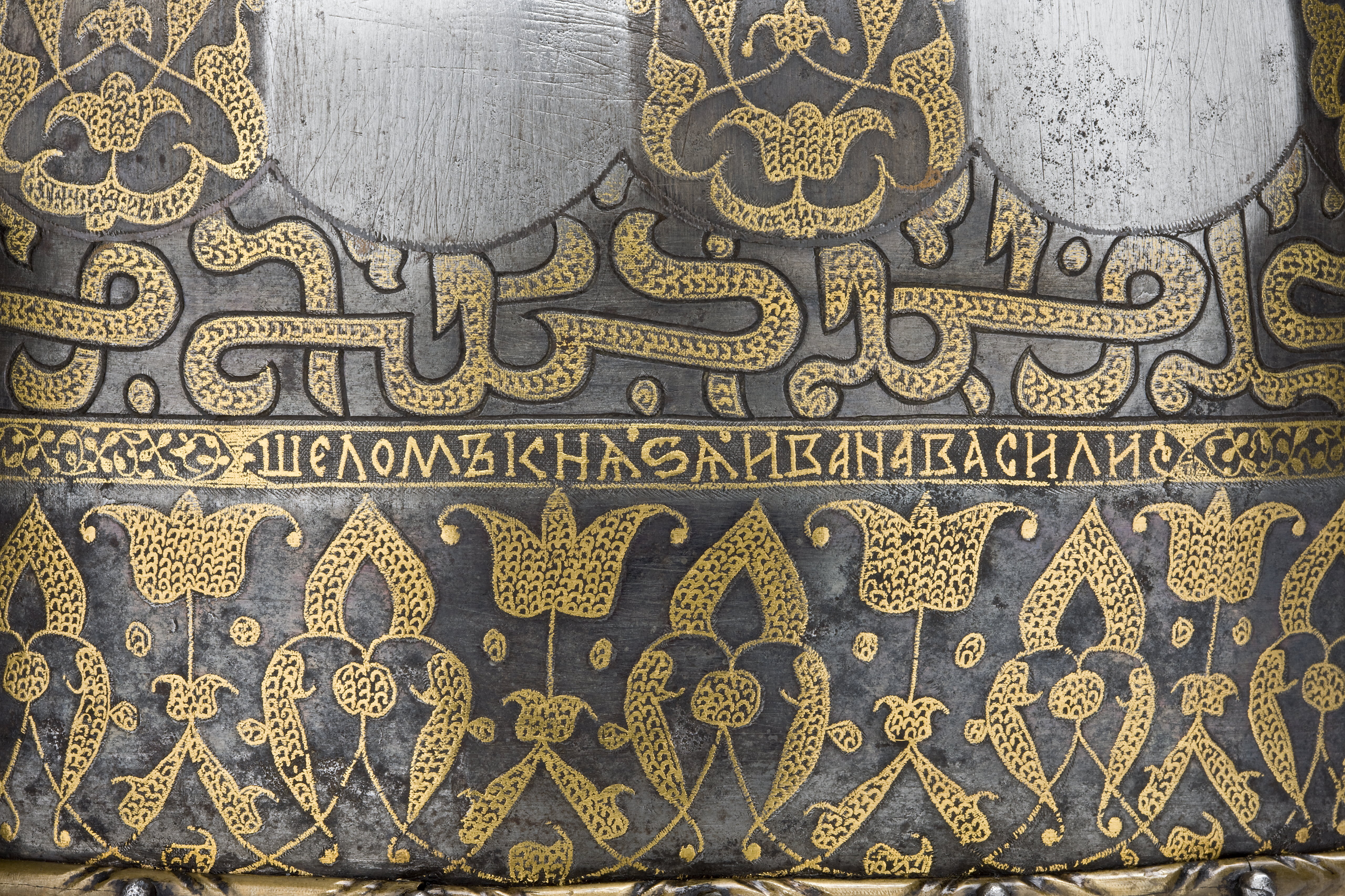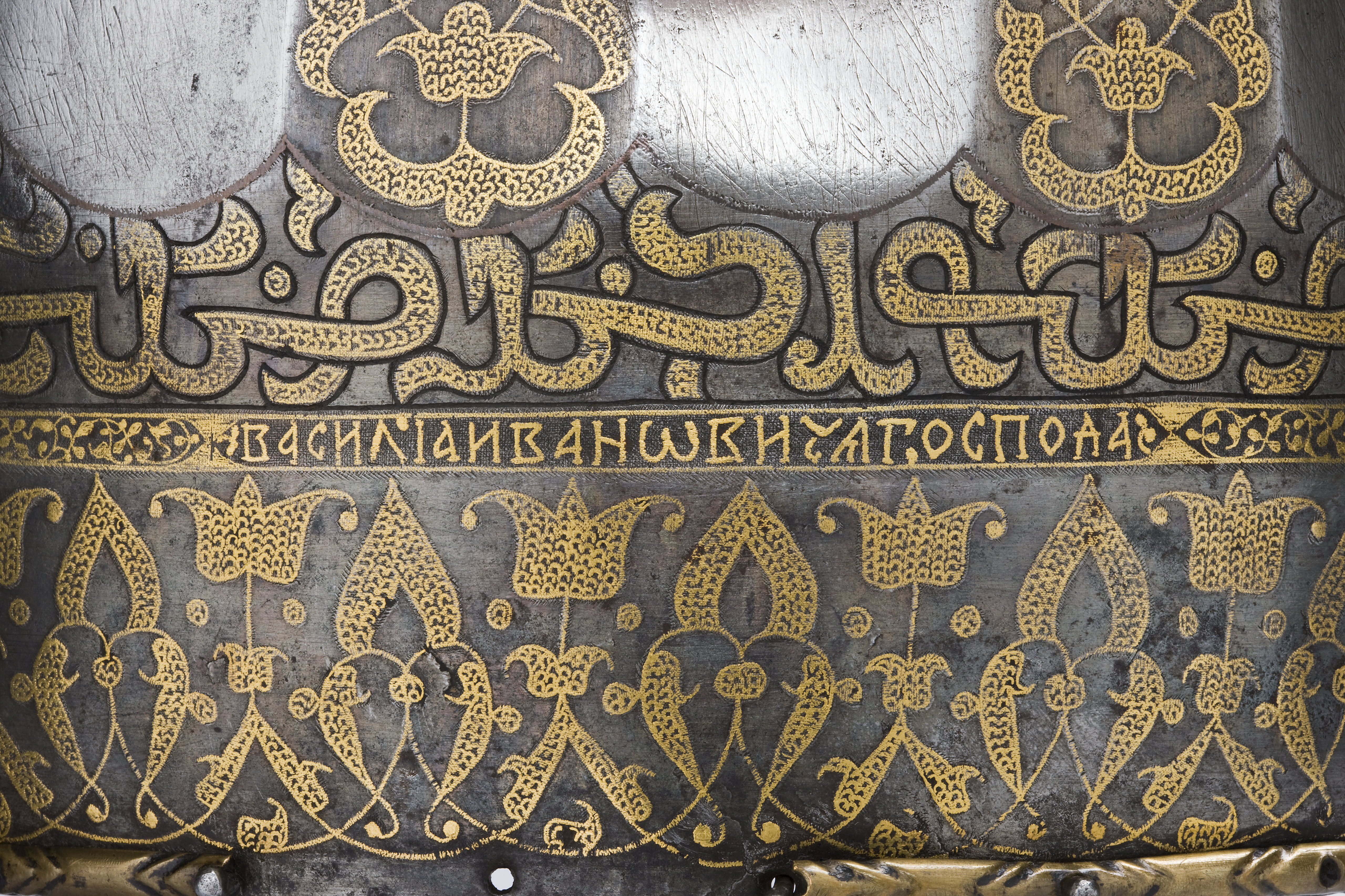 Hjälm, Tsar Ivans, Oruzejnaja Palata, Moskva cirka 1533. Krigsbyte från Warszawa 1655.