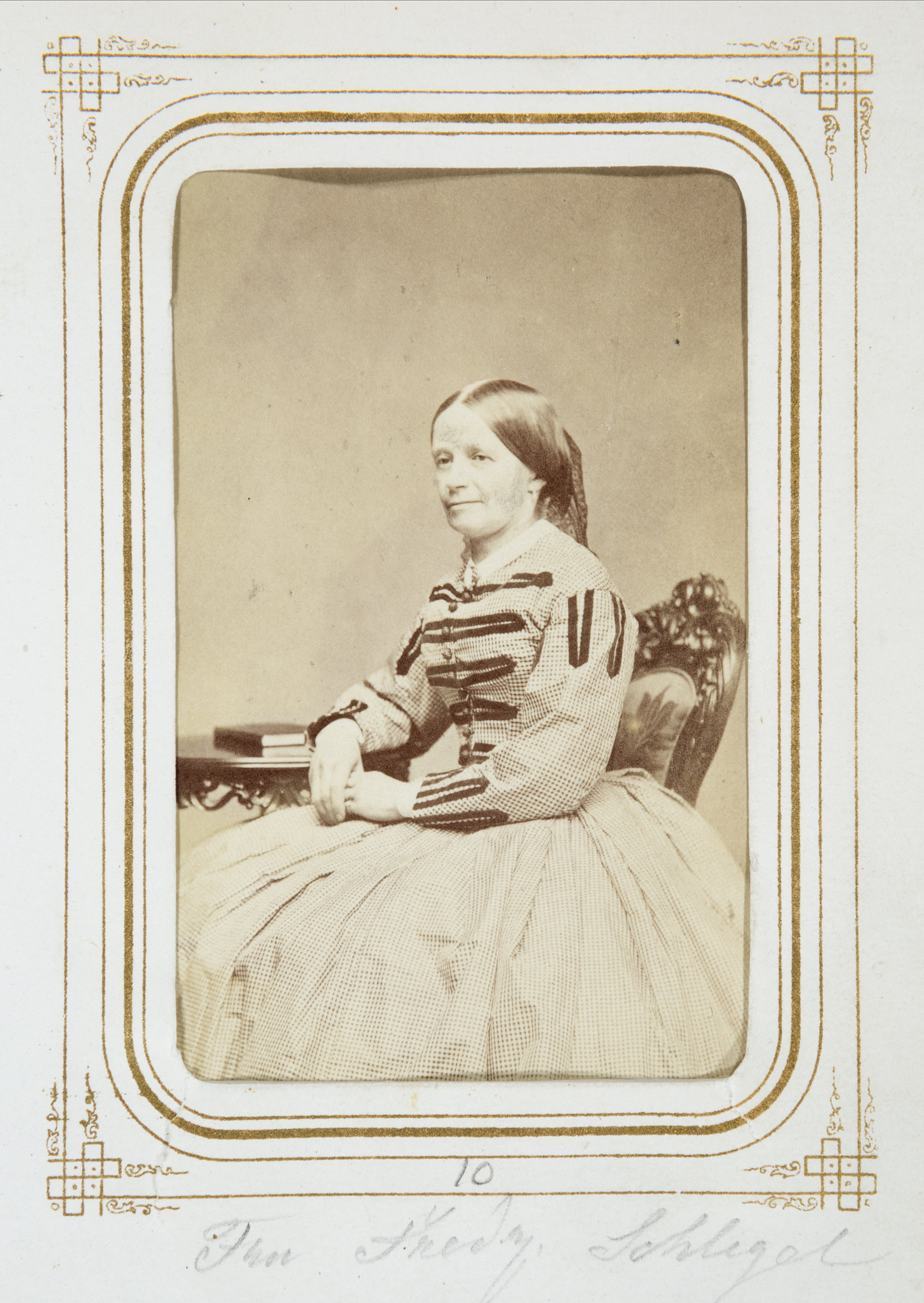 Fotografiporträtt i album. Fru Fredrika Schlegel, f. Wallis.