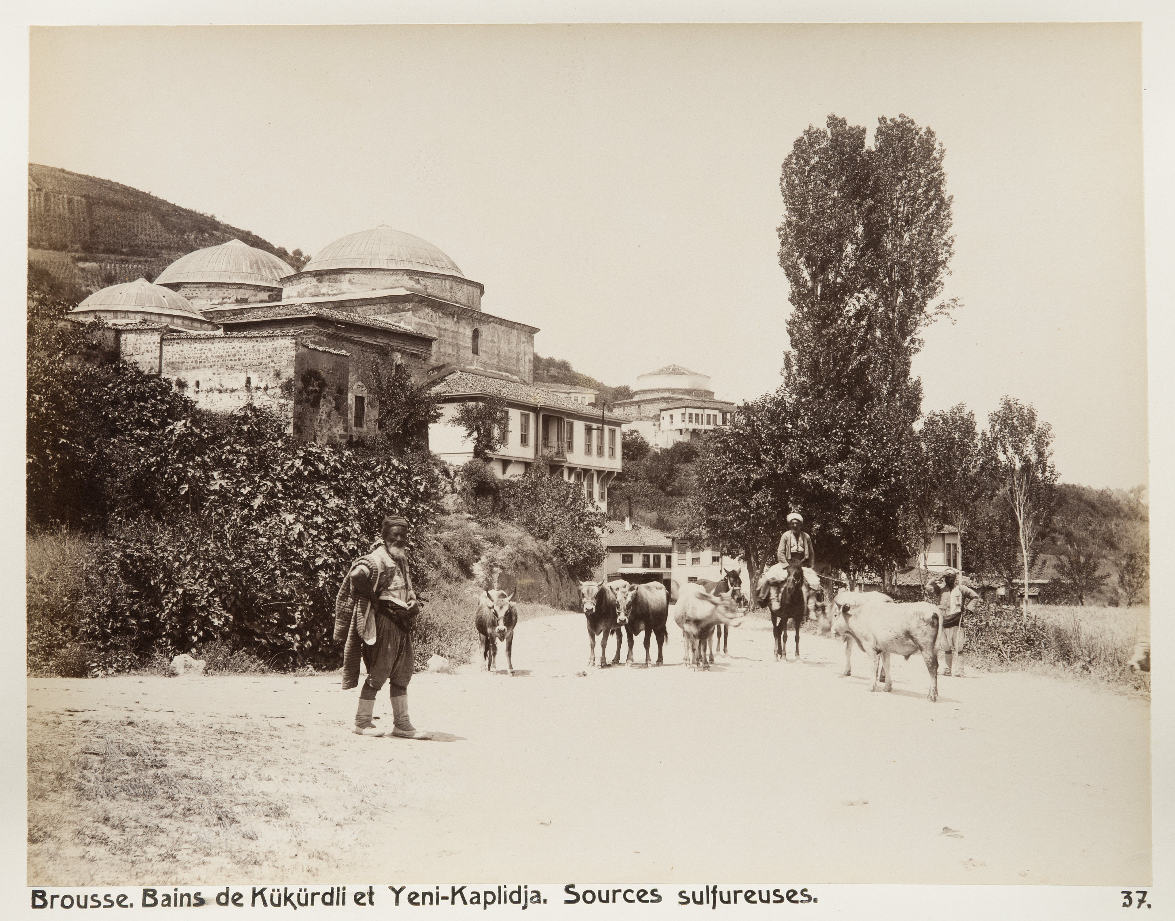 De varma baden Kükürtlü och Yeni Kaplıca i Bursa. Vattnet kommer från svavelrika källor. Text på originalet: "Brousse. Bains de Kükürdli et Yeni-Kaplidja. Sources sulfureuses." Fotografierna LXVI:O.01.-54. kommer från resan till Turkiet och Mindre Asien som Wilhelmina och Walther von Hallwyl gjorde den 27 april - 20 juni 1901. De lämnade Sverige den 5 november 1900 för Egypten, där de stannade till den 28 mars 1901, då de fortsatte till Palestina. Den 27 april fortsatte de till Turkiet och Mindre Asien. Med på resan var Wilhelminas sällskapsdam, fröken Ida Uhse. I Konstantinopel (Istanbul) anslöt sig Wilhelminas mor Johanna Kempe och kusindottern Elma Hök. Fotografierna är inköpta av Wilhelmina i Konstantinopel (Istanbul) och Brussa. Alla uppgifter kommer från Ida Uhses reseanteckningar.