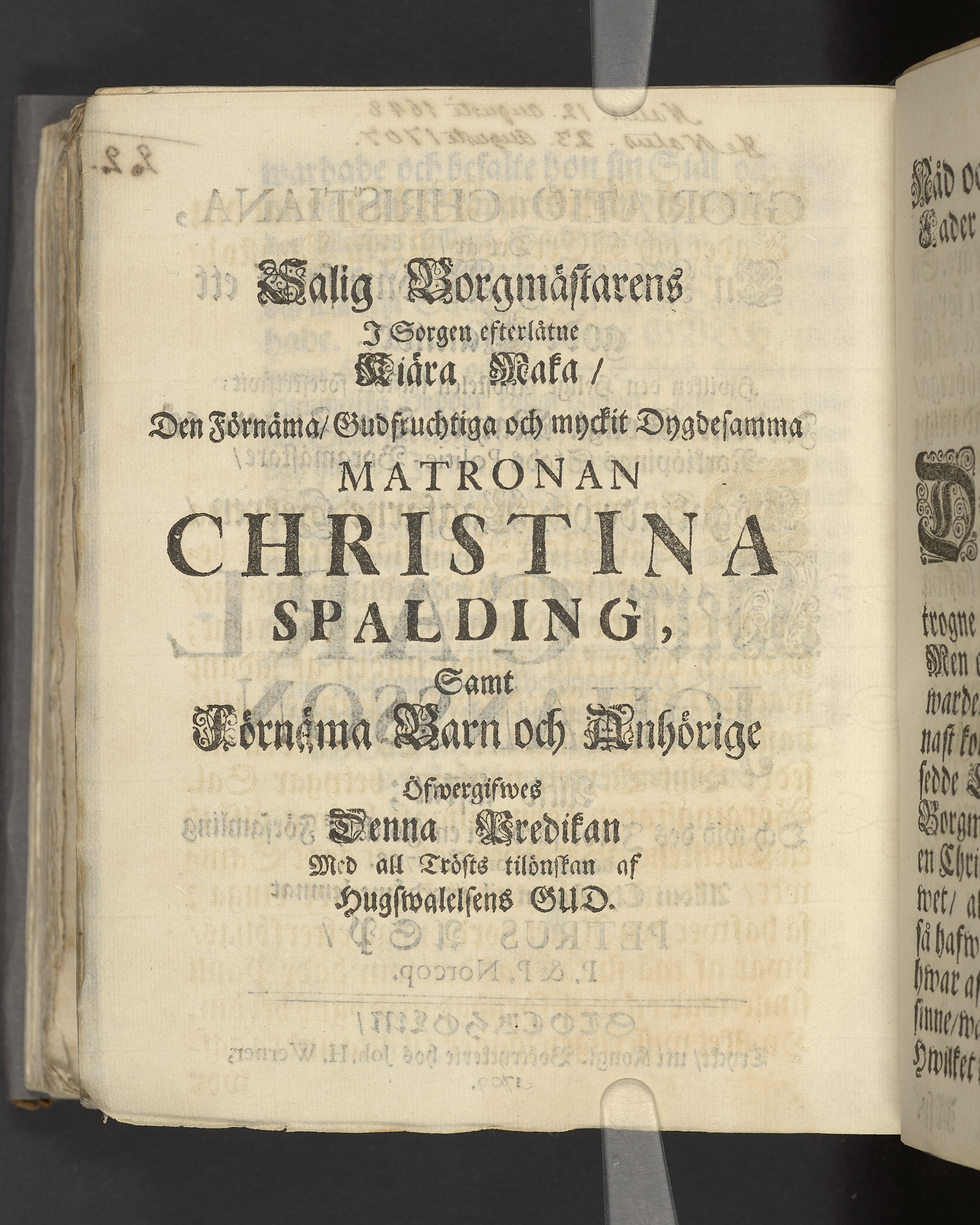1709 (tryckår); 1700 (bandets tillverkning) |