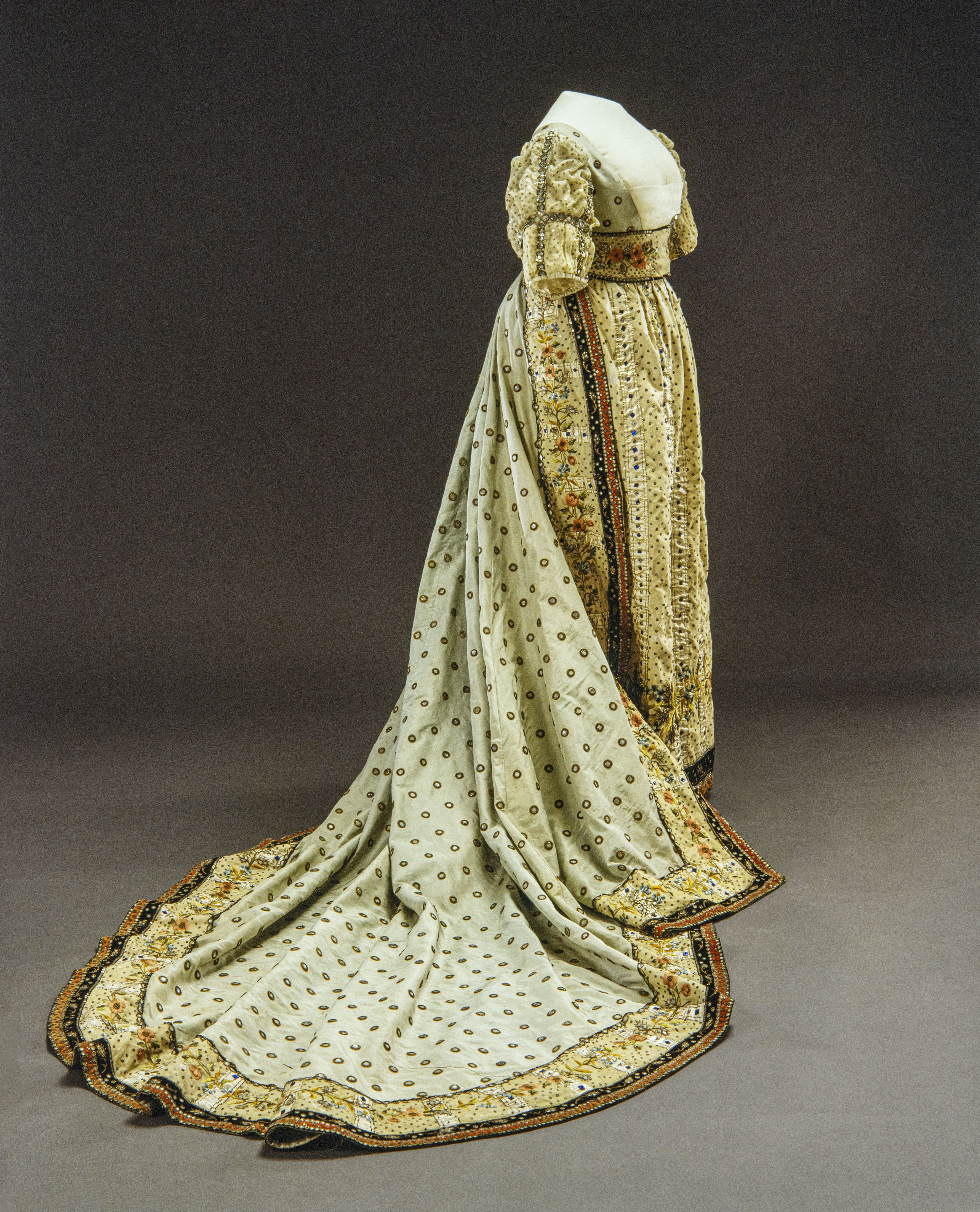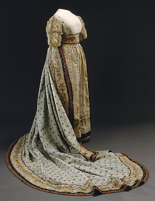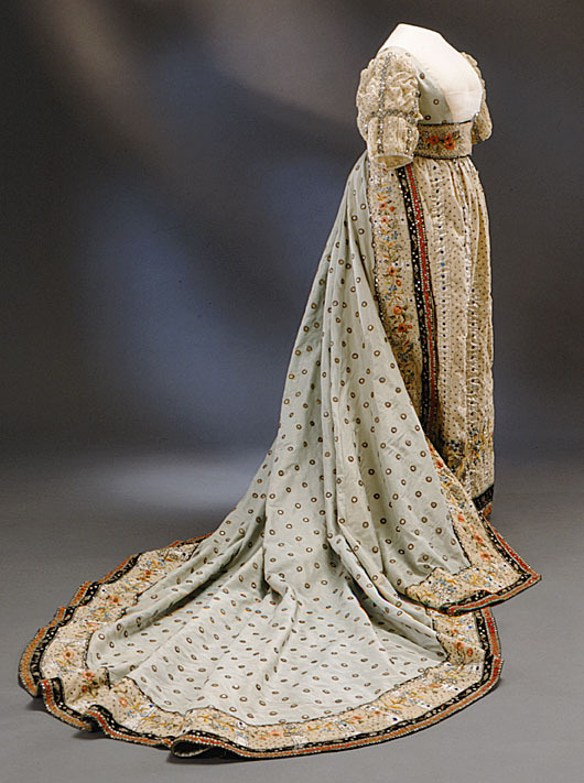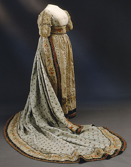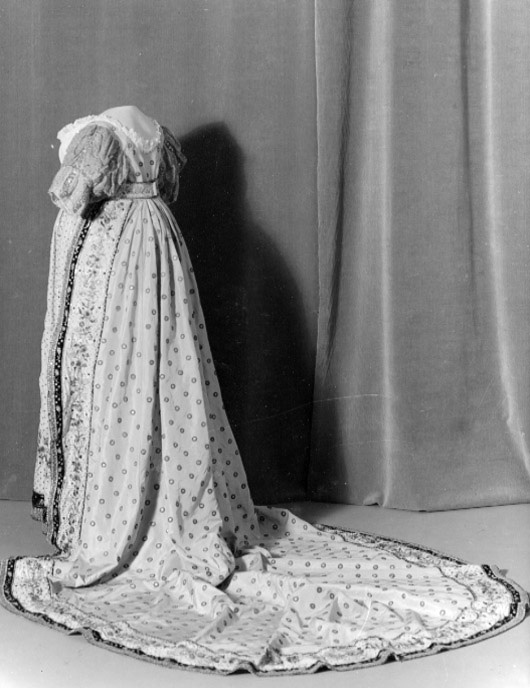 Överklädning, s k robe de cour, ljusblå, till Sofia Albertinas (1753-1829) hovdräkt.