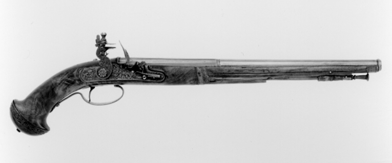 Flintlåspistol, Italien, 1600-talets andra hälft (?), pipan stämplad LAZARI COMINAZ. Möjligen sammansatt under 1800-talet.