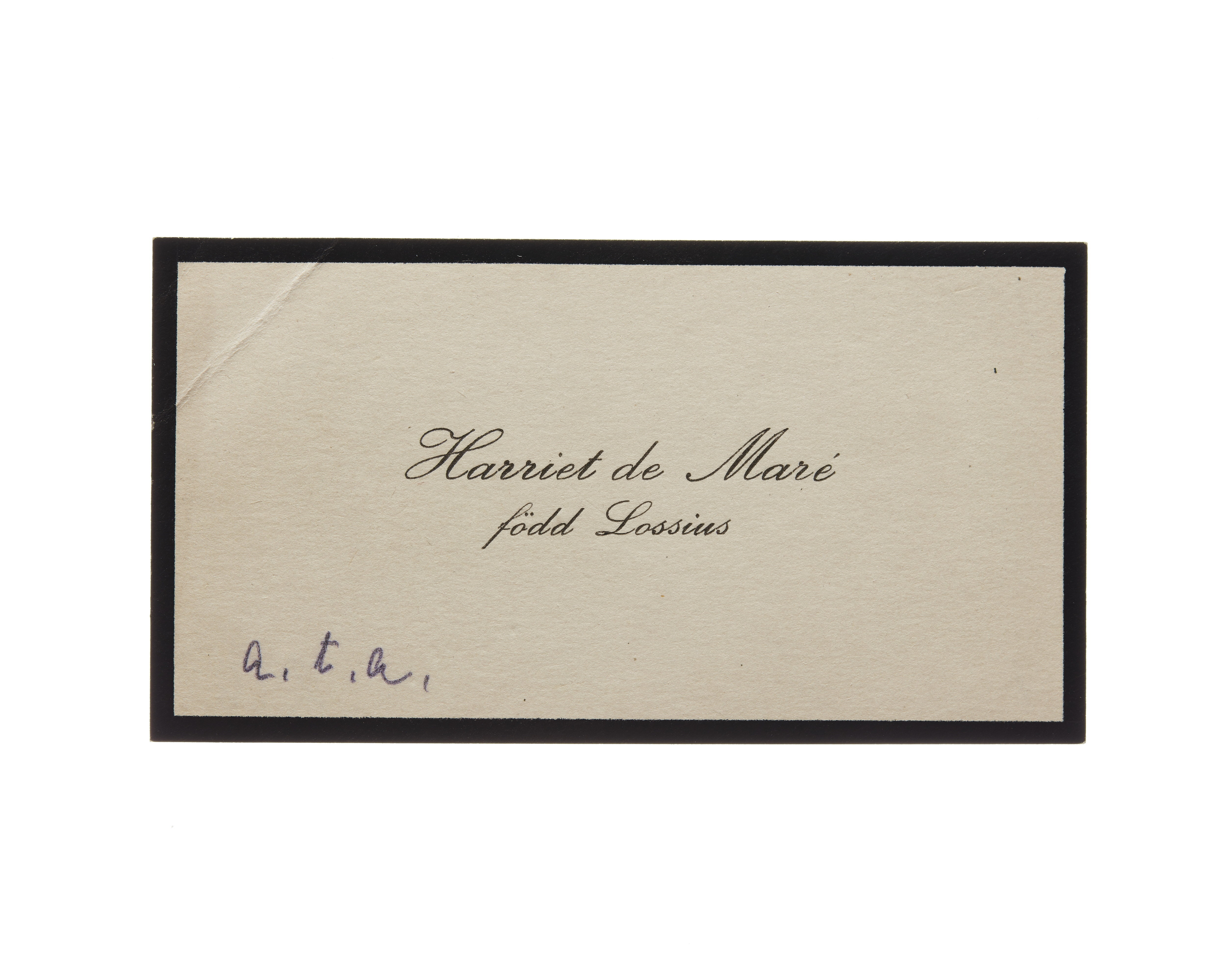 Visitkort från Harriet de Mare f. Lossius.