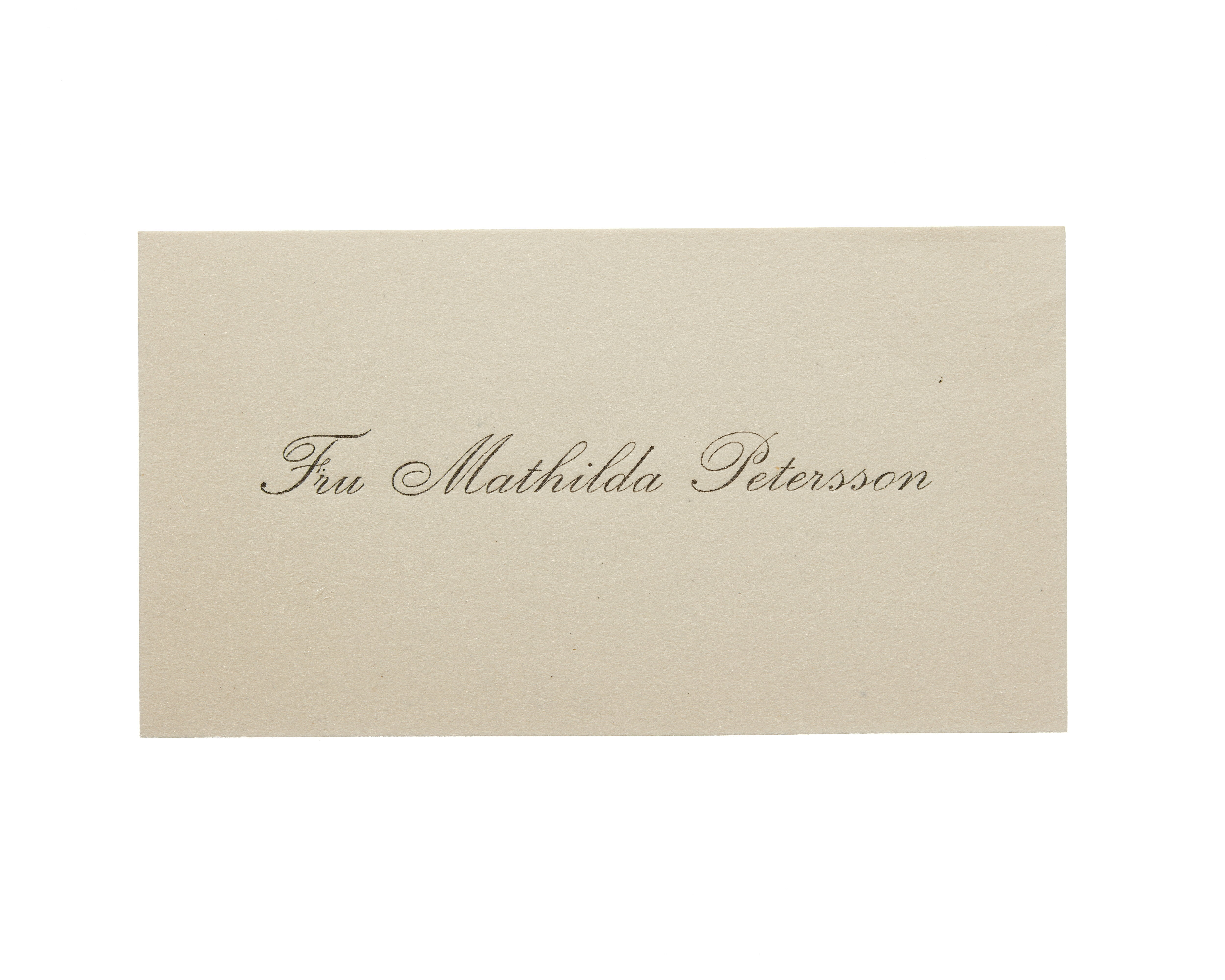Ett visitkort från Fru Mathilda Petersson.