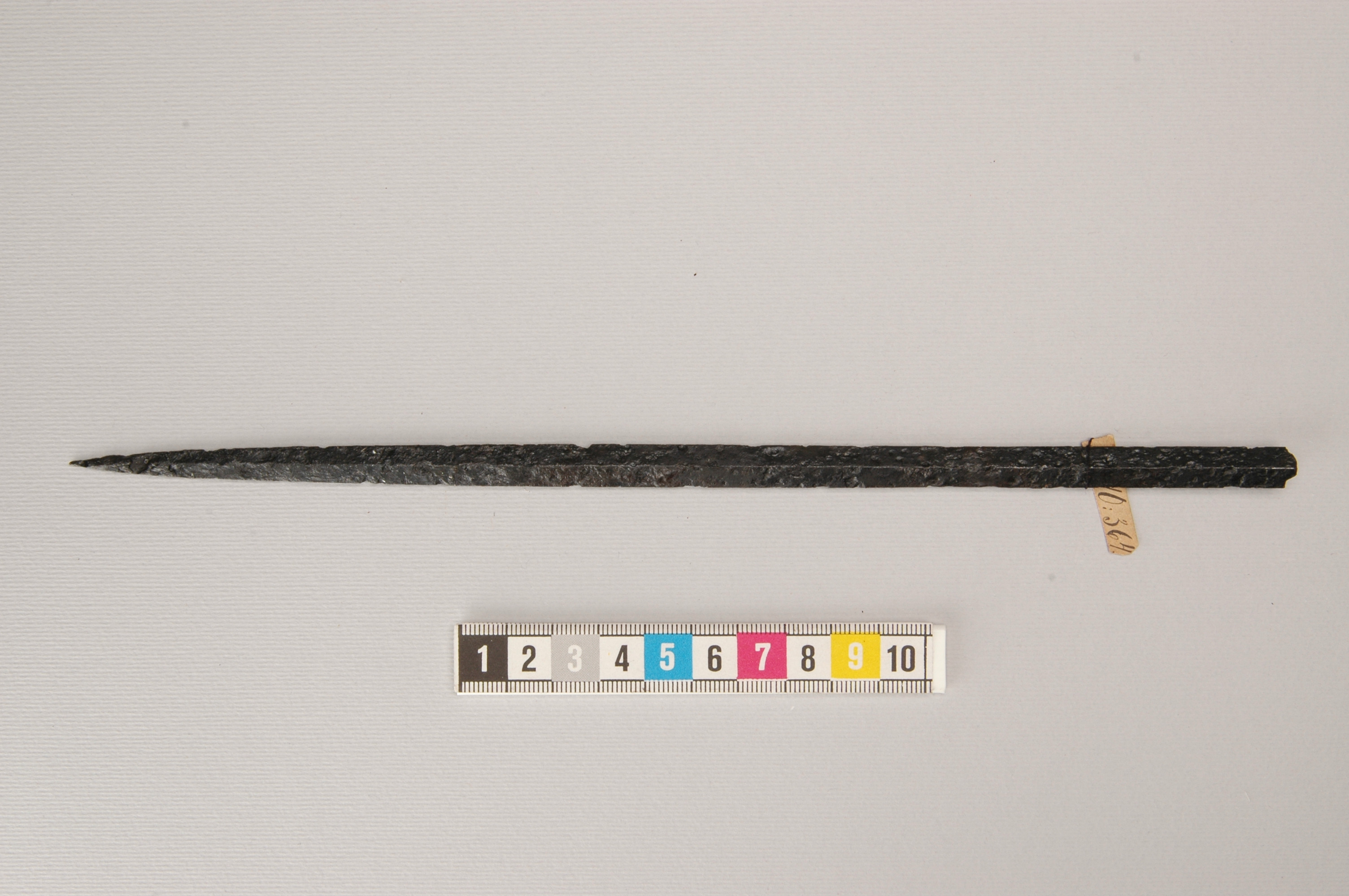 ång, smal, jämnbred, spetsig, med rombisk genombrytning. Den övre delen med eventuell holk saknas.