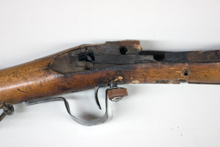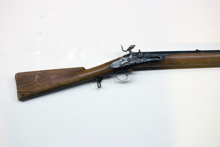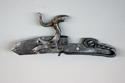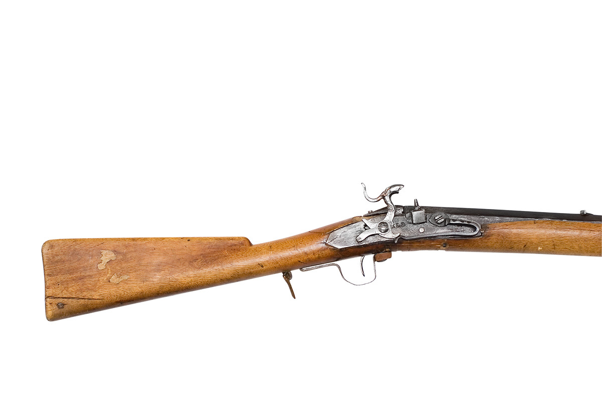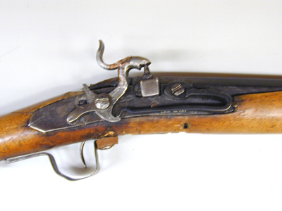 Slagsnapplåslodbössa, utfjäderslås, tåspännare, Norrbotten, 1800-talets mitt, Johan Lindberg, Skellefteå (?).