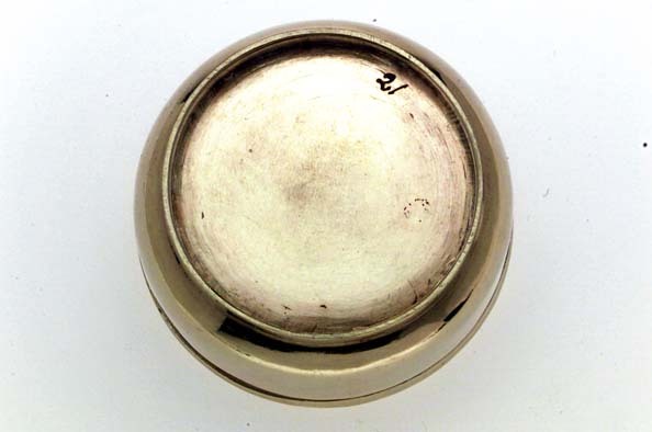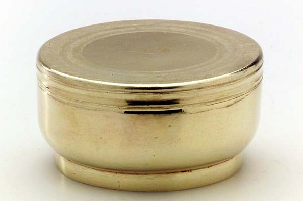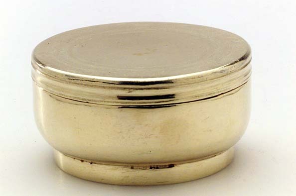 Dosa för peppar(?) av förgyllt silver, slätt, något bukigt liv, bandformig, låg fot, plant lock utan gängor. Inuti dosan liten svept ask(32x23 mm), träbotten, klädd med svartnat siden. Stämplar i locket: S:t Erik, N, Stafhell, åldermansranka (Gustaf Stafhell d.ä. Stockholm 1749). På askens kant: U 2, S:t Erik (Stockholm 1802). Kompletterad del(?) av Adolf Fredriks resekök (nr 16-23), överlämnat från Kronans silvermagasin till Historiska museet 1891 (SHM nr 8954, märkt under botten med svart färg).
