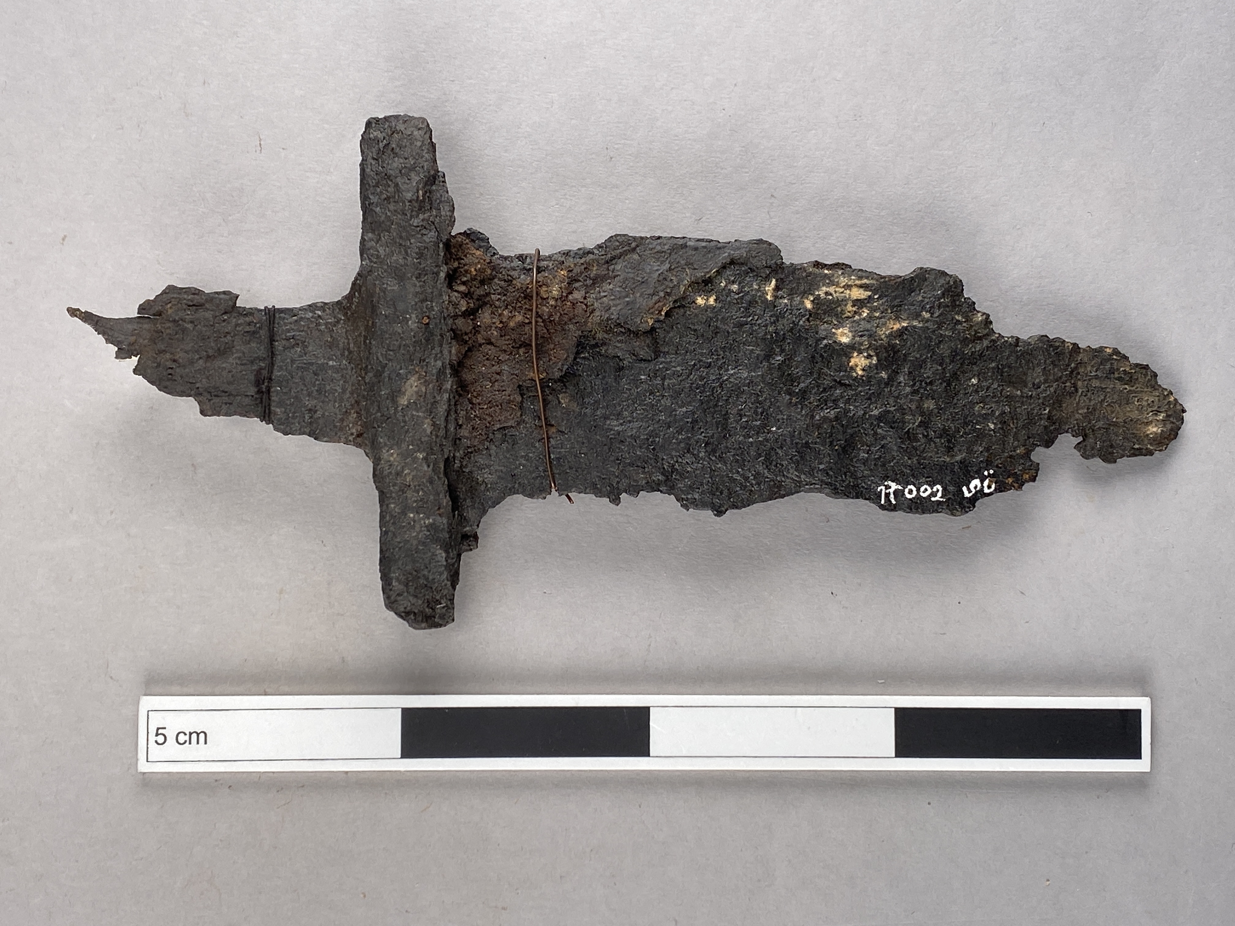 Fragment av tveeggat svärd med hjalt av Petersens typ N