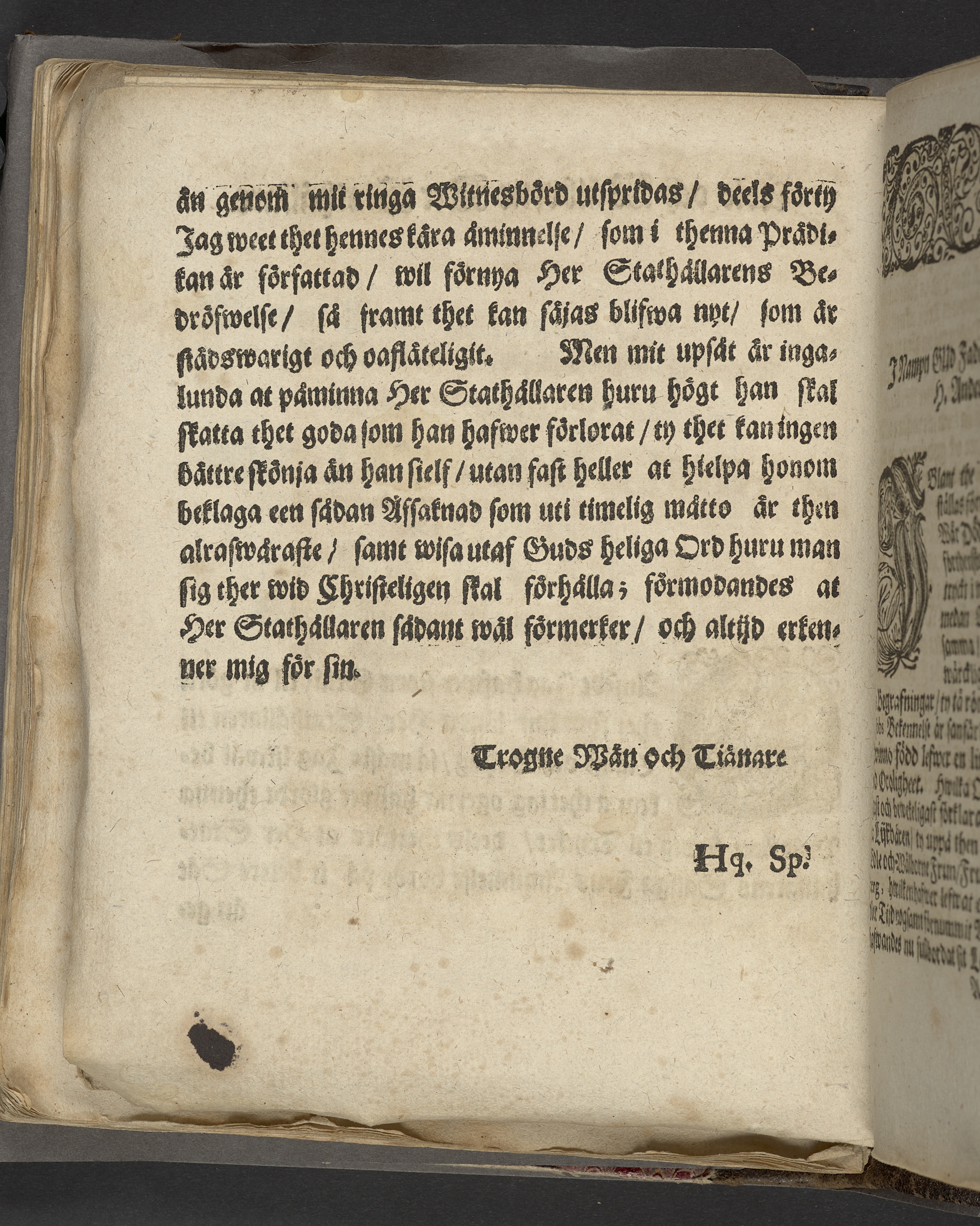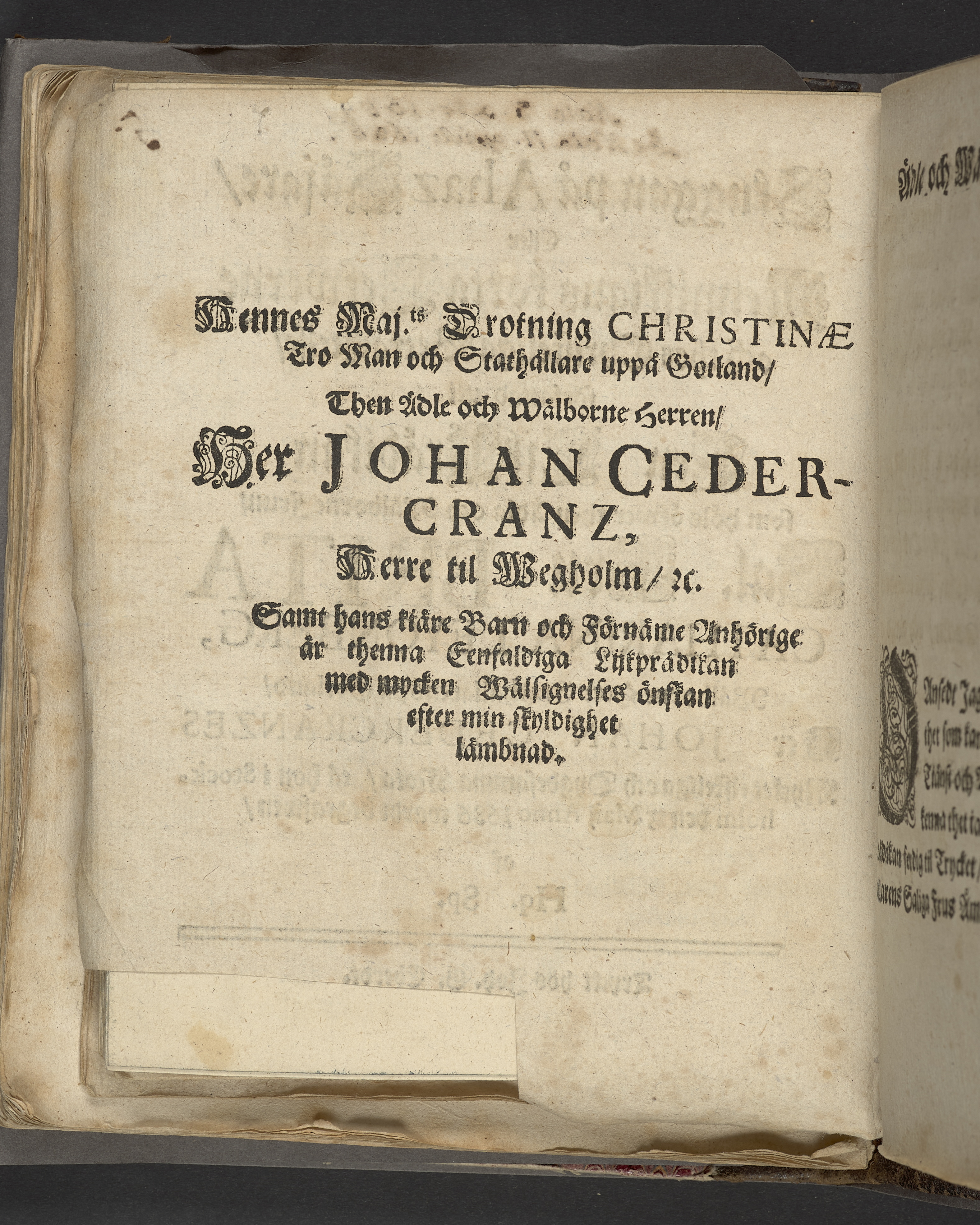 I nederkant på titelbladet strax under impressum är ett parti bortskuret, möjligen en tidigare ägarignatur.