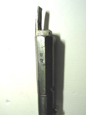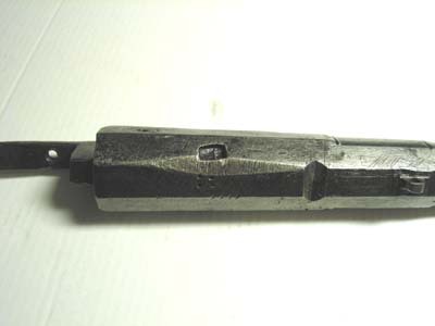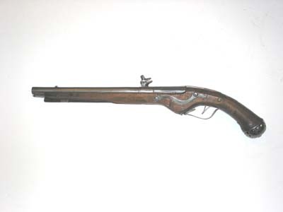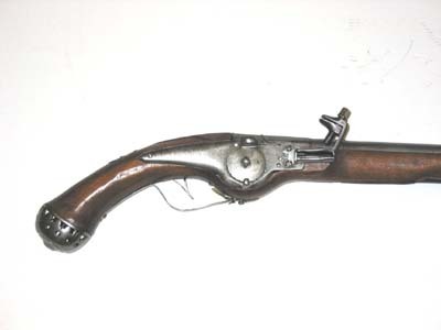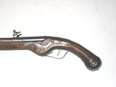 Rund, slätborrad pipa av stål med åttsidig kammare, kanterna på främre delen fasade, ring på de fem övre faserna vid övergången, ytterligare en ring 30 mm därframför. Svagt böjt, baktill tvärt avskuret svansskruvblad. Vid pipbasen möjligen en nästan utplånad stämpel G O.. På v sidofas två stämplar: Z E // L (?, LRK vägl.1921, jfr Stöckelnr 1782) och vapensköld med Sachsens vapen. På kammarens undersida en djupt inslagen rektangulär stämpel C E samt fyra punkter. Riktmedel: Lågt sikte vid pipbasen. Spolformigt, inlaxat korn. Fästning: Två häften. Pipan fäst med krysskruv underifrån samt ett ej ursprungligt pipstift av stål. Hjullås med välvt låsbleck, utvändigt hjul fäst med krampa kl. 6, fängpannelock med svängd gavel, låg krutskärm, fängpannelock med rörlig arm. Hanen med kropp hals i vinkel, svagt spolformig, åsad kropp, hals med främre kanten rundad, nästan rektangulära käkar med rundade hörn, underkäken lös, käkskruv med kubiskt huvud. Hanfjäder med rombiskt fasade kanter, B-formig studel. På låsbleckets insida stämpel H C // M (eller HGM, Stöckelnr 2803). Fästning: Tre låsskruvar. Fjäderbelastad avtryckare. Helstock av valnöt nedsvängd vid hjulet, oval kolvände, enkelt skuret blad vid svansskruvbladet. Beslag av stål. Genombruten kolvkappa med oval mittplatta, med rund, plan skruvplatta i mitten och konkava sidor, genombrytningen närmast en slät oval platta mot kolven, rundade flikar och därinnanför runda hål. Mjukt s-formigt svängt sidbleck till de två främre låsskruvarna, konturerat löv vid bakre skruvhålet, enkel, graverad bladdekor på mitten och på lövet, enkel kantlinje. Bandformigt näsband och rörka. Bandformig varbygel med triangulärt löv vid framänden. På kolvhalsen rundat kvadratisk mässingsplatta med graverat namnchiffer C krönt av kunglig krona. Tillbehör: Laddstock av mörkbetsat trä, l: 305 mm, diameter i framänden 12 mm, i bakänden 5 mmaktill. I framänden spikhål.