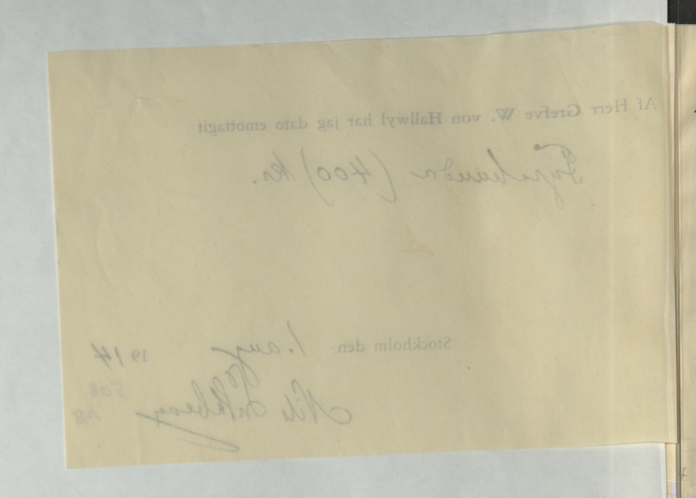 Emottagande av arvode från greven Walther von Hallwyl till Nils Lithberg,1 augusti 1914.
