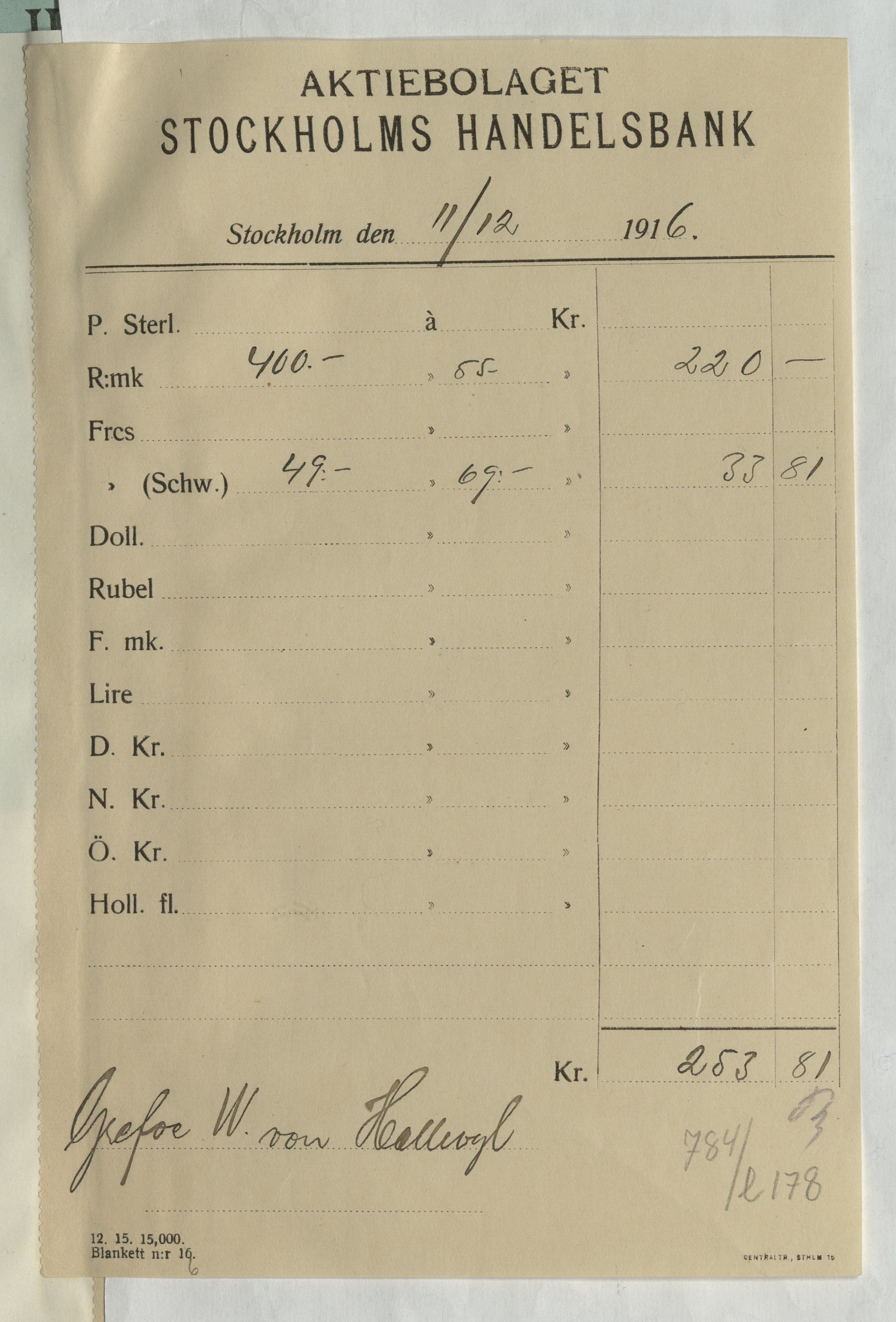 Upphov: Stockholms Handelsbank AB. Media: Statens historiska museer. Hallwylska museet/SHM, (PDM) Upphovsrätten till detta verk har gått ut och är därmed fritt att använda på alla sätt. Ange gärna upphovsperson om denne är känd.