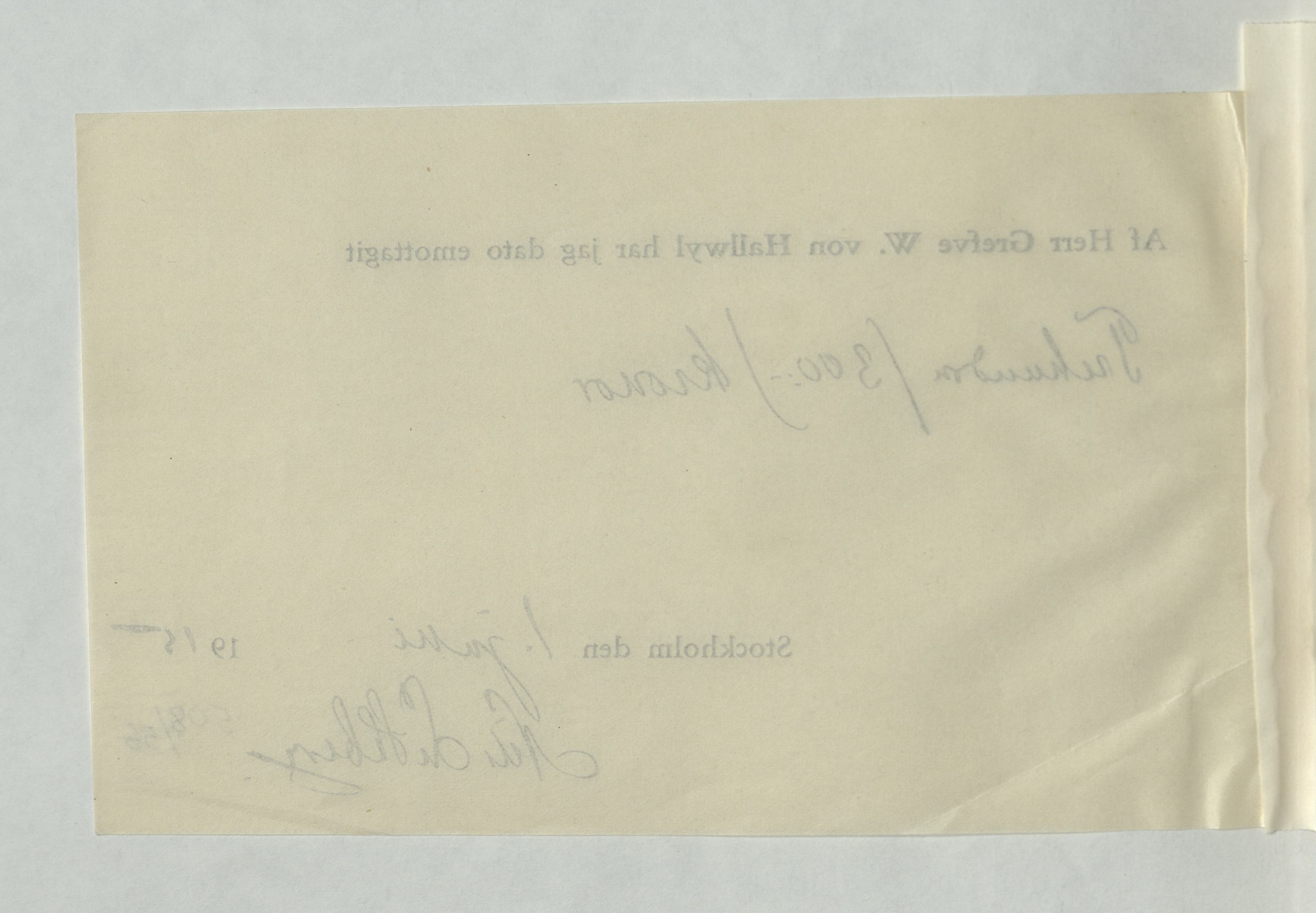 Emottagande av arvode från greven Walther von Hallwyl till Nils Lithberg, 1 juni 1915.