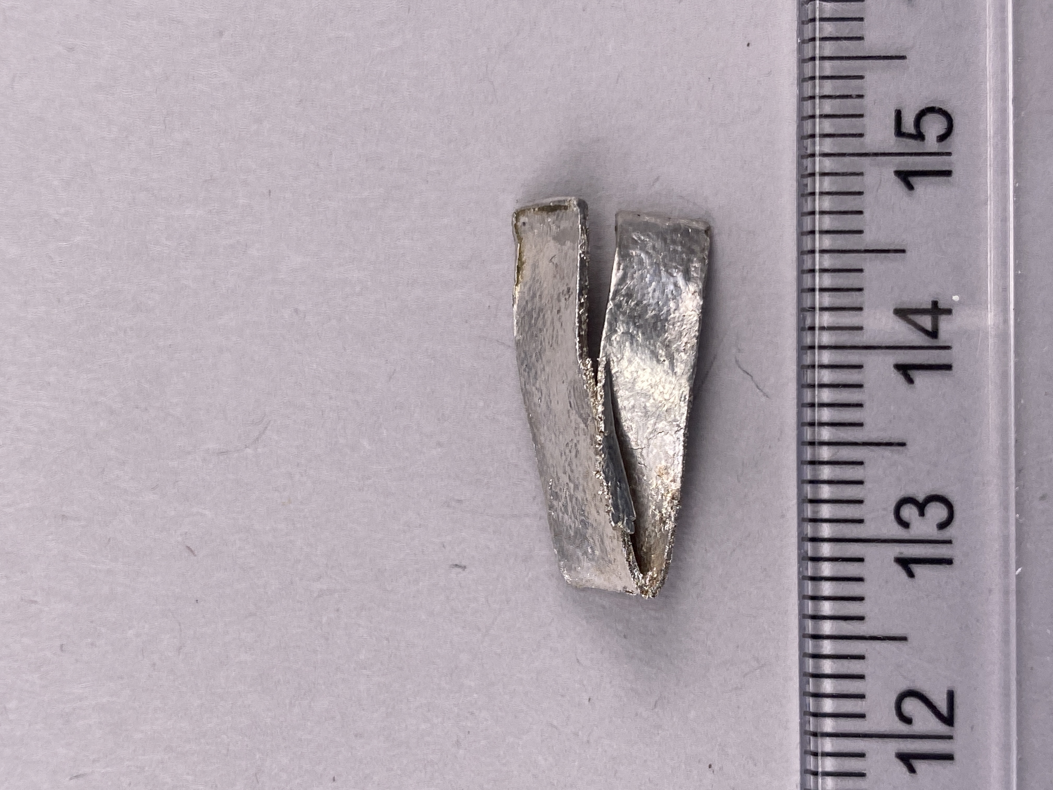 Flera ornerade fragment (niello), samt gänga och fragment efter låda. Både Kristus och möjligen även Ave Maria sidan är synliga, varav Kristussidan varit försett med ändskiva för öppning av lådan. Ett fragment innehåller grekisk skrift x.p.i. (kristus).