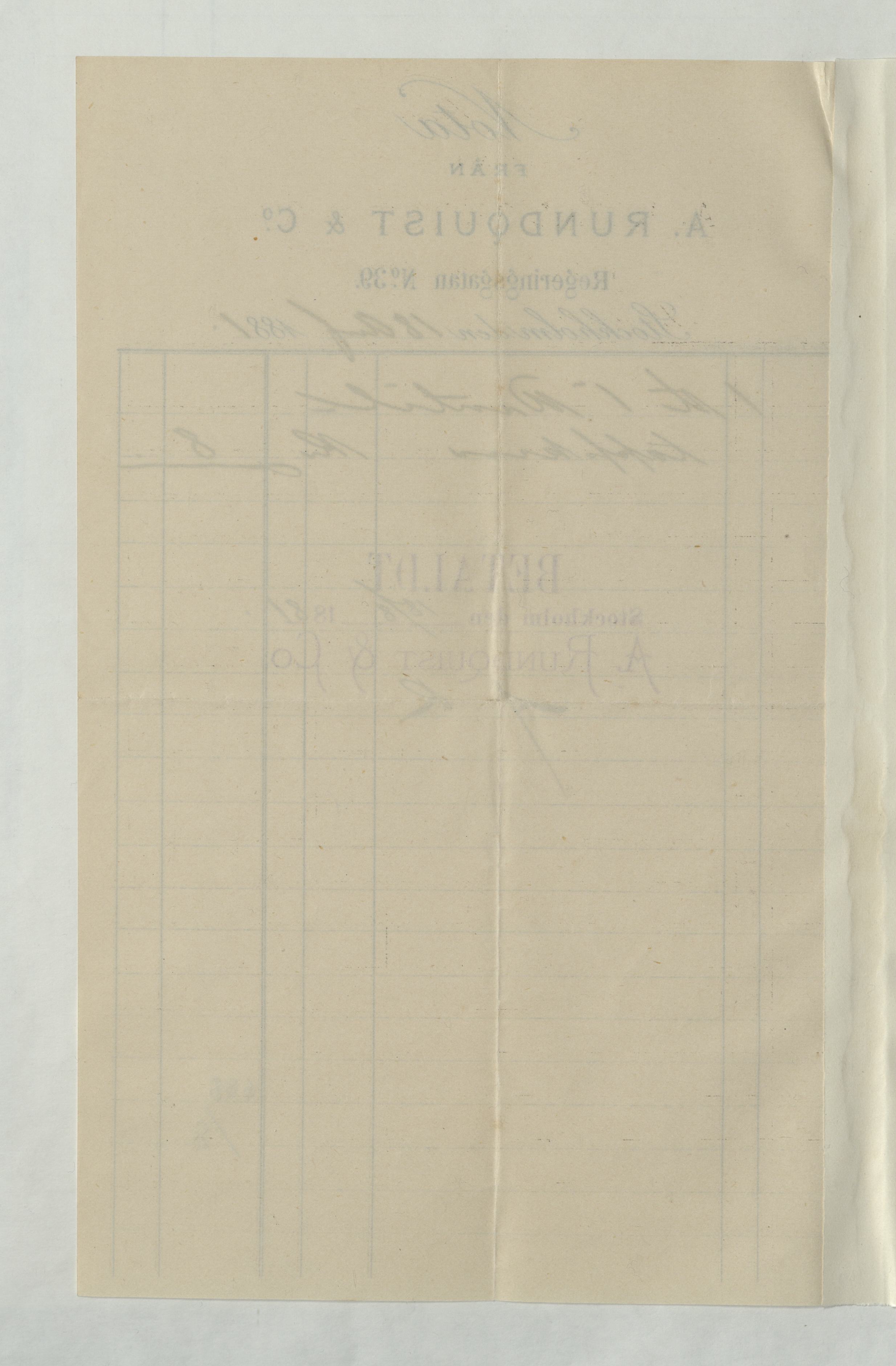 Kvitto från A. Rosberg & Co, ang "rörarbeten", 1881