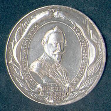 Inskription: AVSPICIO. IOVAE. VIRTVUTE. REGIS. SVECORUM (Under Jehovas ledning genom den svenske...)