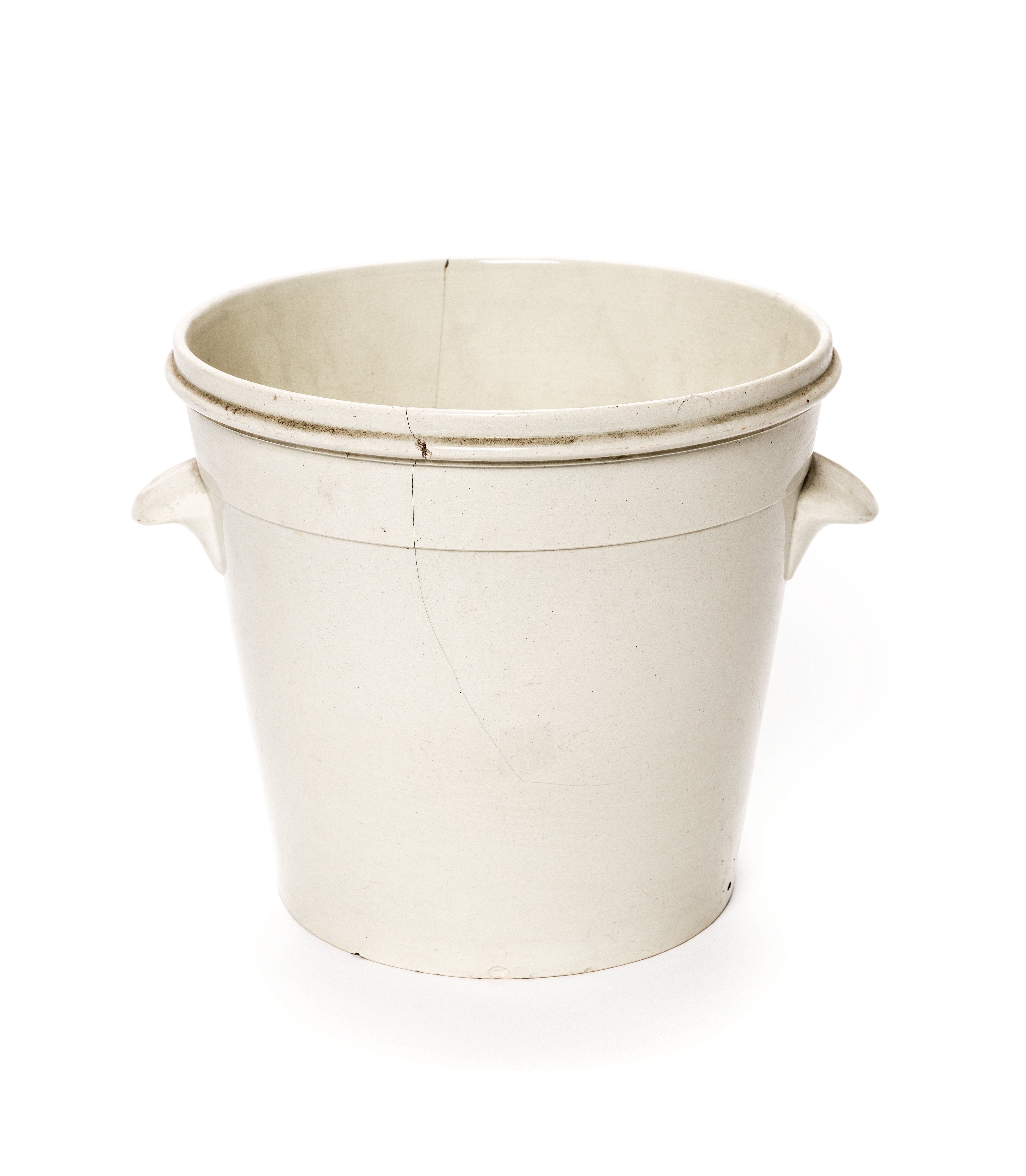 Gulvitglaserat flintporslin. Reliefstämpel: "Rörstrand". 1830-50.