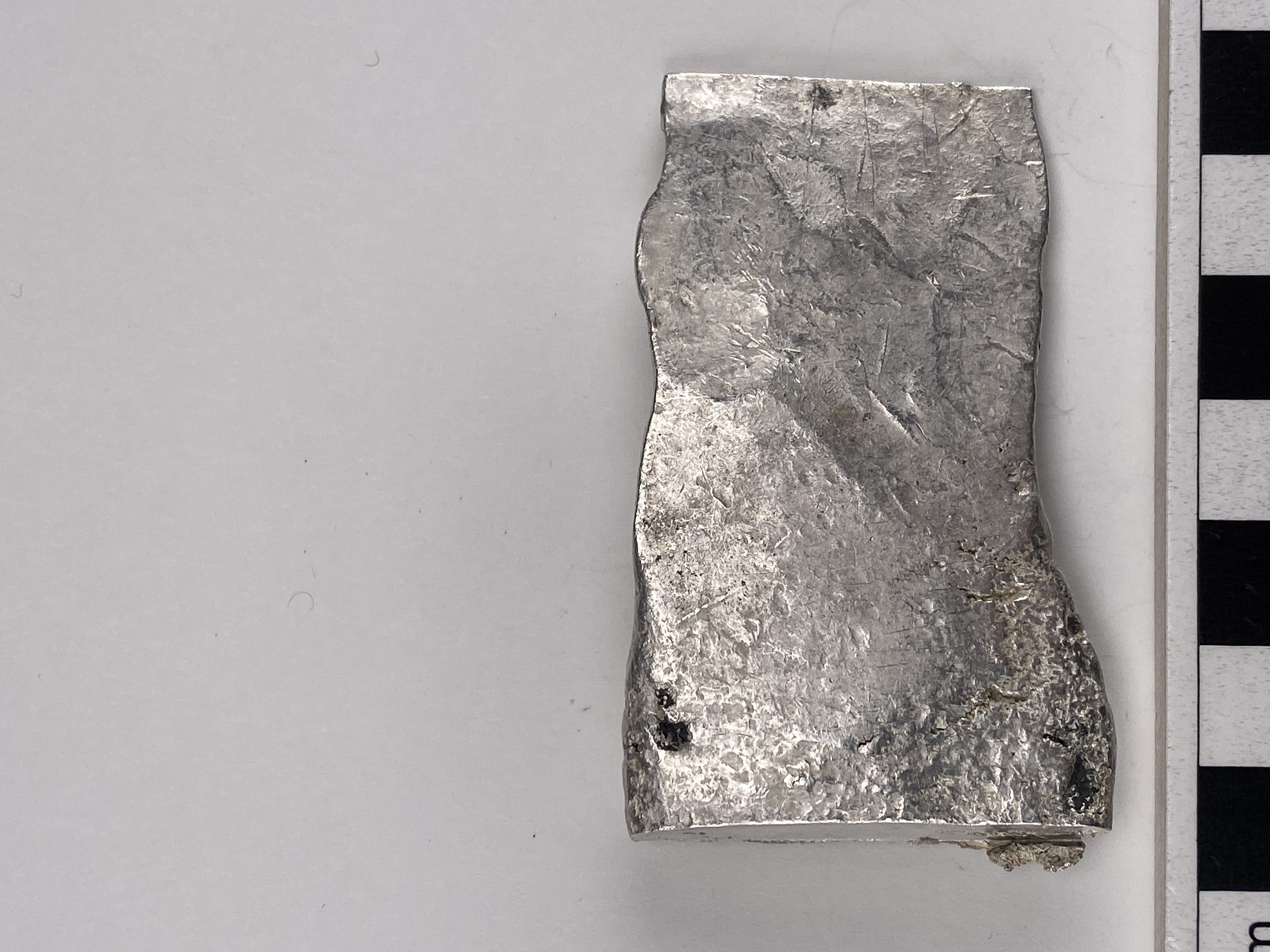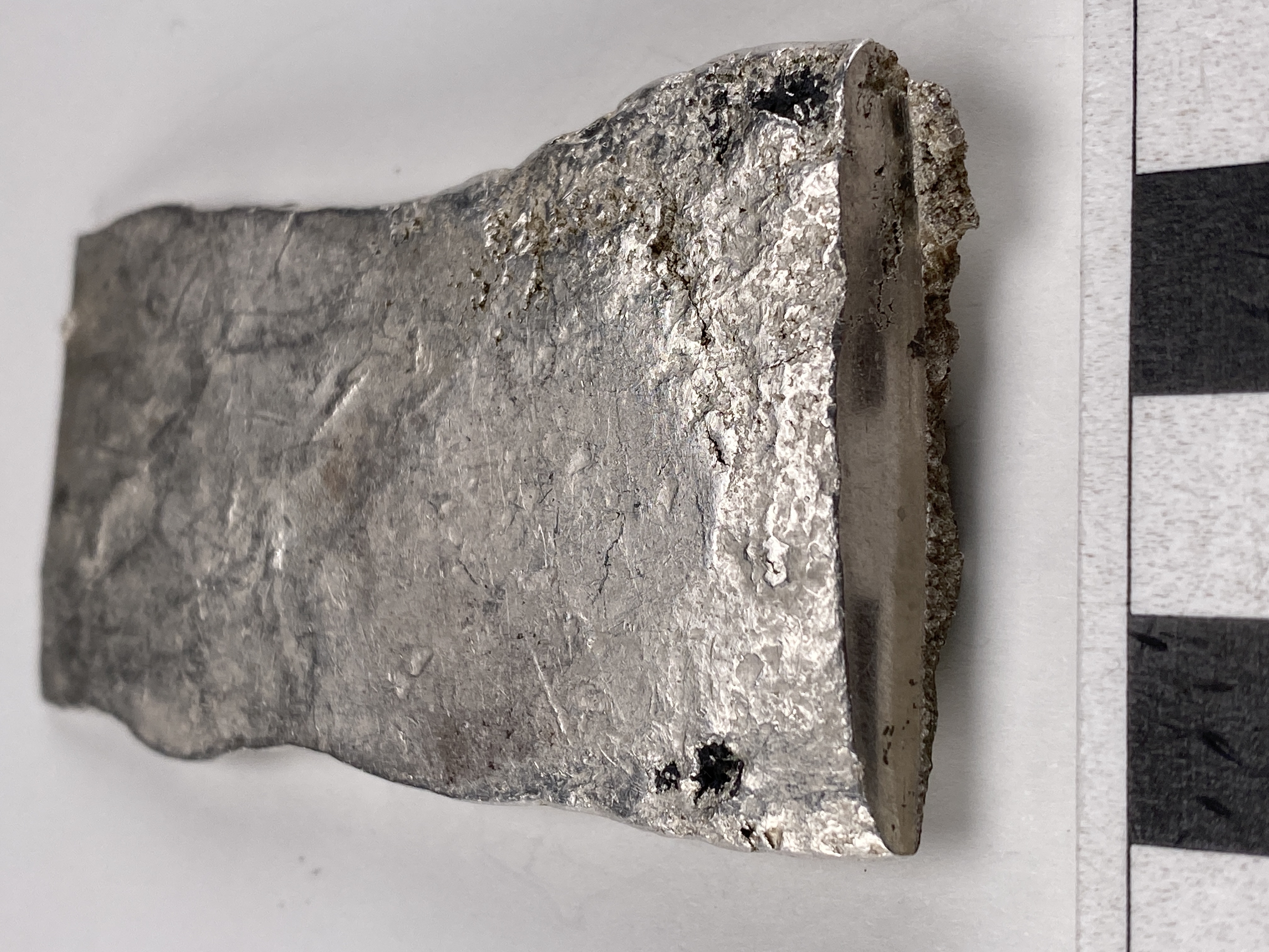 Del av barr med uthamrad, möjligen ursprungligen tungformig ände/-ar. Rysk pseudo-grivna?