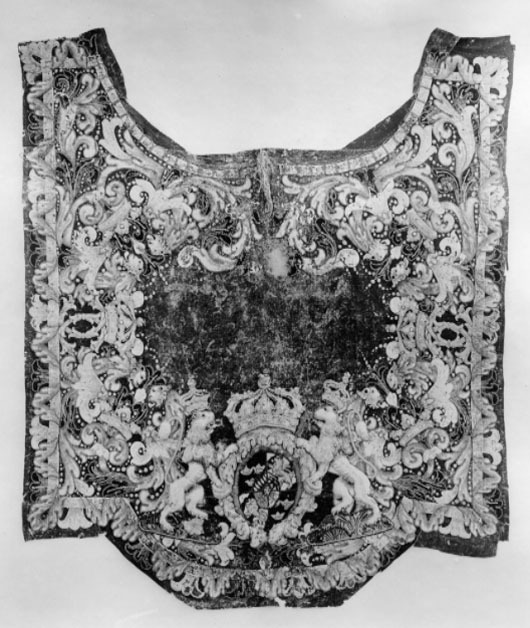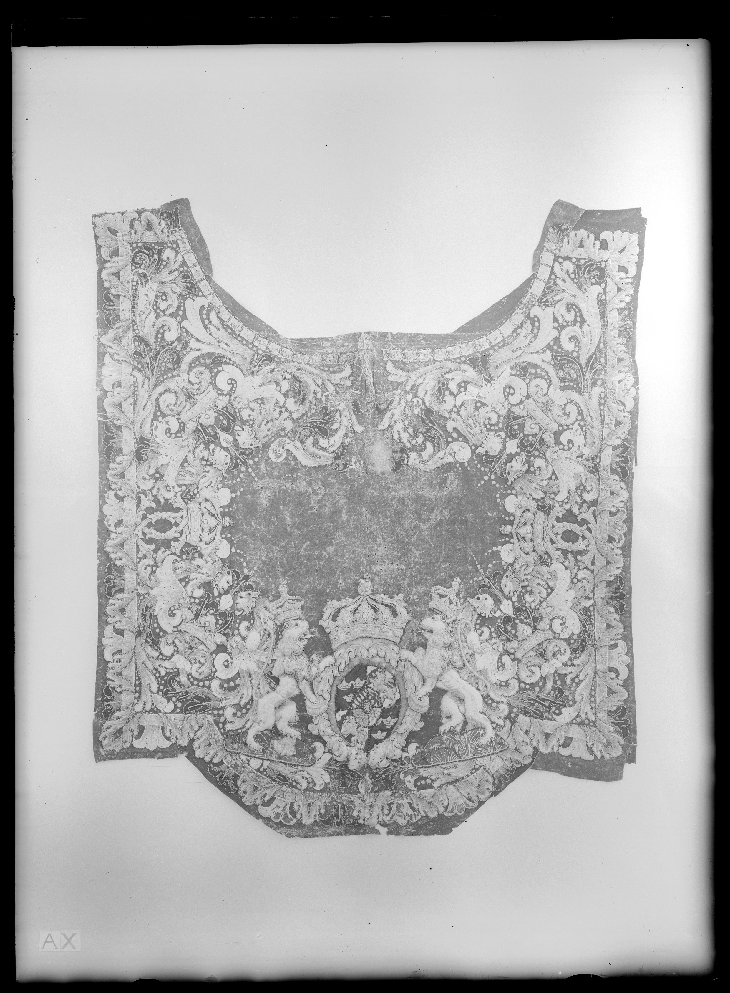 Handhästtäcke, ur en svit om 30 st med svenska riksvapnet och Karl XI:snamnchiffer.